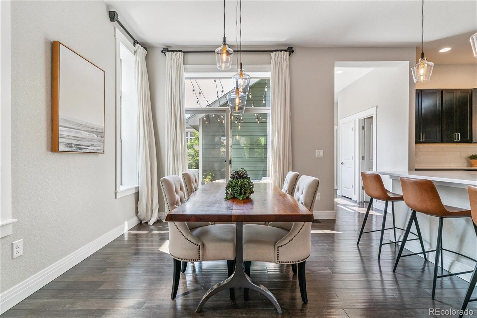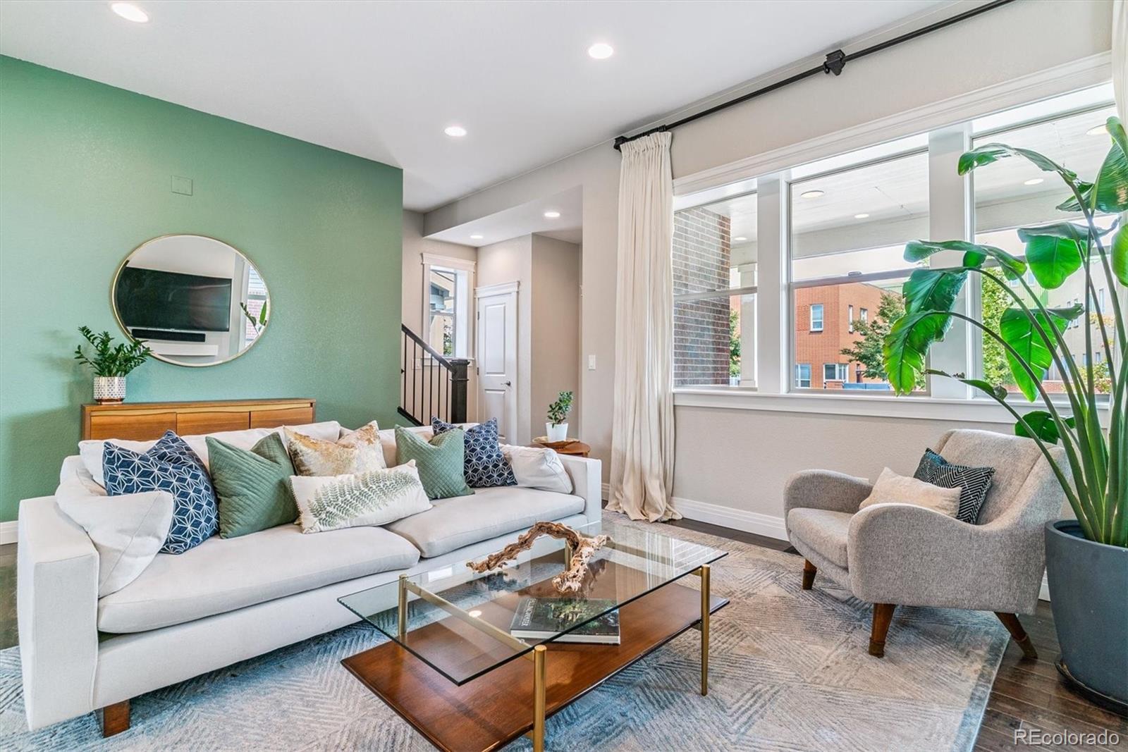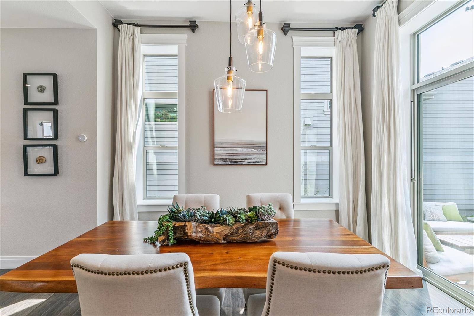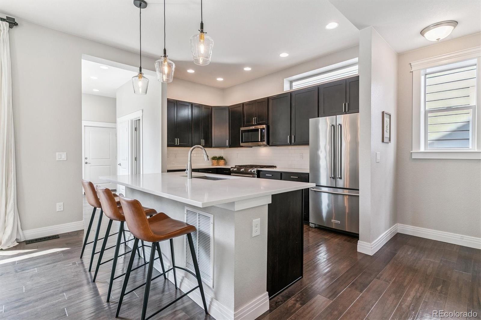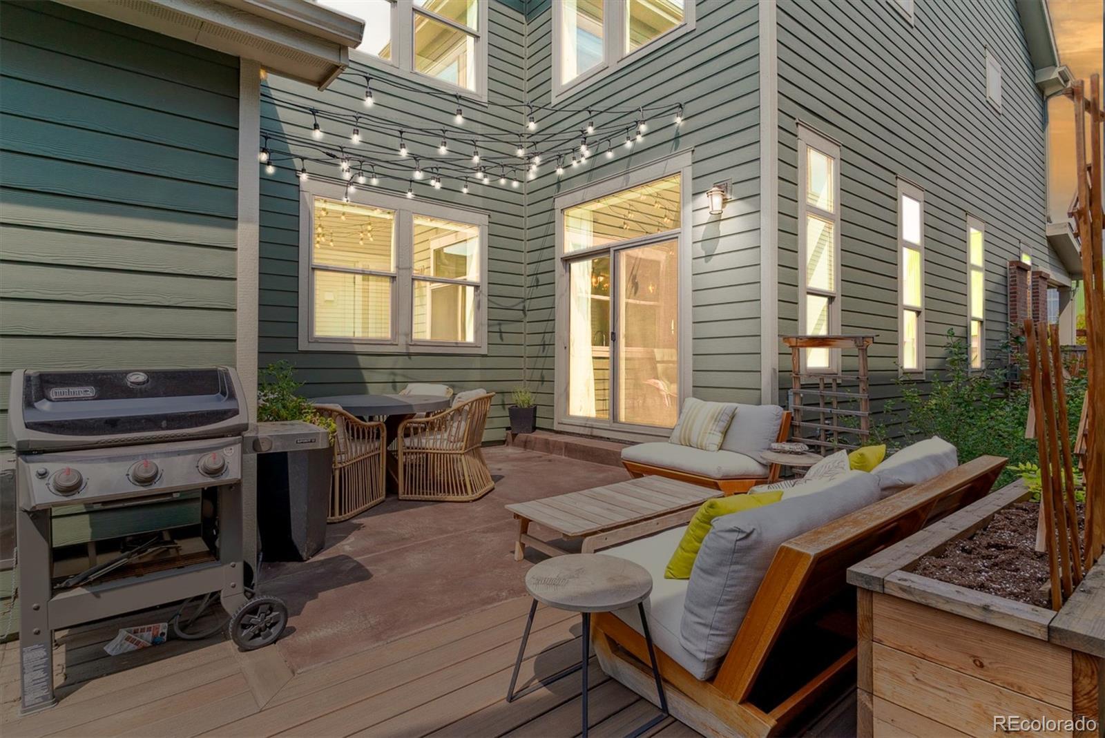 Embrace a lifestyle where sustainability meets sophistication. This meticulously designed green energy Central Park residence offers the perfect blend of eco-conscious living and modern amenities. From the moment you arrive and approach the cozy front porch to coming inside to see the designer upgrades you know you are in a special place. The main level that is bright and open with a fantastic kitchen area offers seamless indoor outdoor living. The expanded private patio and yard with turf grass and raised garden beds provides an out door oasis. Upstairs this home features a spacious primary suite with walk-in closet and gorgeous bathroom plus 2 more bedrooms and additional bathroom feature custom touches like built-in shelving and an upstairs laundry room to make your everyday life as convenient as possible. The fully finished basement adds additional living options, with a versatile family room, an additional bedroom with murphy bed, plus built-in storage or dry bar area, a convenient storage area or play room under the stairs and a full bathroom. Achieving LEED certification, this home boasts solar power integration, ENERGY STAR appliances, and advanced insulation, ensuring reduced utility costs and a minimal carbon footprint. In addition to the efficiencies this home is a healthy home with active radon mitigation system and whole house air purifier. Located across from Isabella Bird Community School which offers a gifted and talented program and situated in the vibrant community near the Stanley Marketplace, Eastbridge Town Center’s shops and restaurants, Bluff Lake Nature Center and Central Park. Plus this home offers easy access to Anschutz Medical Center, Children’s Hospital and so much more including I-70, I-225, and Denver International Airport (DIA). Commuting and exploring in Central Park couldn’t be more convenient.