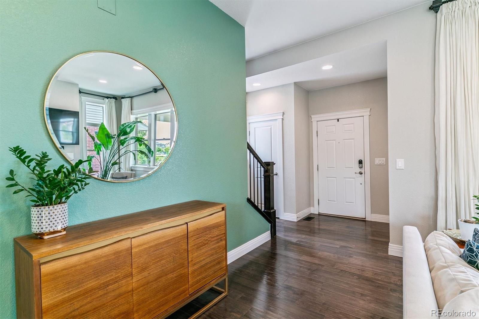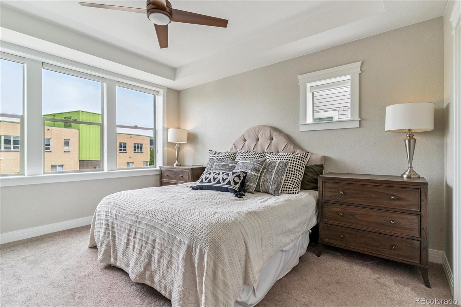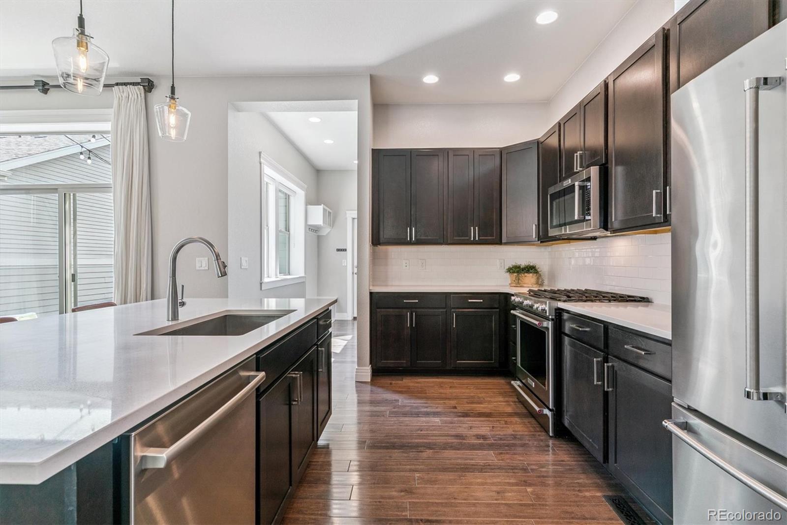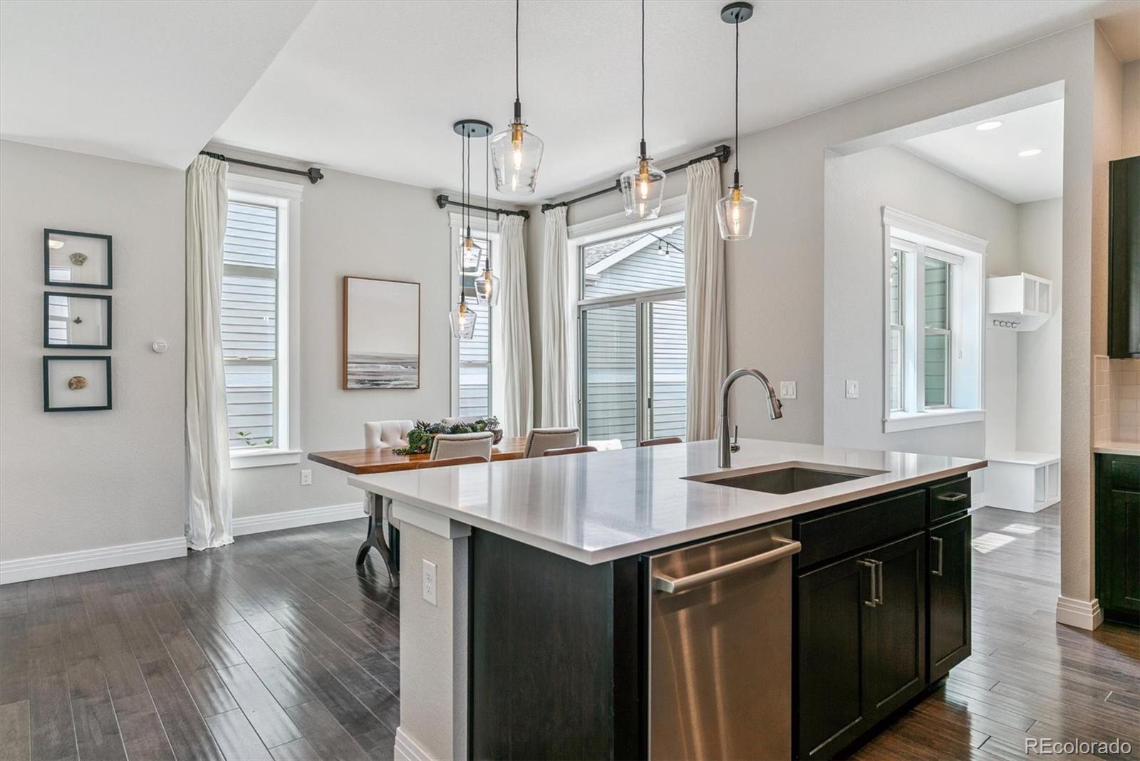 Embrace a lifestyle where sustainability meets sophistication. This meticulously designed green energy Central Park residence offers the perfect blend of eco-conscious living and modern amenities. From the moment you arrive and approach the cozy front porch to coming inside to see the designer upgrades you know you are in a special place. The main level that is bright and open with a fantastic kitchen area offers seamless indoor outdoor living. The expanded private patio and yard with turf grass and raised garden beds provides an out door oasis. Upstairs this home features a spacious primary suite with walk-in closet and gorgeous bathroom plus 2 more bedrooms and additional bathroom feature custom touches like built-in shelving and an upstairs laundry room to make your everyday life as convenient as possible. The fully finished basement adds additional living options, with a versatile family room, an additional bedroom with murphy bed, plus built-in storage or dry bar area, a convenient storage area or play room under the stairs and a full bathroom. Achieving LEED certification, this home boasts solar power integration, ENERGY STAR appliances, and advanced insulation, ensuring reduced utility costs and a minimal carbon footprint. In addition to the efficiencies this home is a healthy home with active radon mitigation system and whole house air purifier. Located across from Isabella Bird Community School which offers a gifted and talented program and situated in the vibrant community near the Stanley Marketplace, Eastbridge Town Center’s shops and restaurants, Bluff Lake Nature Center and Central Park. Plus this home offers easy access to Anschutz Medical Center, Children’s Hospital and so much more including I-70, I-225, and Denver International Airport (DIA). Commuting and exploring in Central Park couldn’t be more convenient.