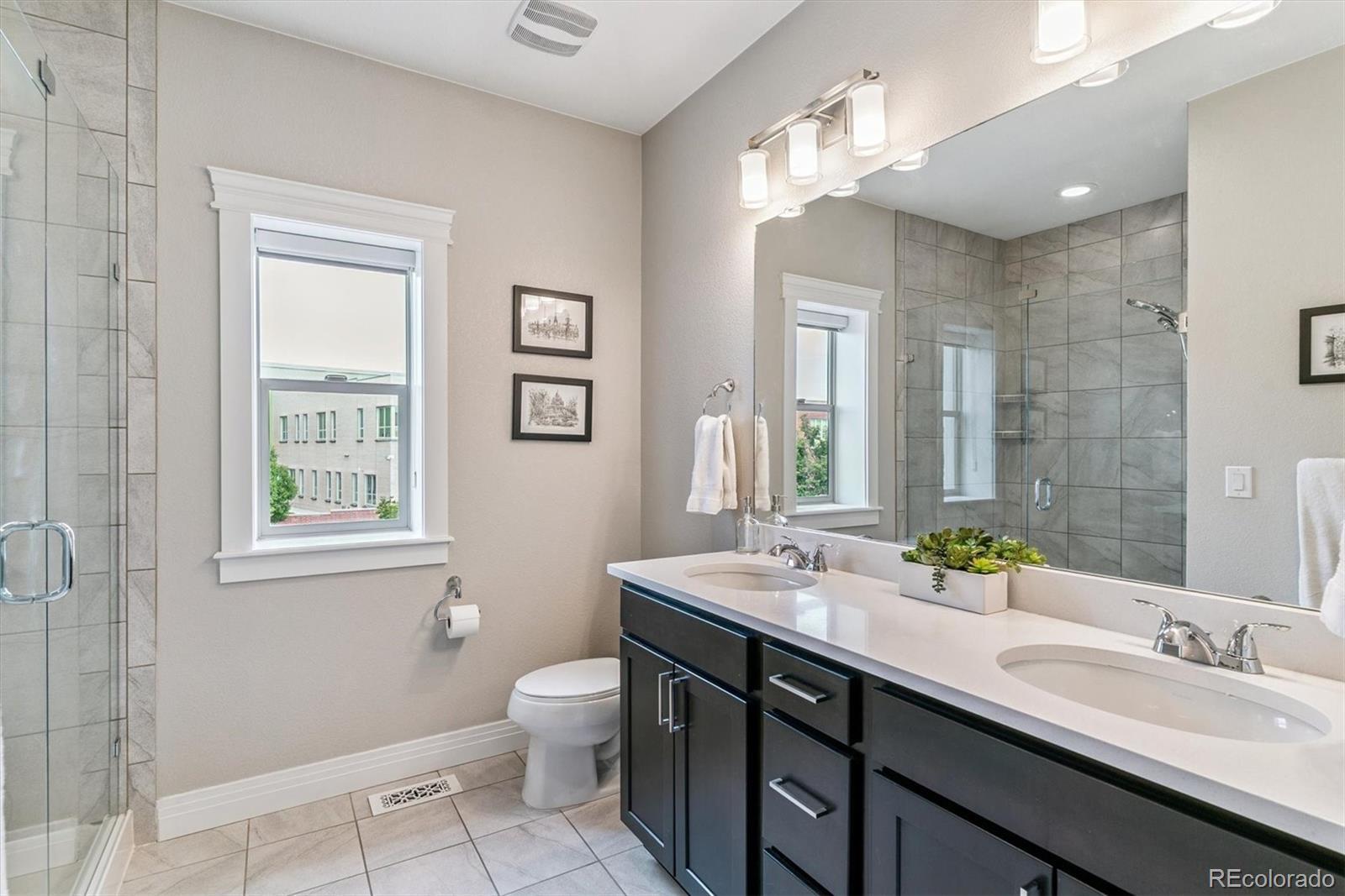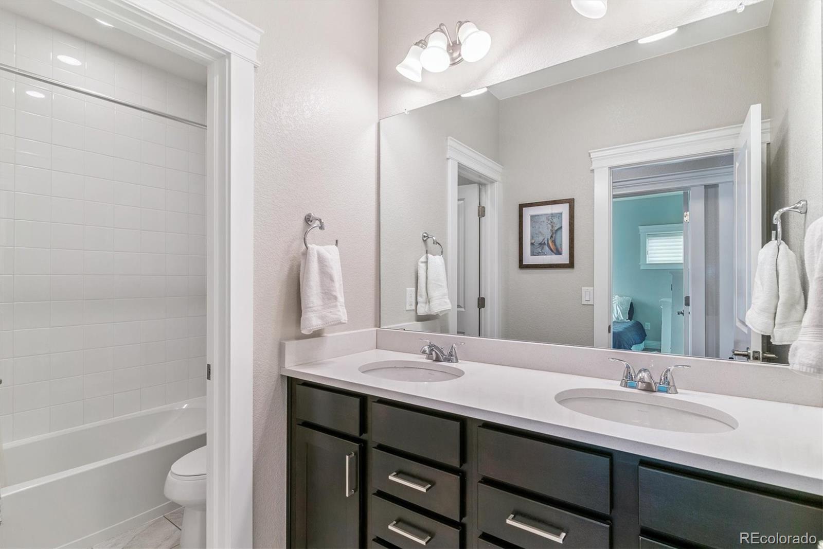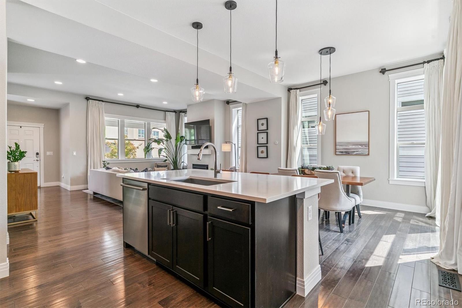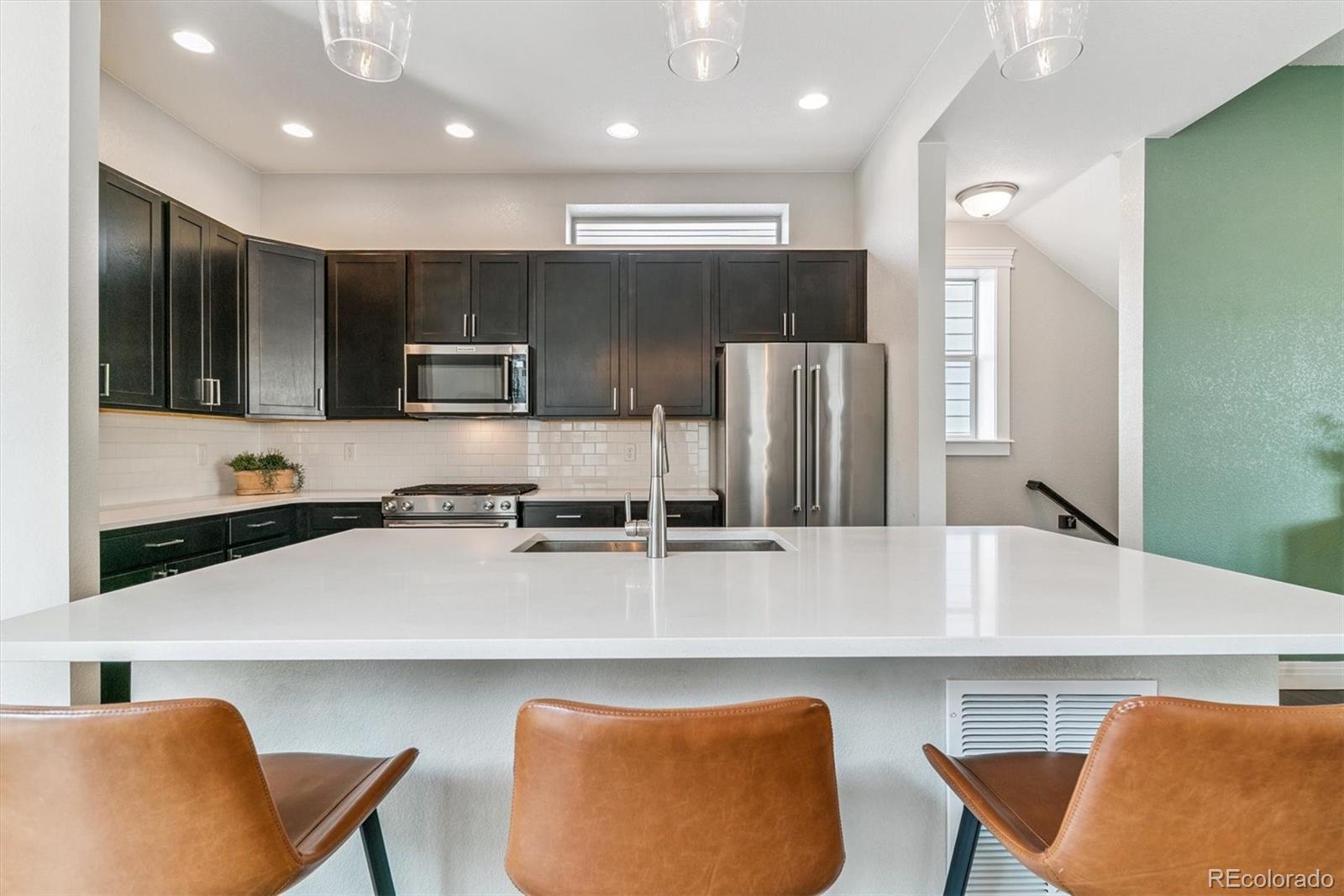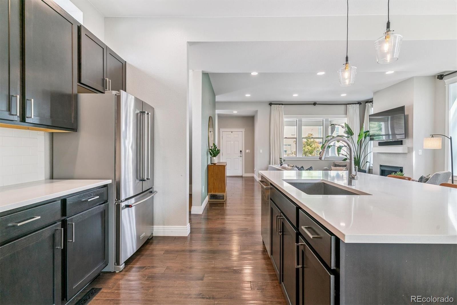 Embrace a lifestyle where sustainability meets sophistication. This meticulously designed green energy Central Park residence offers the perfect blend of eco-conscious living and modern amenities. From the moment you arrive and approach the cozy front porch to coming inside to see the designer upgrades you know you are in a special place. The main level that is bright and open with a fantastic kitchen area offers seamless indoor outdoor living. The expanded private patio and yard with turf grass and raised garden beds provides an out door oasis. Upstairs this home features a spacious primary suite with walk-in closet and gorgeous bathroom plus 2 more bedrooms and additional bathroom feature custom touches like built-in shelving and an upstairs laundry room to make your everyday life as convenient as possible. The fully finished basement adds additional living options, with a versatile family room, an additional bedroom with murphy bed, plus built-in storage or dry bar area, a convenient storage area or play room under the stairs and a full bathroom. Achieving LEED certification, this home boasts solar power integration, ENERGY STAR appliances, and advanced insulation, ensuring reduced utility costs and a minimal carbon footprint. In addition to the efficiencies this home is a healthy home with active radon mitigation system and whole house air purifier. Located across from Isabella Bird Community School which offers a gifted and talented program and situated in the vibrant community near the Stanley Marketplace, Eastbridge Town Center’s shops and restaurants, Bluff Lake Nature Center and Central Park. Plus this home offers easy access to Anschutz Medical Center, Children’s Hospital and so much more including I-70, I-225, and Denver International Airport (DIA). Commuting and exploring in Central Park couldn’t be more convenient.