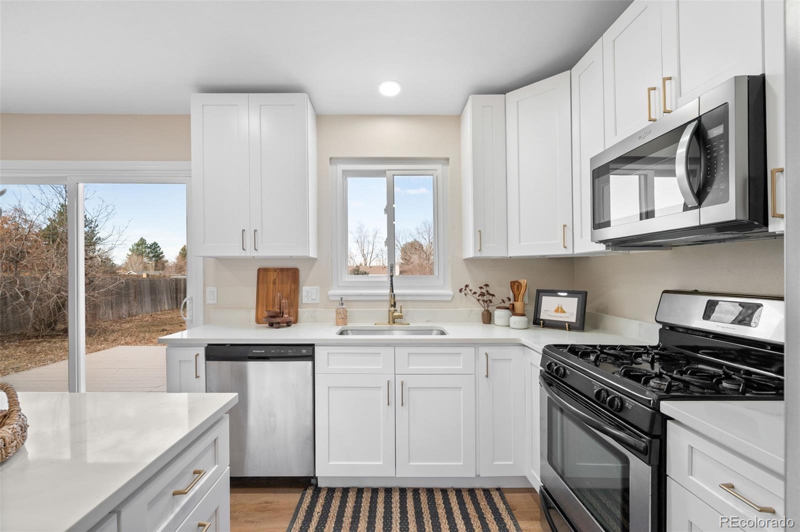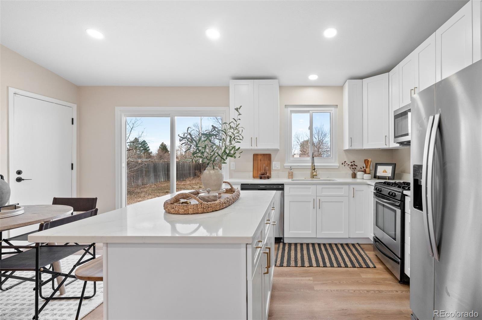 A beautifully remodeled, move-in ready home in a quiet Aurora neighborhood, perfectly positioned within the highly sought-after Cherry Creek School District, where modern comfort meets everyday ease. From the moment you walk in, the home feels fresh, bright, and effortlessly livable. The entire interior has been thoughtfully remodeled with modern finishes that feel both stylish and timeless, creating a space where settling in feels instant and easy. The open floor plan centers around a modern kitchen designed for connection. Quartz countertops, updated cabinetry, and sleek finishes pair beautifully with durable LVT flooring that flows throughout the home. Ideal for busy mornings, casual dinners, and hosting friends without missing a moment. Beyond the cosmetic updates, the major systems have already been taken care of. A new roof in 2023, furnace and A/C replaced in 2020, and a new water heater in 2025 provide peace of mind and long-term value, making this home truly move-in ready from top to bottom. Natural light fills the living spaces, while the large bedrooms offer comfortable, private retreats at the end of the day. Every update was chosen to support real life: low maintenance, high comfort, and a clean, cohesive feel throughout. Outside, the large, fully fenced backyard offers space to relax, play, or entertain. Whether it’s weekend grilling, morning coffee, or letting pets roam, it’s an extension of the home that adds to the lifestyle. An oversized garage provides the perfect setup for weekend projects, outdoor gear, and everything that comes with an active lifestyle. Set in a peaceful, established neighborhood close to parks, shopping, dining, and everyday conveniences, this location delivers both comfort and long-term appeal. It’s the kind of home that lets you move in confidently, live comfortably, and enjoy knowing the big things are already done. Schedule your showing today!