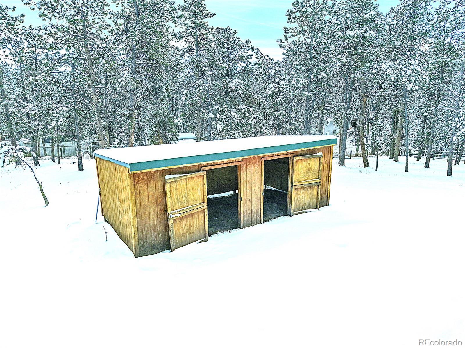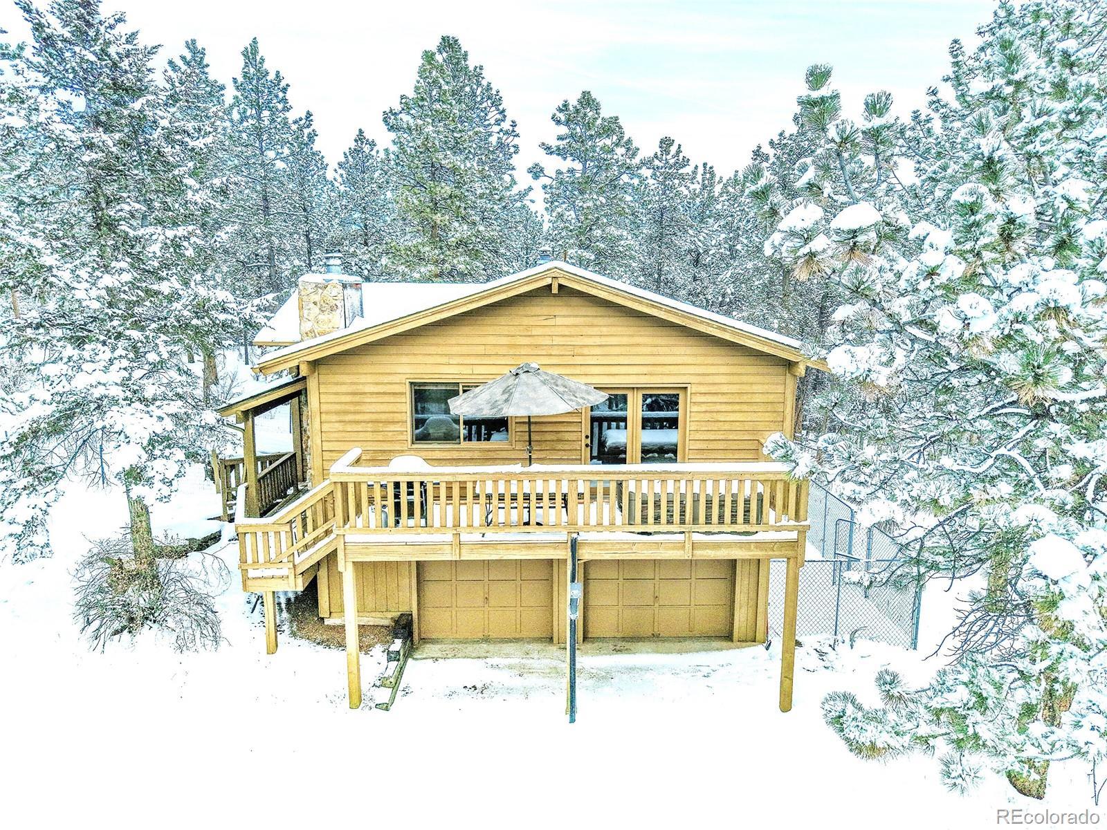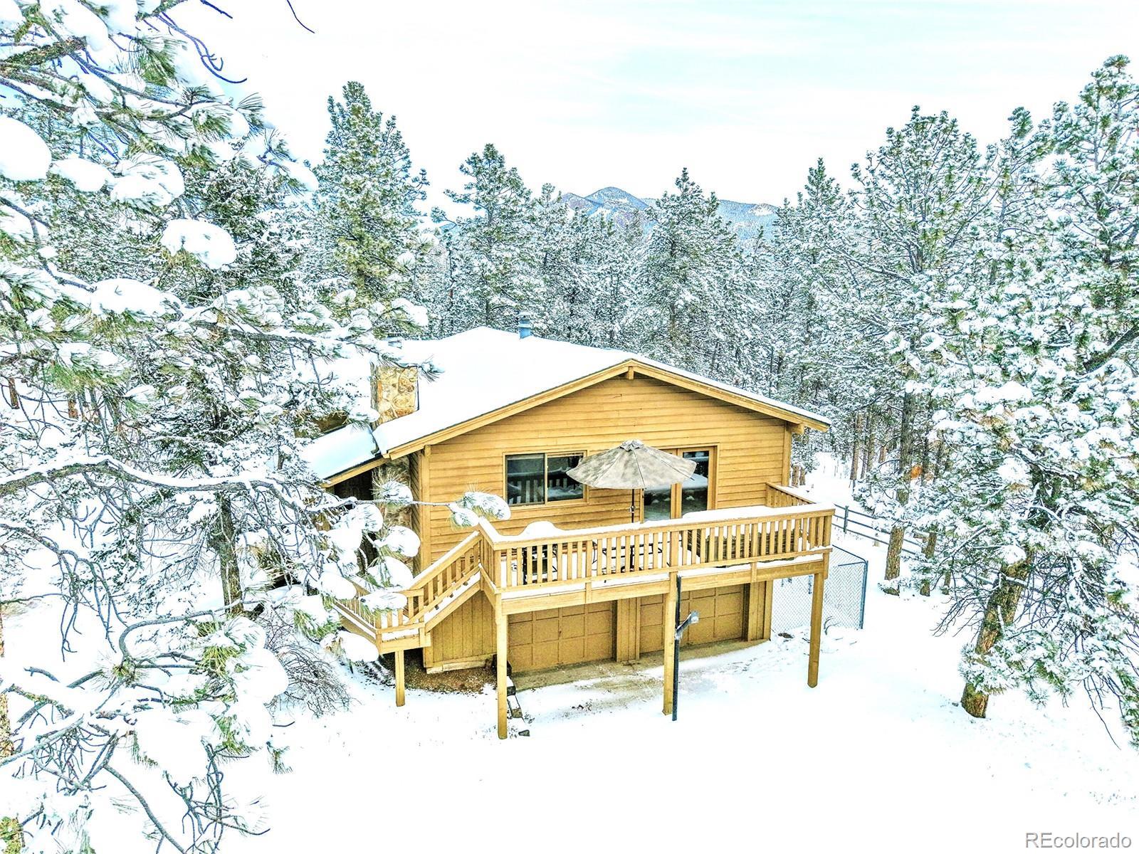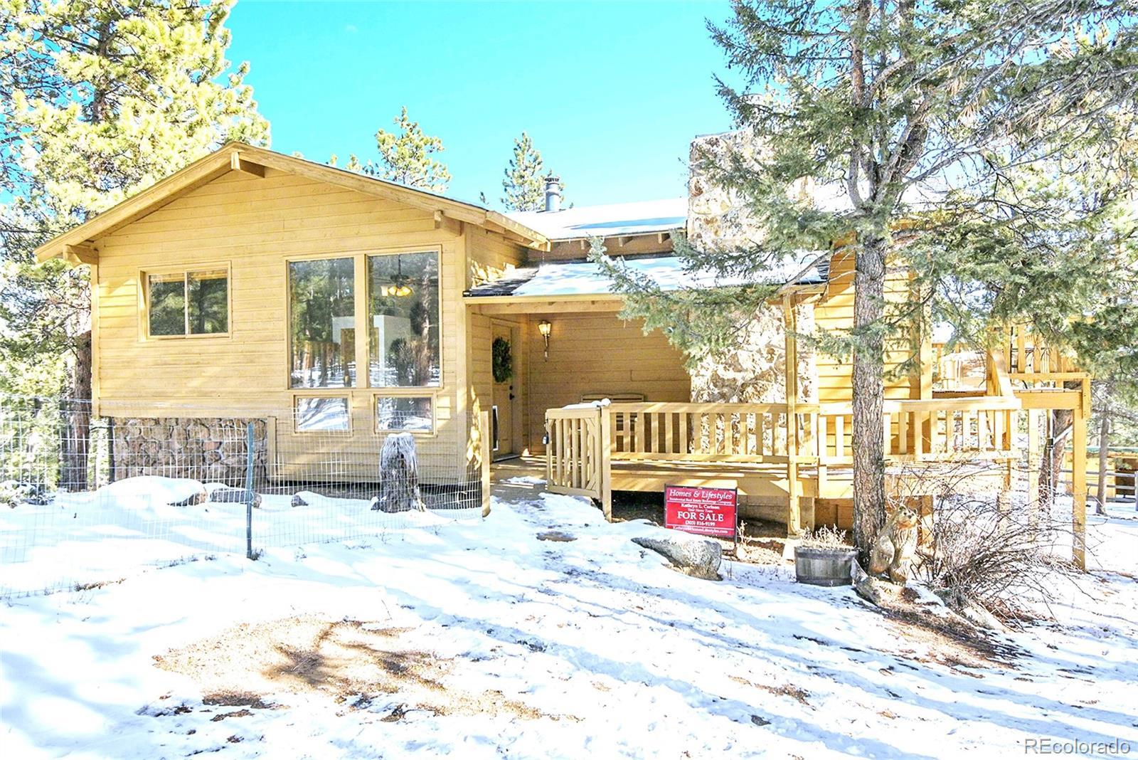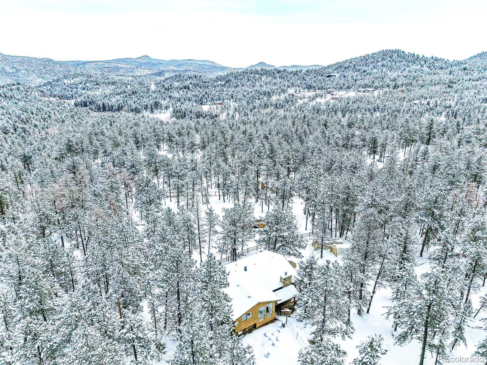 CHARMING MOUNTAIN HOME w/OUTBUILDINGS & Land - Located in Woodside Park | (3) Usable FULLY FENCED ACRES | Beautiful HORSE PROPERTY | Quiet Side Street ~ Nestled in the desired Woodside Park | 1.5 Miles off 285 | Minutes from Conifer | 30 Min to SW Denver Metro | $$$ Up to $6,500 BUYER CREDIT w/preferred lender | Front Gate Entrance, Private, Long Driveway to Home, Garage & Outbuildings | 2 Stall Barn for your Horses/Pets -or Enclose for your Workshop | Stable/Loafing Shed | Hay Storage Canopies | Woodside Park has hiking trails, an Equestrian Center w/stables and an arena for residents. Enjoy riding from your property onto miles of the neighborhood trails ~in this equestrian community. This is one of the most desirable horse-friendly properties in the foothills. This Home Features an Open Floor Plan: Inviting Kitchen ~Ready for your Holiday Cooking. Dining Room w/French Doors to Deck -Great for Entertaining: Grill Out & Soak in the Hot Tub under the Stars. Family Room- Gather near the Rock Moss Fireplace. Living Room- Read & Relax. Primary Bedroom w/ full bathroom & private balcony ~overlooking the property. Lower Walk out Level Features: 2 bedrooms, Full Bathroom, Wood Stove, Laundry, Utility/storage. Attached 515+s/f Garage w/storage | Abundance of Parking | Home Generator | Paved Roads to Entrance of Property | County Maintained Roads | Located in the banana belt=less snow accumulation | Minutes from Elk Creek Fire Station, grocery stores, schools, coffee shops, eateries & Staunton State Park for recreational fun | LEGAL HORSE PROPERTY w/legal watering | Well household inside use w/water augmentation usage for horses, livestock and irrigation is available through the voluntary association | Drinking post/automatic horse waterer included | Contact Agent for List of Home Improvements & Your Private Tour |+Priced accordingly to reflect the interior, which the new owner, can make updates/design to his/her liking | Start the New Year w/ this Fantastic Property!