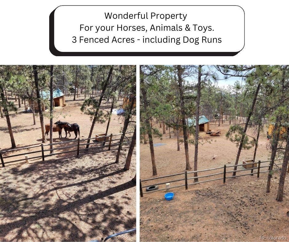 *** Taking Back up-offers - Call listing agent for info | Up to $6500 Buyer Credit at Closing, w/Preferred Lender | CHARMING MOUNTAIN HOME w/OUTBUILDINGS & Land - Located in Woodside Park | (3) Usable FULLY FENCED ACRES | Beautiful HORSE PROPERTY | Quiet Side Street ~ Nestled in the desired Woodside Park | 1.5 Miles off 285 | Minutes from Conifer | 30 Min to SW Denver Metro ads | Front Gate Entrance, Private, Long Driveway to Home, Garage & Outbuildings | 2 Stall Barn for your Horses/Pets -or Enclose for your Workshop | Stable/Loafing Shed | Hay Storage Canopies | Woodside Park has hiking trails, an Equestrian Center w/stables and an arena for residents. Enjoy riding from your property onto miles of the neighborhood trails ~in this equestrian community. This is one of the most desirable horse-friendly properties in the foothills. This Home Features an Open Floor Plan: Inviting Kitchen ~Ready for your Holiday Cooking. Dining Room w/French Doors to Deck -Great for Entertaining: Grill Out & Soak in the Hot Tub under the Stars. Family Room- Gather near the Rock Moss Fireplace. Living Room- Read & Relax. Primary Bedroom w/ full bathroom & private balcony ~overlooking the property. Lower Walk out Level Features: 2 bedrooms, Full Bathroom, Wood Stove, Laundry, Utility/storage. Attached 515+s/f Garage w/storage | Abundance of Parking | 12K+ Home Generator Included | Paved Roads to Entrance of Property | County Maintained Roads | Located in the banana belt=less snow accumulation | Minutes from Elk Creek Fire Station, grocery stores, schools, coffee shops, eateries & Staunton State Park for recreational fun | LEGAL HORSE PROPERTY w/legal watering | Well household inside use w/water augmentation usage for horses, livestock and irrigation is available through the voluntary association | Drinking post/automatic horse waterer included | Roof Replaced: Oct 2017 |+Priced accordingly to reflect the interior, which the new owner, can make updates/design to his/her liking |