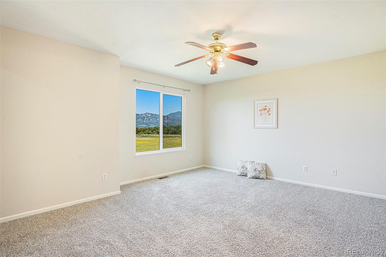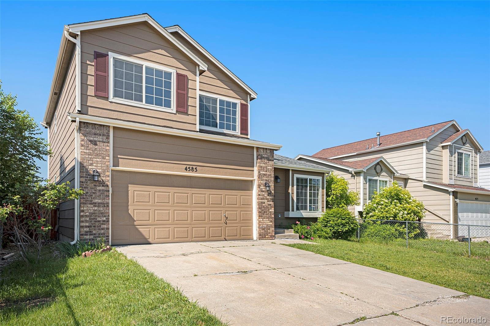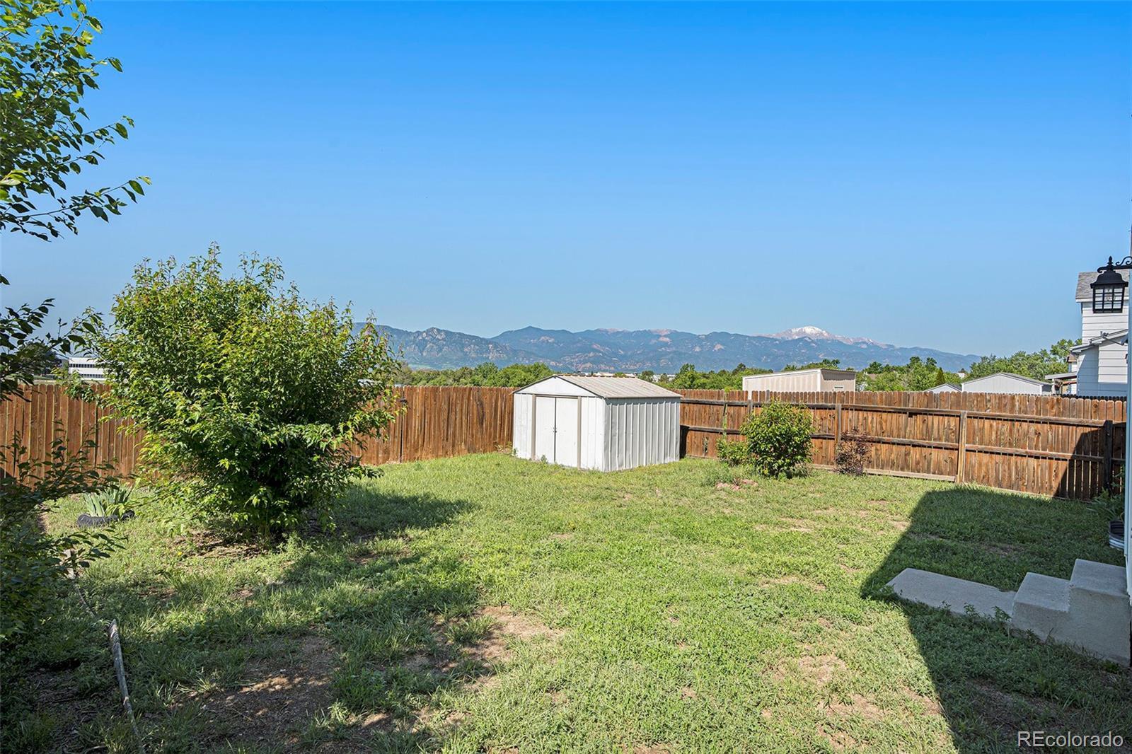 BRAND NEW CARPET! Well-maintained, move-in ready home with magnificent mountain views! Great location near Fort Carson, Peterson Space Force Base, and Schriever Air Force Base! The main level features a functional layout with a two-sided fireplace separating the family and living rooms, and vaulted ceilings in the great room that add a sense of openness. The kitchen includes stainless steel appliances, ceramic tile flooring, and a pantry for added storage. A convenient half bath is also located on the main level. The upper level, includes a spacious master suite with stunning mountain views, a walk-in closet, and an adjoining bath featuring a double vanity. 2 additional bedrooms and full bathroom round out the upper level. The fully finished garage has painted floors, offering a clean and versatile space. The home also includes an unfinished basement with rough-ins, providing plenty of potential for future customization. A radon mitigation system is already in place. Enjoy outdoor living with a shed in the backyard and no rear neighbors—offering beautiful Front Range views. Minutes from shopping, schools, parks, restaurants, and major thoroughfares! This beautiful home is move-in ready for an easy transition for you!