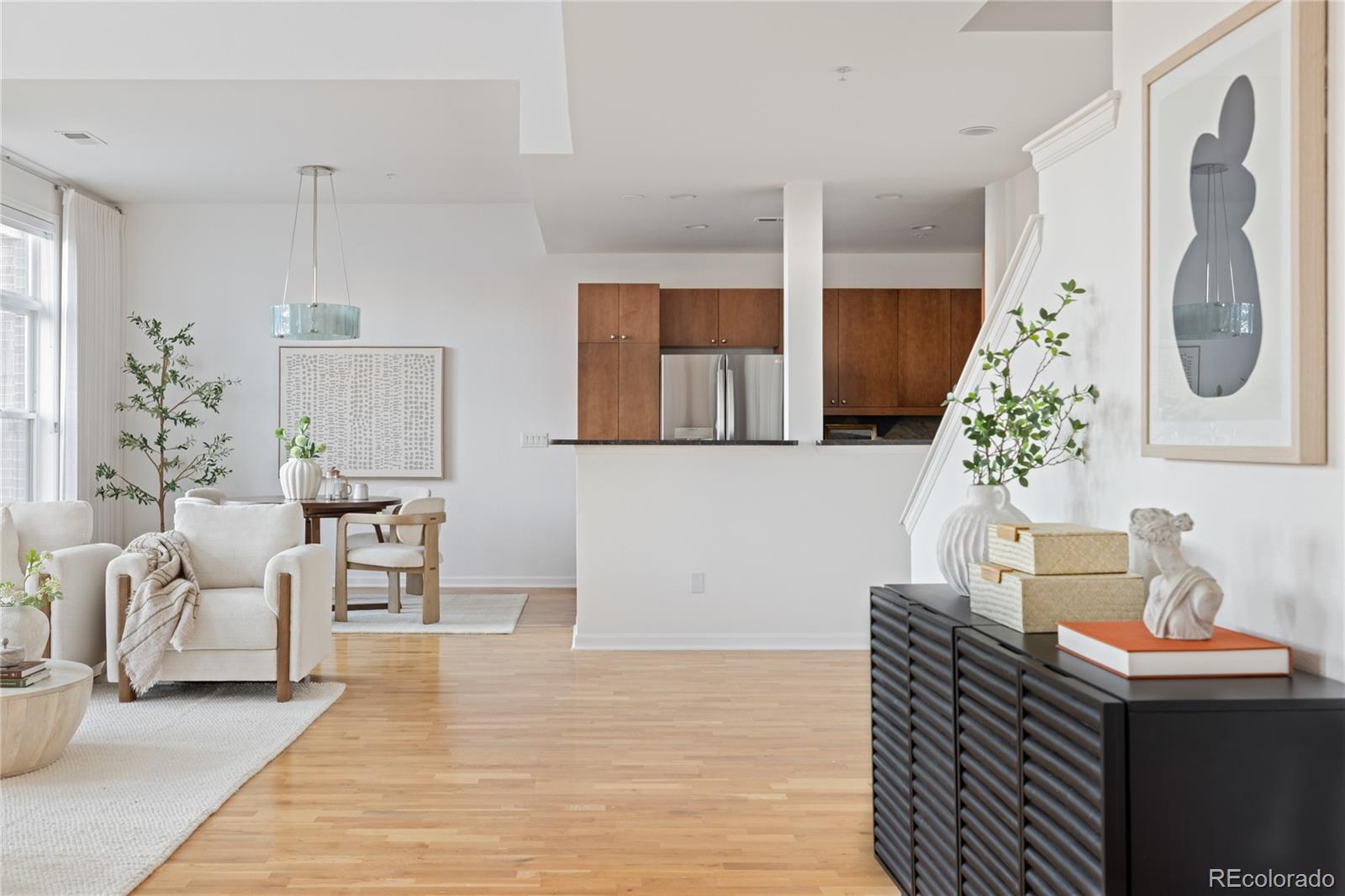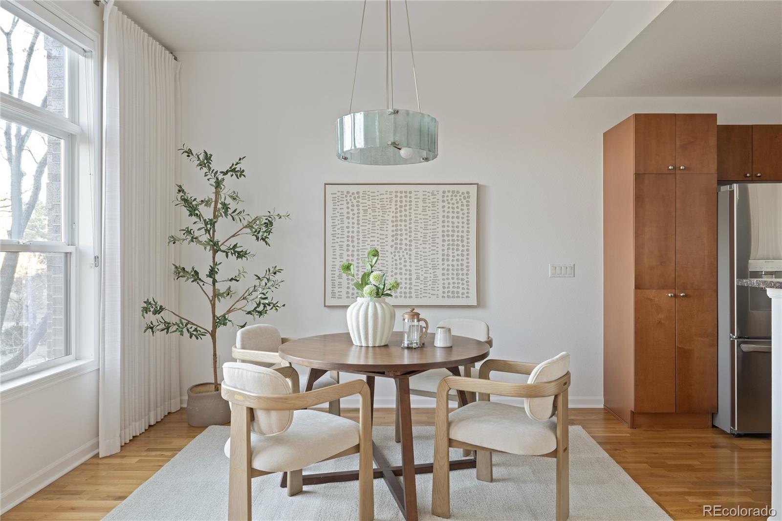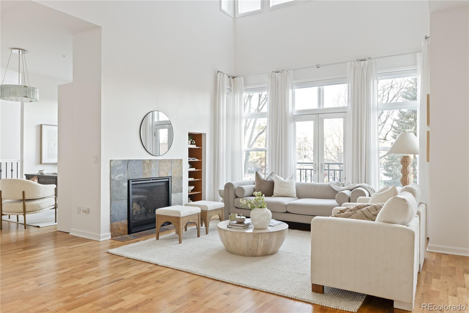 Welcome to 1662 Fillmore Street, a spacious townhome offering resort-style amenities and an unbeatable Denver location! As you enter the main living space, you’re greeted by soaring ceilings and abundant natural light. The space is enhanced by custom, remote-controlled Hunter Douglas shades and a gas fireplace that anchors the space and creates a cozy atmosphere for relaxing or entertaining. The open-concept floor plan flows seamlessly into the kitchen, which has been thoughtfully updated with a new LG refrigerator. The main floor also includes a dining area and a versatile flex space that provides the perfect solution for a home office or playroom and beautifully conceals a Murphy bed, making hosting overnight guests easy and elegant. Upstairs, you’ll find two spacious bedrooms, each featuring a walk-in closet and en-suite bathroom for ultimate comfort and convenience. Continue up to the private rooftop patio, where breathtaking city and mountain views provide an ideal backdrop for morning coffee or sunset cocktails. This home includes two reserved parking spaces in a secure, attached garage with direct access into the residence. Additionally, residents of The Pinnacle at City Park South enjoy an exceptional suite of amenities, including a rooftop pool, fitness center, executive meeting rooms, business center, private wine storage, movie theater, guest suites, and more. Located less than one block from City Park, you’ll enjoy easy access to the City Park Golf Course, Denver Zoo, Denver Museum of Nature & Science, acres of open space and trails, tennis courts, playgrounds, and free City Park Jazz concerts all summer long. Just 10 minutes to Cherry Creek, 15 minutes to Downtown Denver, and within convenient proximity to I-70 for mountain and airport access, this home truly delivers the best of Denver living.
