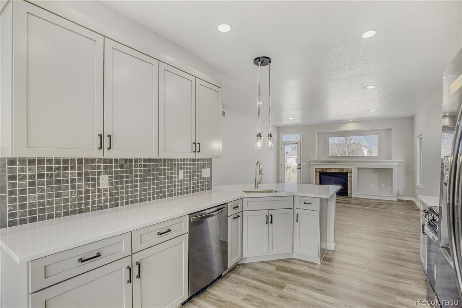 Discover the perfect blend of modern luxury and effortless main-floor living in the highly sought-after River West community of Windsor. This recently renovated ranch-style home greets you with a bright, open-concept floor plan anchored by a cozy living room featuring a classic gas fireplace. The heart of the home is the stunning, remodeled kitchen, boasting sleek quartz countertops, a breakfast bar for casual dining, and brand-new stainless steel appliances. Adjacent to the kitchen, the dining room serves as a true centerpiece, showcasing gorgeous vaulted ceilings and expansive windows that bathe the space in natural light. The main-level primary suite offers a private sanctuary complete with a generous en-suite bath and a large walk-in closet. The main floor also hosts a second comfortable bedroom, a full guest bath, and a dedicated laundry room with direct access to the attached two-car garage—perfectly designed for ease of use. Downstairs, the finished basement significantly expands your living space, featuring a massive family room, two additional well-sized bedrooms, another full bath, and a separate storage room. The outdoor space is just as inviting, with a fully fenced backyard, mature trees, and a sunny patio made for weekend BBQs. Practical upgrades like the south-facing driveway ensure snow melts quickly in the winter, while the recent high-end remodel means you can move in with total peace of mind. Situated just moments from numerous lakes, reservoirs, and the scenic Poudre River Trail, this home offers unparalleled access to outdoor recreation while keeping you close to the heart of Windsor.