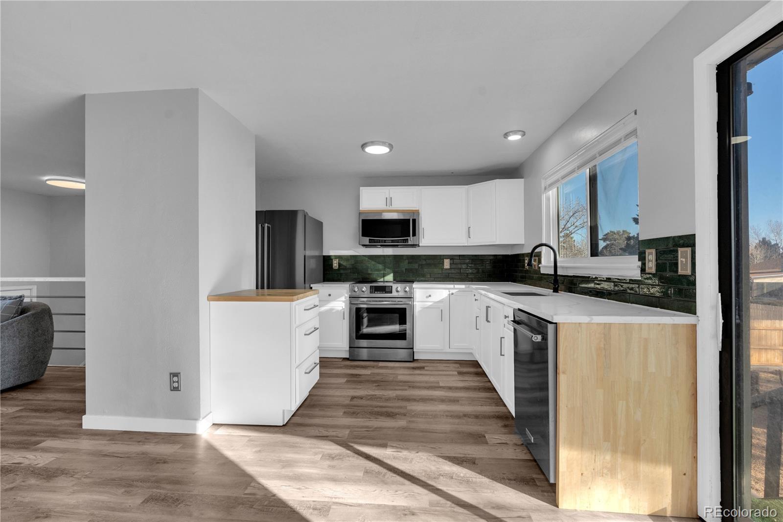 Welcome home to this beautifully updated split-level in a quiet, established neighborhood. Fresh paint, new flooring, and abundant natural light create a bright, move-in-ready feel throughout the main living spaces. The remodeled kitchen features white cabinetry, sleek countertops, stainless steel appliances, and a modern tile backsplash, with easy access to the backyard—ideal for everyday living and entertaining. Comfortable bedrooms, updated bathrooms with contemporary finishes, and a flexible lower level provide space for a second living area, home office, or guest retreat. Outside, enjoy a private backyard with mature trees and a covered patio, plus an expanded driveway and attached two-car garage offering excellent parking and storage. Conveniently located near shopping, dining, parks, and commuter routes, this home is ready for its next owner.