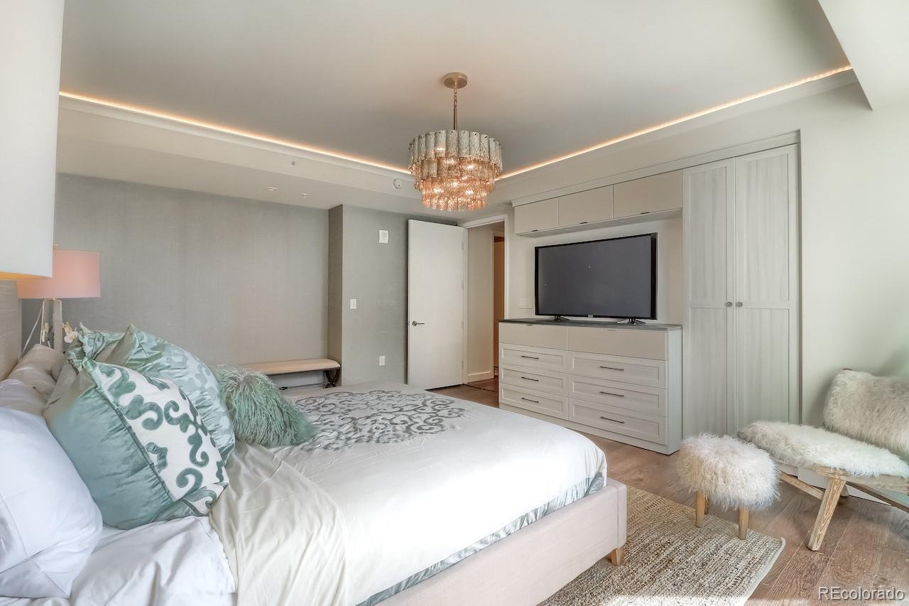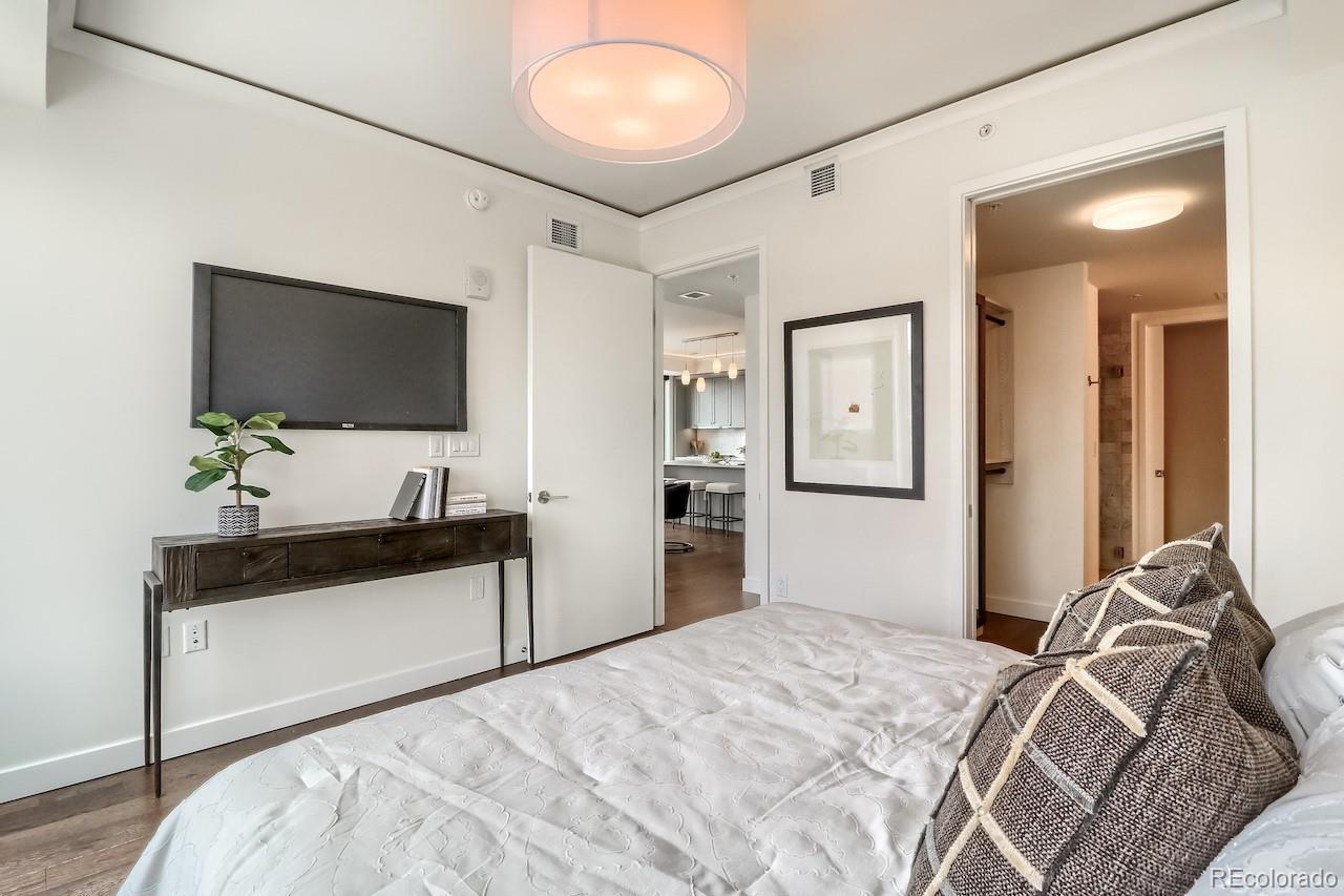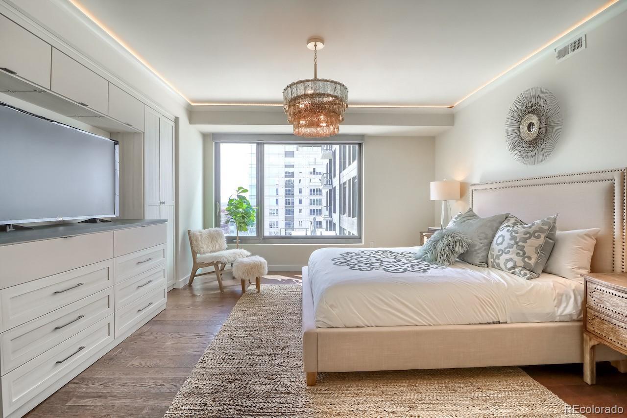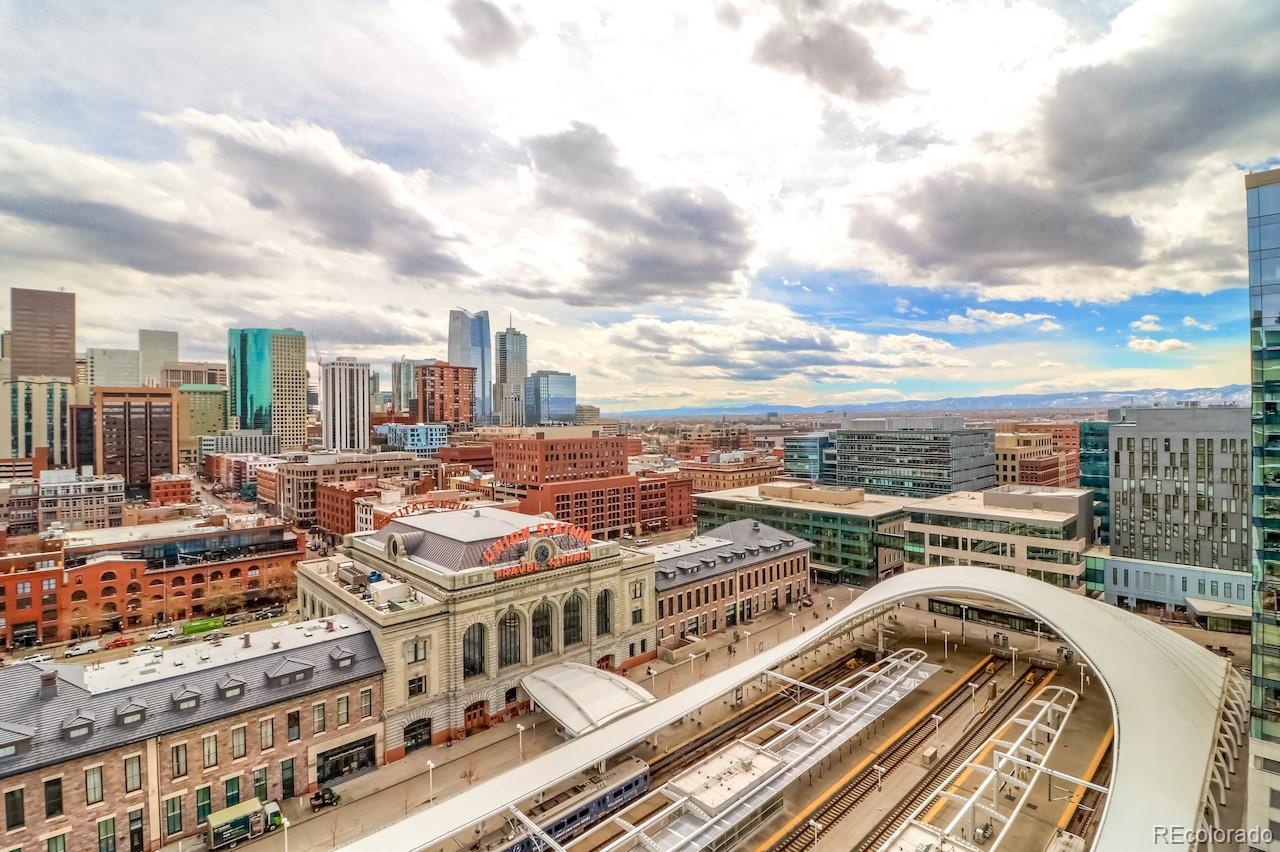 This turnkey, one-of-a-kind three-bedroom luxury home on the 15th floor offers panoramic views of Denver’s Union Station, the Front Range, and beyond. Thoughtfully designed custom upgrades complement a bright, free-flowing floor plan with high ceilings and oversized rooms. The kitchen features stainless steel Bosch and Thermador appliances with a gas range, soft-close maple cabinetry, and quartz countertops. The living room showcases expansive views, a fireplace, custom accent wall, and access to a large private balcony. Privately situated, the spacious Primary Suite offers stunning mountain and Union Station views and numerous upgrades. The en-suite bath includes a dual vanity and a spa-like signature wet room with an oversized window, Calacatta marble walls and floors, and one of the largest closets in the building, fitted with a custom California Closet system. The second Primary Bedroom features an en-suite bath with dual vanities, a signature wet room, and a walk-through closet with custom California Closet systems. The third bedroom includes a built-in Murphy bed, ideal for a guest suite, office, or den. Residents enjoy luxury amenities throughout the building, including a 24/7 front desk, fitness center, owner’s library, community garden, catering kitchen with grills, bike storage, pet wash, and a package room with cold storage. The 18th floor offers resort-style amenities with a rooftop pool, hot tub, fire pit lounge, and elegant club room with panoramic city and mountain views. Located in the heart of Union Station, the building provides immediate access to Denver’s premier dining, shopping, and transportation, including Whole Foods Market, light rail, commuter rail, bus lines, Commons Park, and downtown neighborhoods. Garage parking available for lease. Select pets considered & pet rent is contingent on rent price. Rental price is for a 6+ month lease. Ask about shorter-term rates.