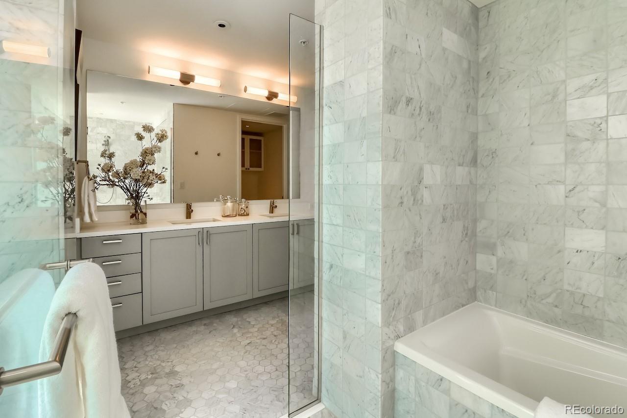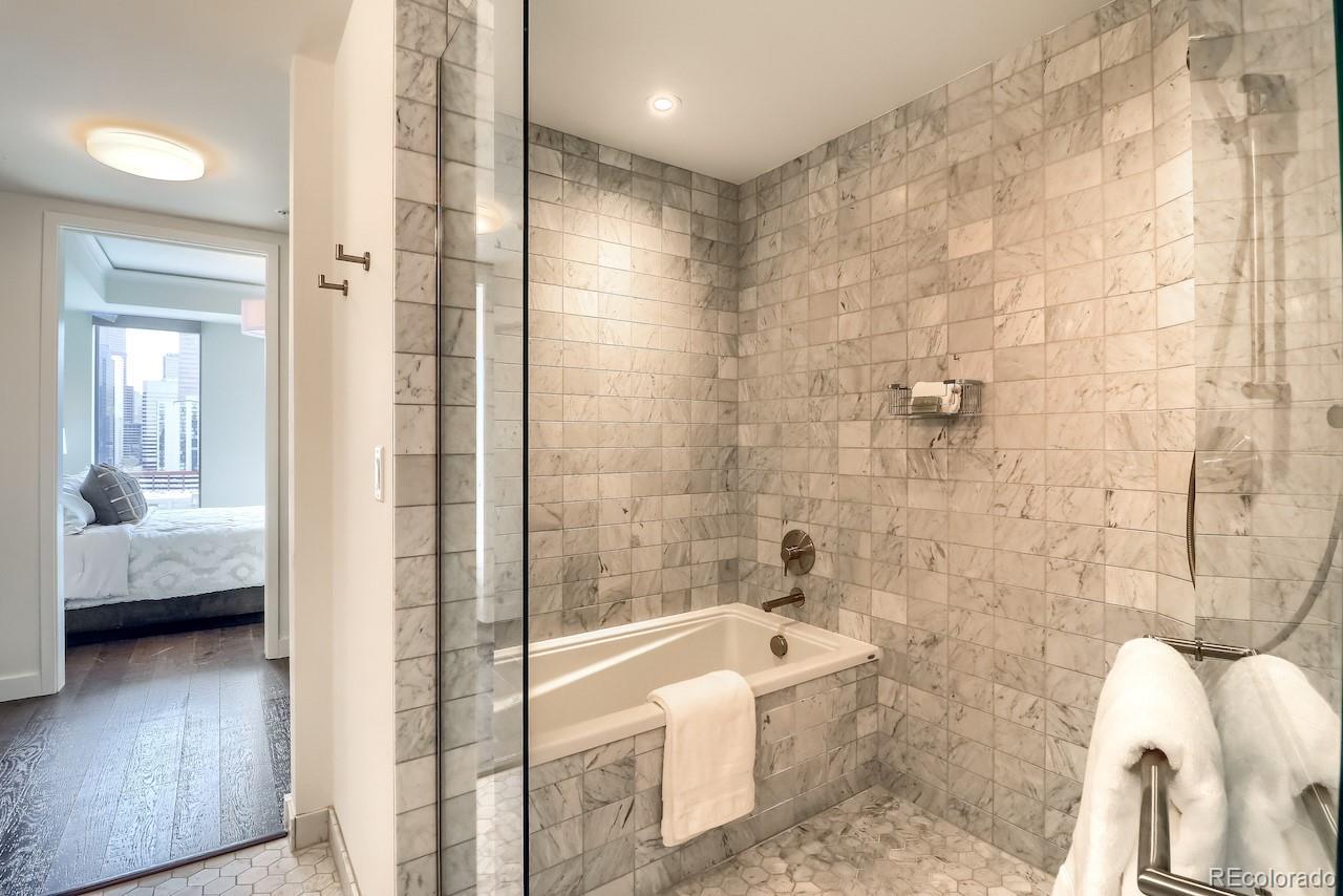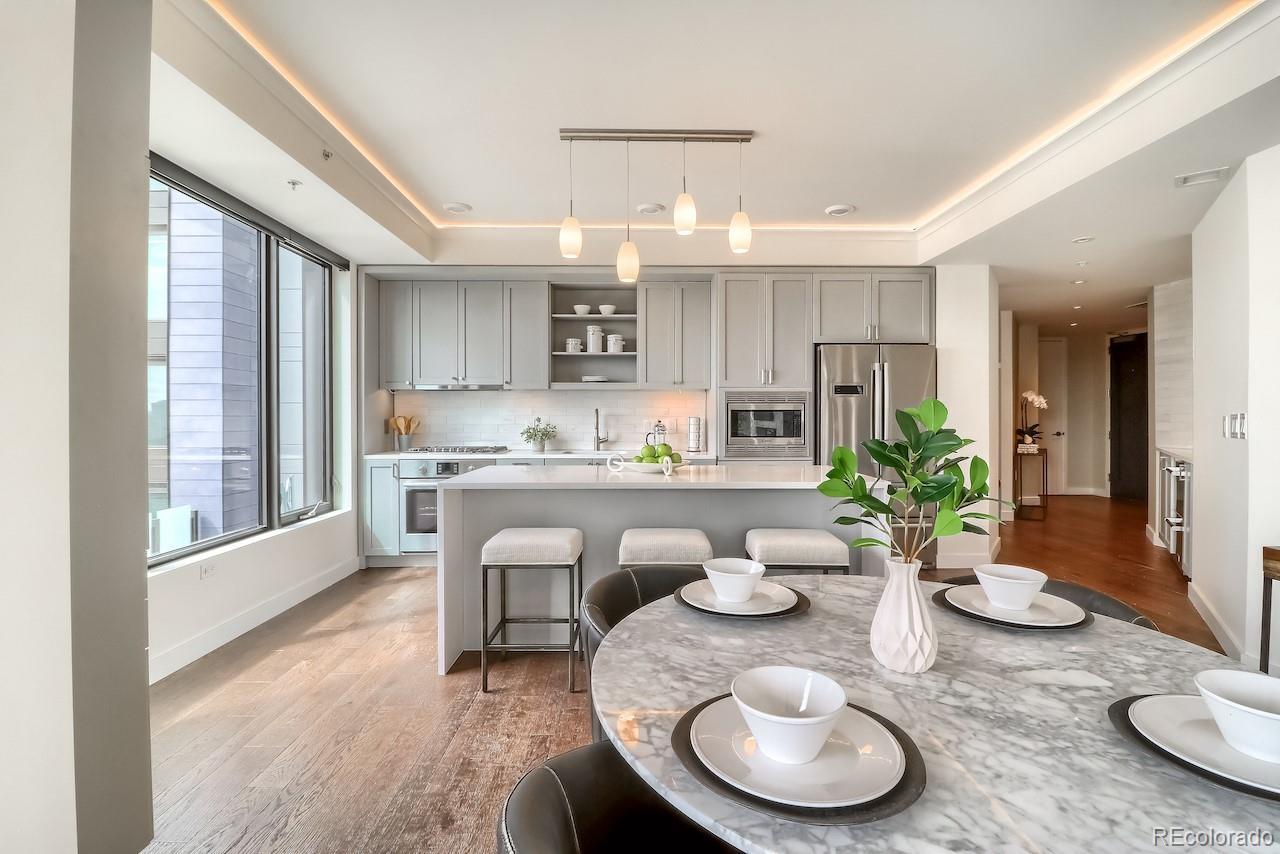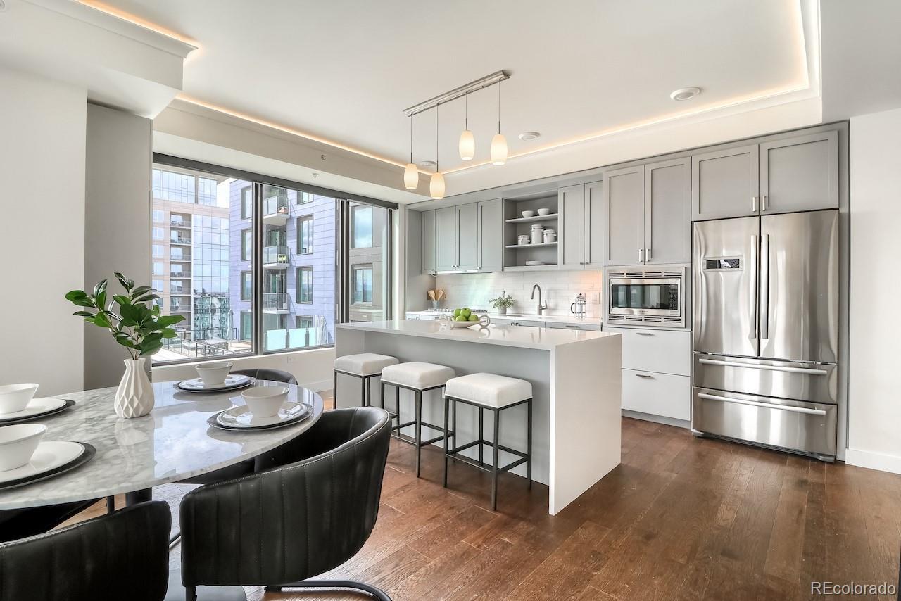 This turnkey, one-of-a-kind three-bedroom luxury home on the 15th floor offers panoramic views of Denver’s Union Station, the Front Range, and beyond. Thoughtfully designed custom upgrades complement a bright, free-flowing floor plan with high ceilings and oversized rooms. The kitchen features stainless steel Bosch and Thermador appliances with a gas range, soft-close maple cabinetry, and quartz countertops. The living room showcases expansive views, a fireplace, custom accent wall, and access to a large private balcony. Privately situated, the spacious Primary Suite offers stunning mountain and Union Station views and numerous upgrades. The en-suite bath includes a dual vanity and a spa-like signature wet room with an oversized window, Calacatta marble walls and floors, and one of the largest closets in the building, fitted with a custom California Closet system. The second Primary Bedroom features an en-suite bath with dual vanities, a signature wet room, and a walk-through closet with custom California Closet systems. The third bedroom includes a built-in Murphy bed, ideal for a guest suite, office, or den. Residents enjoy luxury amenities throughout the building, including a 24/7 front desk, fitness center, owner’s library, community garden, catering kitchen with grills, bike storage, pet wash, and a package room with cold storage. The 18th floor offers resort-style amenities with a rooftop pool, hot tub, fire pit lounge, and elegant club room with panoramic city and mountain views. Located in the heart of Union Station, the building provides immediate access to Denver’s premier dining, shopping, and transportation, including Whole Foods Market, light rail, commuter rail, bus lines, Commons Park, and downtown neighborhoods. Garage parking available for lease. Select pets considered & pet rent is contingent on rent price. Rental price is for a 6+ month lease. Ask about shorter-term rates.