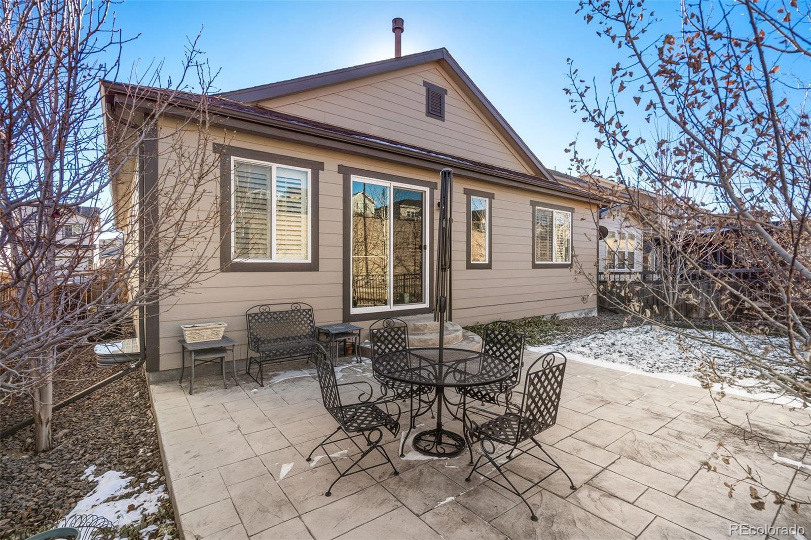 Beautifully upgraded Richmond Arlington Ranch in the sought-after Cobblestone neighborhood. This light-filled home features engineered hardwood floors, an open-concept layout, and abundant windows throughout. The spacious living room showcases a striking floor-to-ceiling fireplace and opens to the backyard patio—ideal for indoor-outdoor living. The gourmet kitchen offers a large island, solid-surface countertops, stainless steel appliances, generous cabinetry, a huge pantry, and an expansive dining area perfect for entertaining or everyday living. The private primary suite is a true retreat with dual vanities, a massive walk-in shower, and walk-in closet. Two additional bedrooms, a full bath, and a laundry room with utility sink complete the main level. Extensive upgrades throughout. Enjoy Cobblestone’s exceptional amenities, including a pool, tennis courts, clubhouse, scenic trails, and convenient access to Parker, DTC, and DIA.