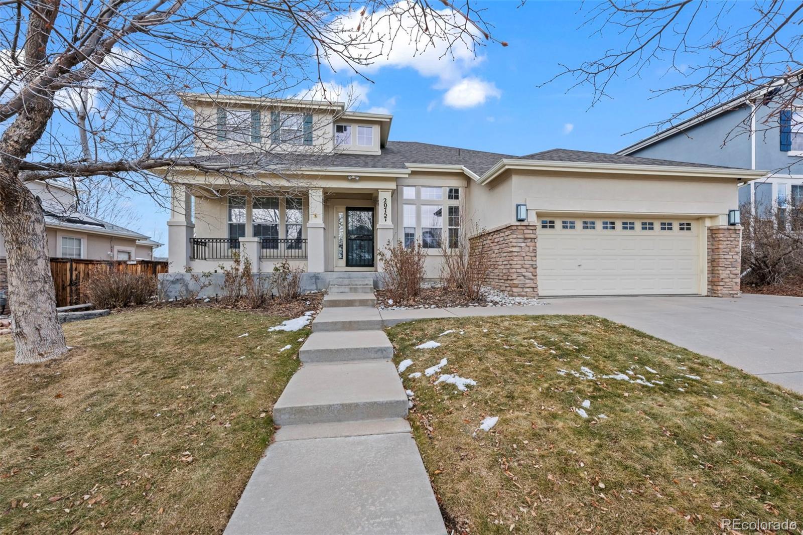 Designed for effortless living this open-concept home features a spacious main level primary suite and light filled gathering spaces. Nestled in the desirable Conservatory community this home is in an ideal location backing to greenbelt and walking trail. The home boasts lots of square footage as one of the largest models with space for everyone. Enjoy a welcoming entry and front office space. Sitting and dining areas with tons of natural light are also great for hosting gatherings. The great room with gas fireplace and large windows flows seamlessly to the bright kitchen with over-sized island, eating nook and pantry. The spacious primary suite is located on the main level and includes a large 5 piece bathroom and walk-in closet. There are three spacious bedrooms upstairs and full bathroom. The full size basement features tons of storage or is ready for your future finish. Convenient oversized 2.5 car garage and main floor laundry with mud sink. Recent updates/upgrades you are sure to appreciate including newer roof, furnace, water heater and assumable leased solar panels. Enjoy spring afternoons from your covered back patio facing green belt and walking path. This Community offers several pocket parks, trails for hiking or biking, and a community pool! Schedule your private showing today!