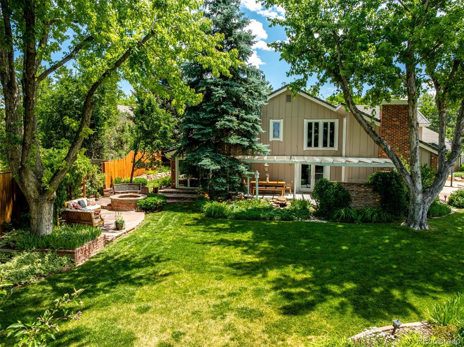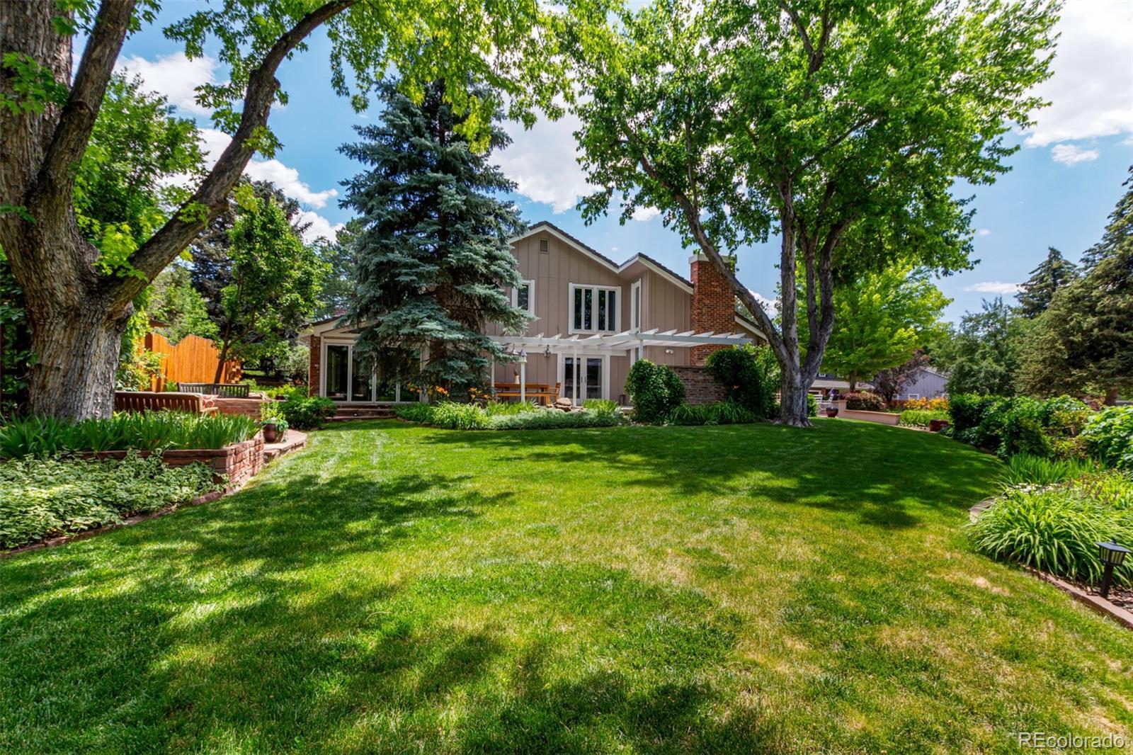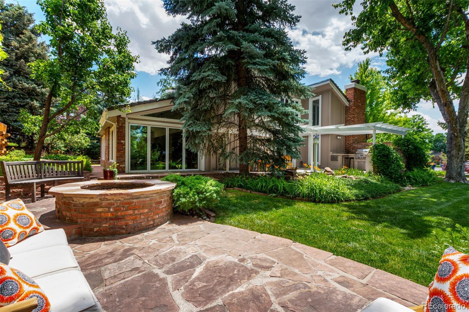 Presenting a rare opportunity to own a distinguished residence in coveted Willow Creek —available for the first time in 45 years. Located within the esteemed Cherry Creek school district, this home is ideally positioned at the end of a quiet cul-de-sac, adjacent to a walking trail that leads directly to the neighborhood elementary school. Residents enjoy access to multiple parks, swimming pools, and scenic trails, enhancing the community’s appeal. This four-bedroom, three-and-a-half-bathroom home has been thoughtfully updated and expanded to accommodate modern living. An addition to the back of the house has transformed the kitchen and main family living area into a spacious, open-concept environment, featuring Santos mahogany floors, vaulted ceilings, one of 3 fireplaces, and expansive windows that frame the backyard. The kitchen has been tastefully remodeled with premium finishes, offering both functionality and style that will impress even the most discerning chef. A four-panel NaNa Wall sliding door seamlessly connects the interior to a backyard oasis, complete with a lush lawn, built-in gas firepit, fully equipped outdoor kitchen, expansive deck for dining and entertaining, a water feature, and a flagstone patio ideal for enjoying Colorado’s serene summer evenings. The front yard has been landscaped to require minimal upkeep and includes a flagstone sitting area. All four bedrooms are located on the upper level, including a generously sized primary suite with a walk-in closet and the ensuite bath that offers a blank canvas for creating a truly luxurious retreat. The upstairs loft overlooks the formal living room and features a custom-built-in office, offering a refined and quiet workspace. The formal living room is carpeted and offers the 2nd of the home’s 3 fireplaces. The finished basement adds versatility with an additional living area, full bath, fireplace, storage room and a bonus room suitable for a home office, gym, or guest accommodations.