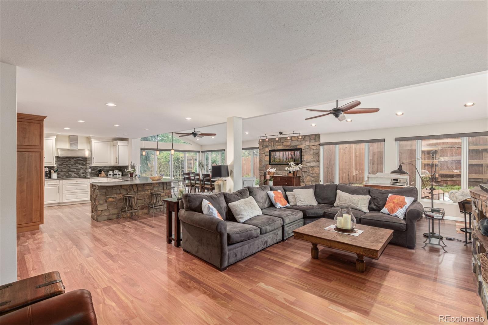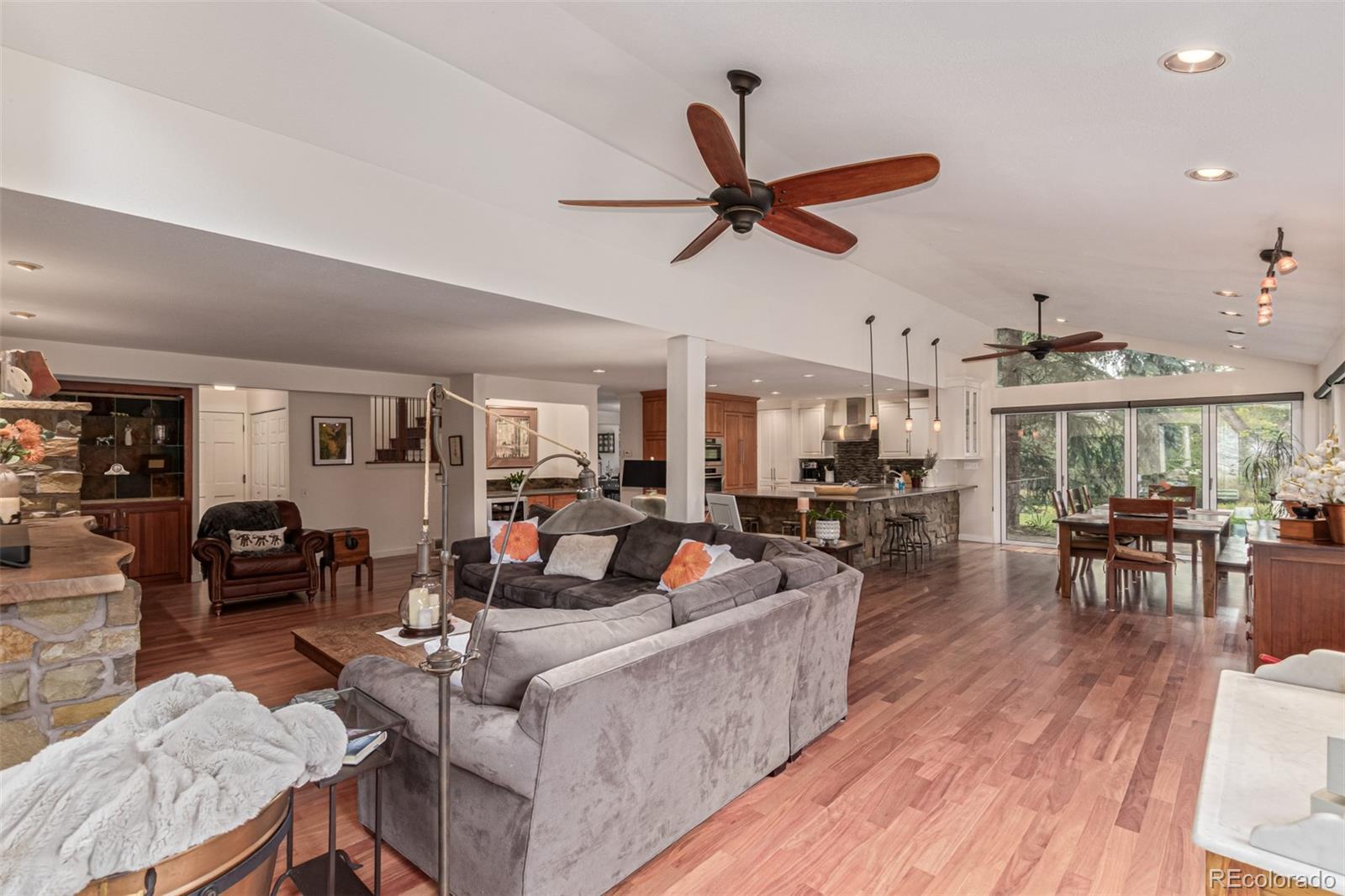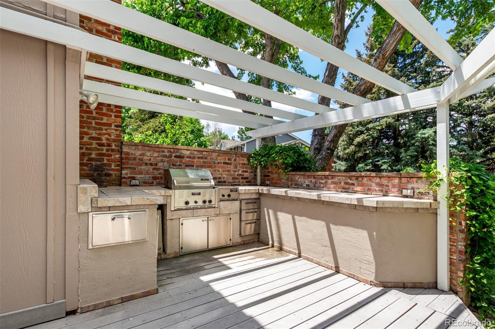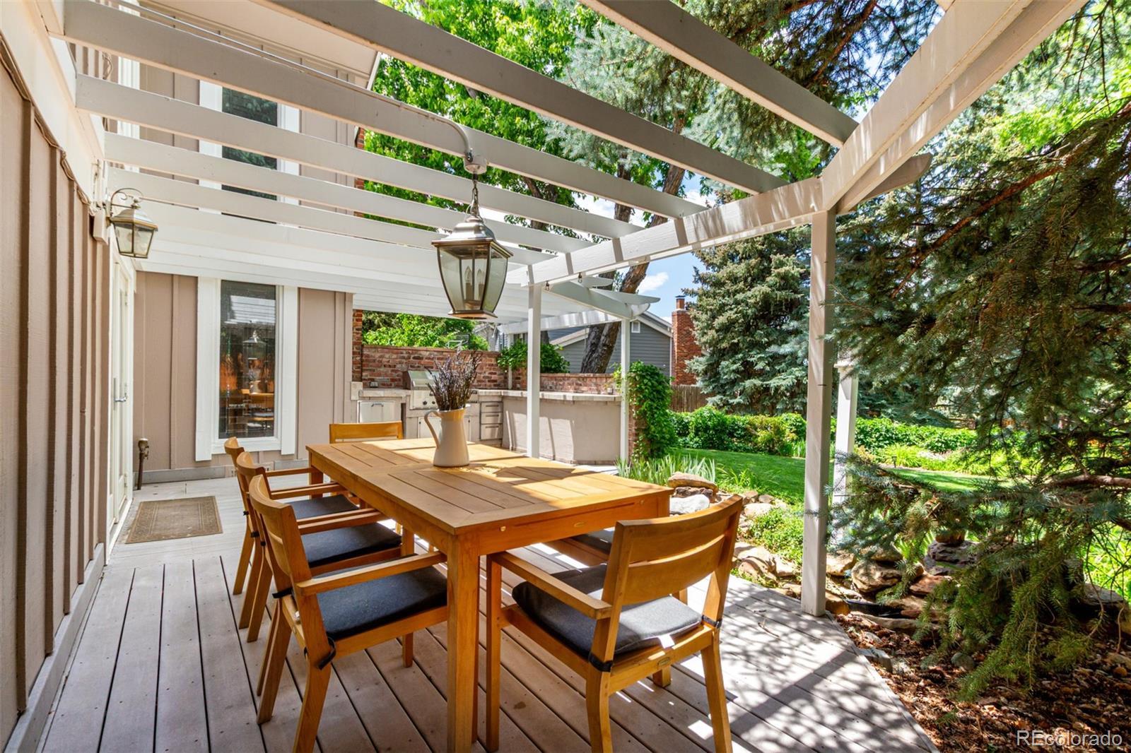 Presenting a rare opportunity to own a distinguished residence in coveted Willow Creek —available for the first time in 45 years. Located within the esteemed Cherry Creek school district, this home is ideally positioned at the end of a quiet cul-de-sac, adjacent to a walking trail that leads directly to the neighborhood elementary school. Residents enjoy access to multiple parks, swimming pools, and scenic trails, enhancing the community’s appeal. This four-bedroom, three-and-a-half-bathroom home has been thoughtfully updated and expanded to accommodate modern living. An addition to the back of the house has transformed the kitchen and main family living area into a spacious, open-concept environment, featuring Santos mahogany floors, vaulted ceilings, one of 3 fireplaces, and expansive windows that frame the backyard. The kitchen has been tastefully remodeled with premium finishes, offering both functionality and style that will impress even the most discerning chef. A four-panel NaNa Wall sliding door seamlessly connects the interior to a backyard oasis, complete with a lush lawn, built-in gas firepit, fully equipped outdoor kitchen, expansive deck for dining and entertaining, a water feature, and a flagstone patio ideal for enjoying Colorado’s serene summer evenings. The front yard has been landscaped to require minimal upkeep and includes a flagstone sitting area. All four bedrooms are located on the upper level, including a generously sized primary suite with a walk-in closet and the ensuite bath that offers a blank canvas for creating a truly luxurious retreat. The upstairs loft overlooks the formal living room and features a custom-built-in office, offering a refined and quiet workspace. The formal living room is carpeted and offers the 2nd of the home’s 3 fireplaces. The finished basement adds versatility with an additional living area, full bath, fireplace, storage room and a bonus room suitable for a home office, gym, or guest accommodations.