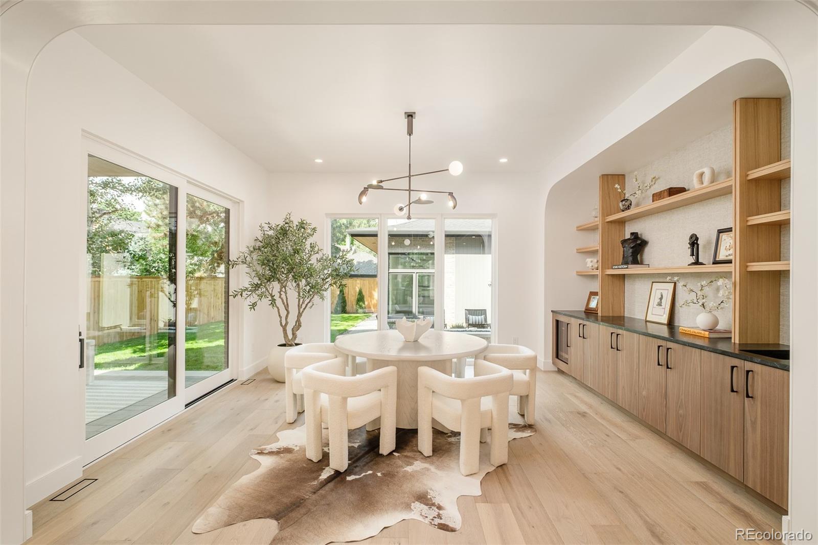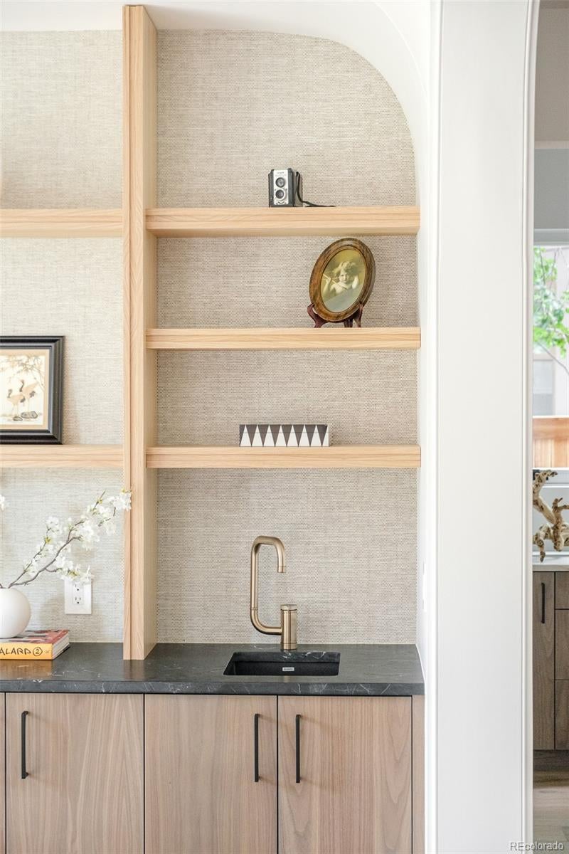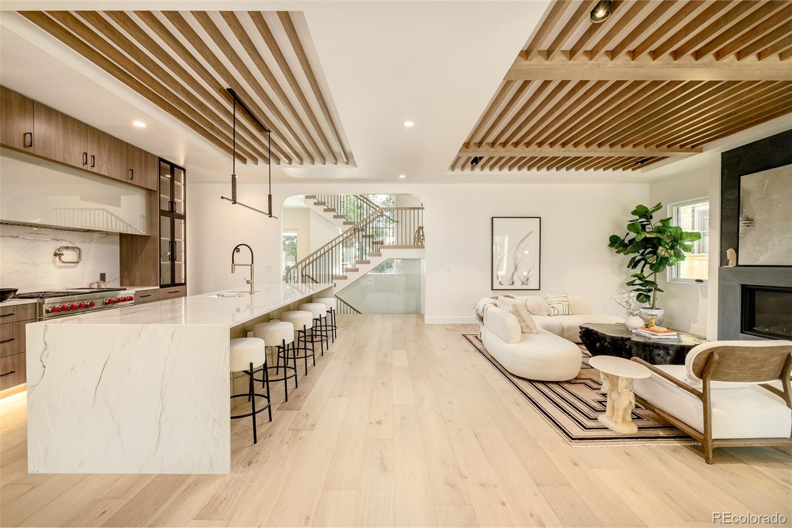 Modern architecture finds its expression just moments from Wash Park in this newly constructed 6-bedroom, 6-bathroom residence, built by Stone Cloud Design + Build— Wash Park's leading luxury home builder. Clean lines, thoughtful design, and warm finishes set the tone for a home that is both refined and livable. The main level unfolds with intentional flow—anchored by warm hardwood flooring, matte black detailing, and striking ceiling treatments. A sculptural kitchen showcases a Wolf 48” dual-fuel range, Sub-Zero refrigeration, and polished stone surfaces, seamlessly connected to a hidden prep kitchen and a sophisticated bar for elevated entertaining. The upper level is crowned by a tranquil primary suite featuring a limestone-finished fireplace, custom ceiling detailing, and a spa-like bath with dual vanities and curated tile work. Versatile secondary bedrooms offer space for guests, work, or play. The lower level extends the home’s purpose with a dedicated gym, guest quarters, and lounge-style living space. A covered patio invites moments of quiet or connection, framed by the ease and elegance of one of Denver’s most coveted neighborhoods. Every detail is crafted with intention—for a life rooted in design and simplicity.