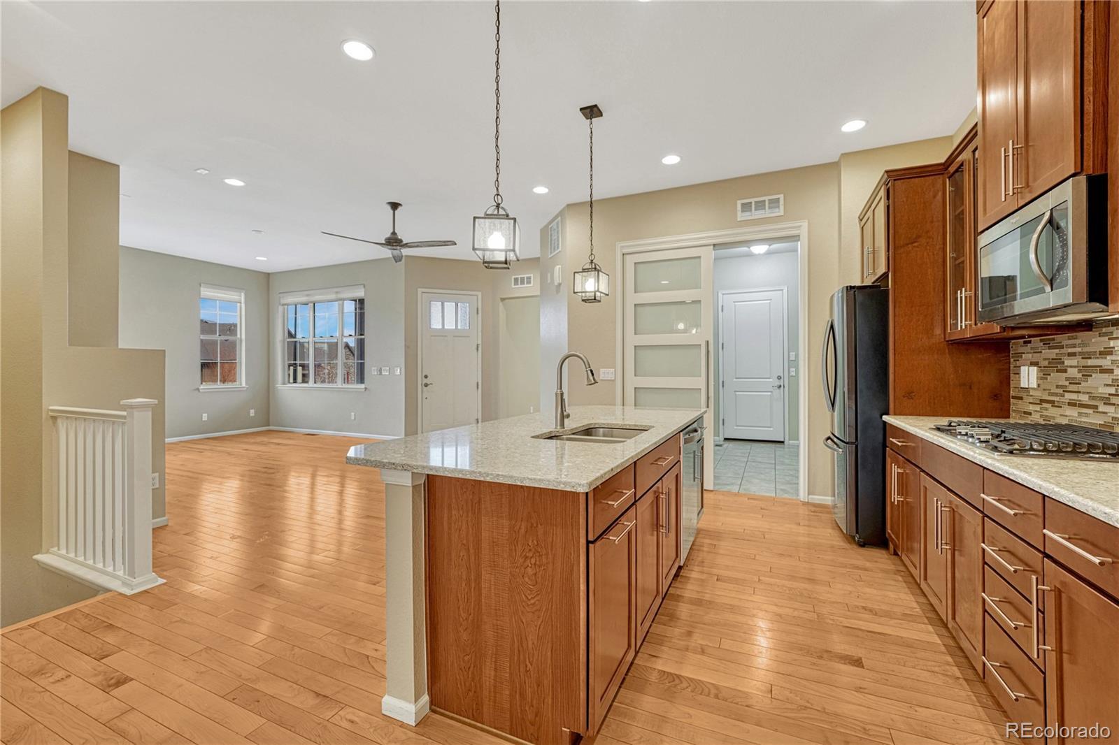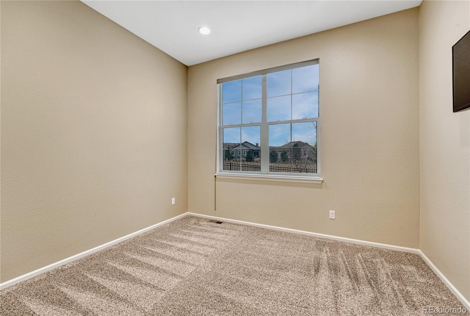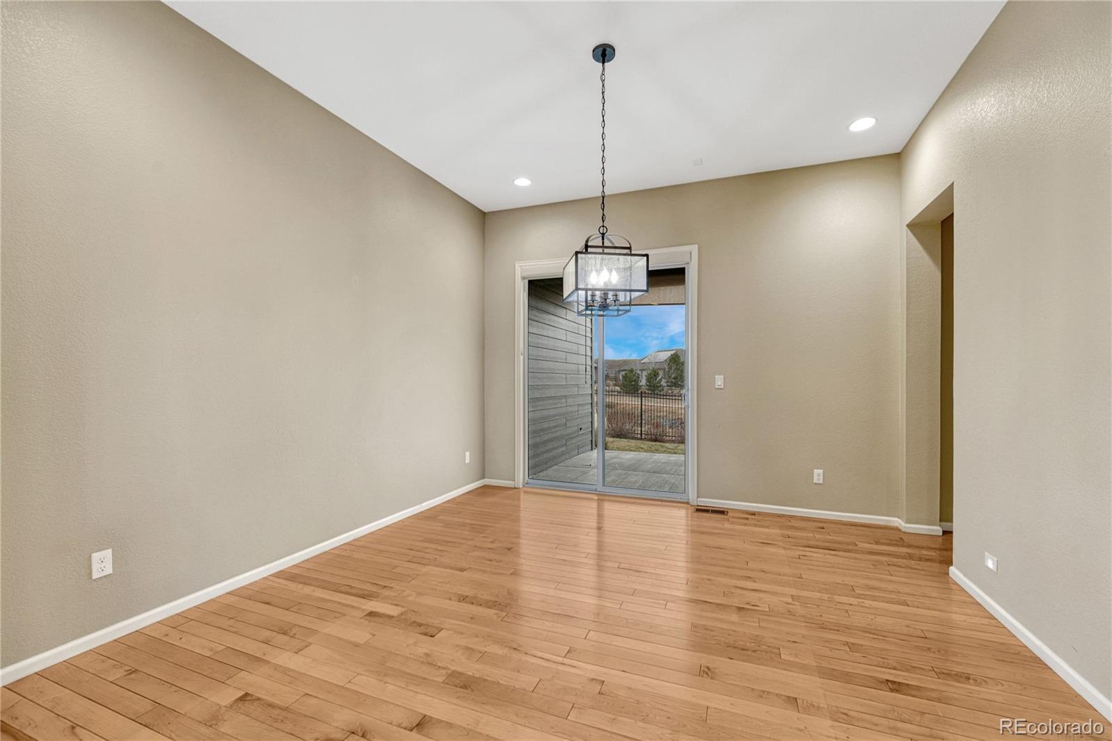PRICED TO SELL. BEST LOT AVAILABLE AT NEW HAVEN IN THE MEADOWS. Backs to open space, open floor plan, finished basement. Main level includes 2 bedrooms, 2 bathrooms, office, laundry room with utility sink, gas fireplace, stone surround, hardwood floors, 10' ceilings, covered front porch, & lots of natural lighting. Gourmet kitchen includes a double oven, 4 burner gas cooktop, stainless steel appliances, large island, slab granite countertops, room for stools, beautiful backsplash, and designer pendant lighting. Primary bedroom includes views of the open space, coffered ceiling, bathroom with a walk-in shower, closet w/built-in shelving, dual sink vanity, Corian countertops and tile floors. Fully finished basement has 9' ceilings, large great room, wet bar rough-in, bedroom, full bathroom, & finished/unfinished storage areas. All appliances at the property are included. Other items include private covered back patio w/views, sun shades, garage w/epoxy flooring, professionally landscaped yard, central A/C. HOA includes exterior maintenance & insurance, snow removal, yard maintenance/watering, trash/recycle, and more. This home has a no maintenance yard plus reduced homeowners insurance with an H06 policy. Located in The Meadows, this property is close to stores, restaurants, hiking/biking trails, parks with tennis & pickle ball courts, schools, I-25, DTC, and much more.