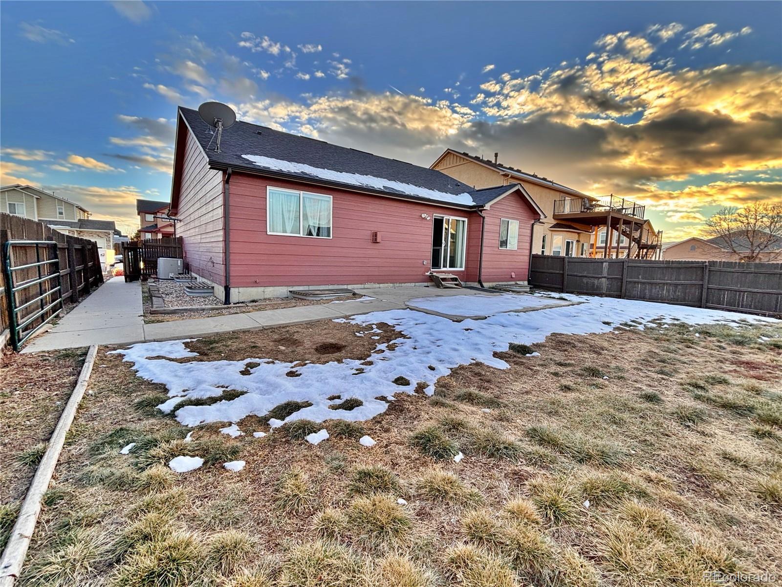 Welcome to this spacious 4-bed, 3-bath home located at the end of a quiet cul-de-sac in Fountain. With 2,630 finished square feet, the layout offers convenient main-level living with the primary bedroom and an additional bedroom on the same floor. The open living area features a cozy fireplace, and the finished basement expands your living space with a large family room, two oversized bedrooms, a full bath, and a wet bar that’s great for gatherings or extended living needs. Enjoy mountain views, an attached 2-car garage, central heating and cooling, and close access to nearby shops, restaurants, and everyday amenities. Located just minutes from major commuter routes and Fort Carson Gate 20, this home provides outstanding convenience. Some minor repairs are needed, offering an opportunity to add your own finishing touches. With no HOA and a flexible, well-designed floorplan, this home delivers space, comfort, and potential in a desirable Fountain neighborhood. A VA loan assumption may be available. Video Footage link: https://youtu.be/p4KNujABNdY