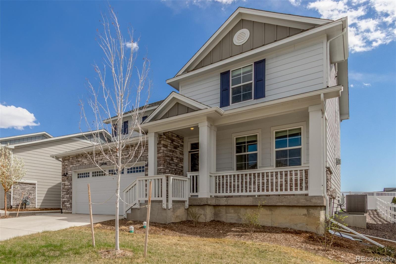 This beautiful, energy efficient, 4 bed, 2.5 bath residence in Murphy Creek with builder upgrades is the one for you! Featuring a stunning facade w/stone accents, front yard w/natural turf, a 2 car garage prewired for EV charger, and a welcoming front porch. Inside you will find an open living area w/a gas fireplace and luxury vinyl plank "wood-look" flooring. An office or flex room on the main floor. The gourmet kitchen is comprised of ample cabinetry w/granite counters, walk-in pantry, tile backsplash, SS appliances, and an island w/a breakfast bar. Electric range currently installed, gas line is present for those who prefer gas. The second floor primary bedroom boasts a walk-in closet and a private ensuite w/dual sinks. Second floor has 3 other bedrooms, a full bathroom, and separate laundry room. An unfinished basement with plumbing roughed in for you to add more living space. Mountain views from yard and partial views from inside. Great outdoor living space with over 750 sq ft patio in back yard.