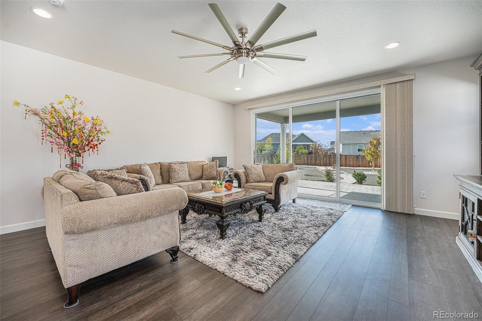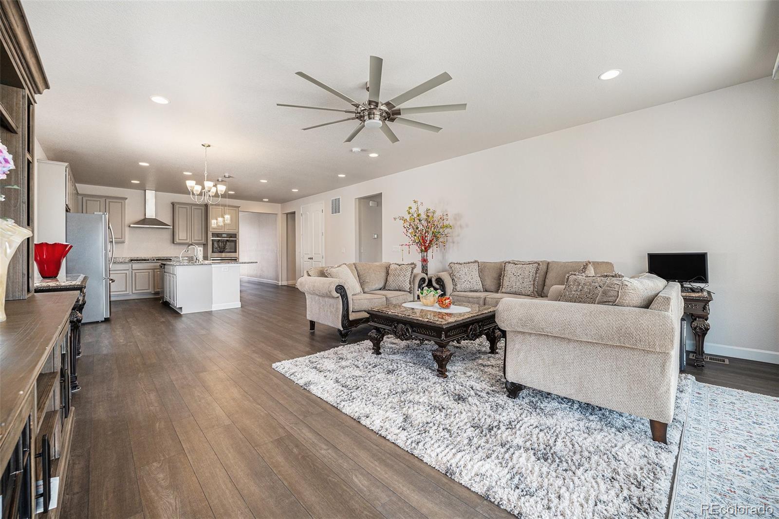 Stunning Ranch-Style Home in the Gated Gallery at Reunion Welcome to this beautifully designed ranch-style home, ideally situated in the exclusive, gated Gallery at Reunion—a highly desirable golf course community with access to the recreation center. This exceptional residence blends luxury, comfort, and thoughtful design throughout. Impressive curb appeal greets you with a striking stacked-stone façade, stamped concrete driveway, and an oversized three-car garage. Inside, an open-concept floor plan showcases wide-plank flooring, custom lighting, and refined designer finishes. Builder's Upgrade The chef’s kitchen is the centerpiece of the home, featuring granite countertops, light gray cabinetry, a stainless steel range hood, upgraded double ovens, a spacious walk-in pantry, and an expansive island—perfect for entertaining or everyday living. The living and dining areas flow seamlessly, creating an inviting space ideal for gatherings or relaxing evenings at home. The primary suite offers a peaceful retreat with a tray ceiling and recessed window. The spa-like en-suite bath includes dual vanities, a large walk-in shower, and a generous walk-in closet. Two additional bedrooms, a full bathroom, and a spacious laundry room complete the main level. Step outside to your private backyard oasis, complete with a covered patio, expansive stamped concrete entertaining area, and beautifully landscaped yard, fully enclosed with premium fencing for added privacy. The finished basement significantly expands the living space and features a large media or game room with plush carpeting, two additional bedrooms with egress windows, a ¾ bathroom, and ample flexibility to customize to your needs. Radon Mitigation System. Comparable Sale: 10976 Lewiston Street, Commerce City, CO 80022 — Sold for $840,000