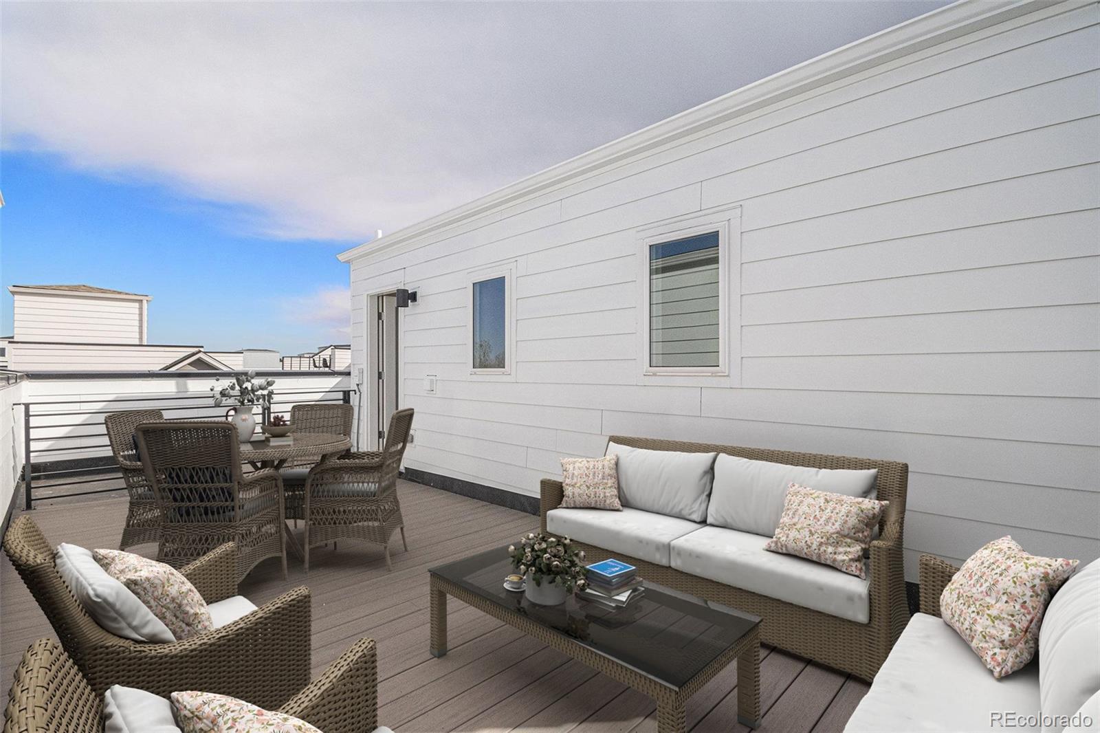Step into a brand-new, thoughtfully designed 3-bedroom, 3.5-bathroom home, complete with a stunning rooftop deck—your private oasis high above it all. The journey begins on the first level, where a welcoming front porch invites you in. Inside, you’ll find a cozy bedroom suite, a convenient coat closet, and a 1-car garage. On the elevated second level, the main living space is bathed in natural light, with an open-concept layout that makes it perfect for both relaxing and entertaining. Enjoy meals in the dining room, where a covered balcony extends your living space outdoors. The kitchen, with a pantry and gas stove, invites you to cook and gather around the breakfast bar, while the spacious living room, complete with a gas fireplace, is ideal for unwinding. A powder bath completes this level. The third floor is where you’ll retreat to rest, featuring two beautiful bedroom suites. The primary suite is a true sanctuary with a vaulted ceiling, dual sinks, and a picture window. The second bedroom suite offers a full bath and a walk-in closet. The laundry closet is also located on this level. The real showstopper is the rooftop deck—an intimate, expansive space with its own gas line, perfect for sunset dinners, stargazing, or just soaking in the surroundings. This home is situated on a landscaped courtyard, steps from walking trails, offering tranquil outdoor living and easy access to nature. Prelude at TAVA Waters, a gated community by local builder Koelbel Communities, offers a private lake, scenic trails, mature trees, and a resort-style amenity center with a pool, hot tub, and state-of-the-art gym. Adjacent to the Highline Canal, it's just minutes from Lowry, Cherry Creek North, Anschutz, downtown, DTC, and DIA. Mortgage Rate Buy Down Incentives are available for this home. Ask Natalie about how we can help you lower your monthly payments. https://my.matterport.com/show/?m=5f7UW2pQE9E