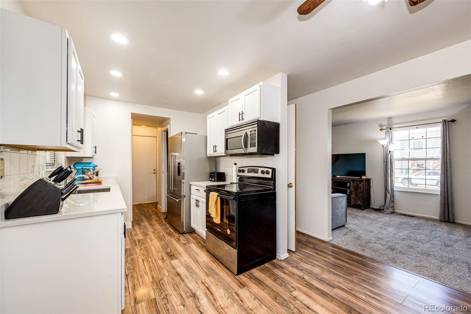 Where do we begin with the upgrades? The kitchen features bright white cabinetry with modern black hardware, complemented by quartz countertops and recessed lighting for clean, even illumination. Stainless steel and black appliances—including a microwave, electric range/oven, and matching dishwasher—add to the contemporary feel. An open pantry shelf provides convenient, functional storage. The living room offers abundant natural light and a warm, inviting design that accommodates plenty of seating. A striking fireplace serves as a focal point, making the space perfect for relaxed, comfortable living. Neutral tones throughout create a fresh and airy atmosphere. The main level also includes a guest-friendly powder room. The primary bedroom features a generous walk-in closet. The upper level offers neutral-toned carpet and paint, creating a calm and cohesive feel. The main bathroom is spacious and nicely updated. The recently updated basement features an open-concept layout, an electric fireplace, and a newly added bathroom—ideal for additional living space or entertainment. The laundry area is spacious enough to accommodate the included side-by-side washer and dryer. We should also highlight the recently installed central AC, upgraded furnace, two-year-old roof and new garage door— The extent of improvements is truly substantial. The generous backyard offers a large, covered porch and ample room for entertaining, gardening, or creating your ideal outdoor retreat—your canvas to customize! This home also has an assumable FHA loan with a current rate of 3.25%! Located in a quiet cul-de-sac that connects directly to an open-space, nature-filled trail, this home offers easy access for walking or biking to Quincy Reservoir. Just a short drive to multiple shopping centers and restaurants, this location truly has it all!