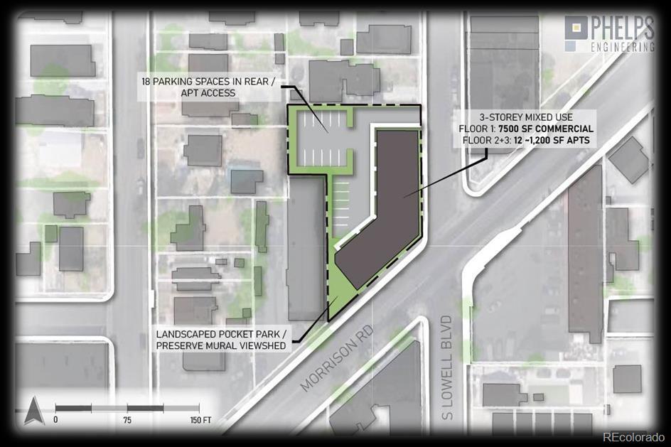 3601 Morrison Road presents a unique and high-performing mixed-use investment opportunity in one of Denver’s most rapidly evolving neighborhoods. Ideally located just off Morrison Road in the heart of the Westwood community, this property offers excellent visibility, reliable cash flow, and a diverse mix of income-generating spaces, along with substantial redevelopment potential. The property includes multiple components: Retail frontage along Morrison Road is complemented by a garage at the rear of the main commercial structure, with an expansive parking and storage area of approximately 3,000 square feet situated behind the building. Above the commercial space are two residential units—Apartments A & B—each with practical layouts designed to accommodate long-term tenants. Additionally, the parcel includes two identical 1- bedroom, 1-bathroom single-family homes at 369 and 371 S Lowell Blvd, offering additional rental income and flexible options for future development. Together, these elements make 3601 Morrison Road a rare opportunity to secure a mixed-use asset with strong current returns and ample upside.