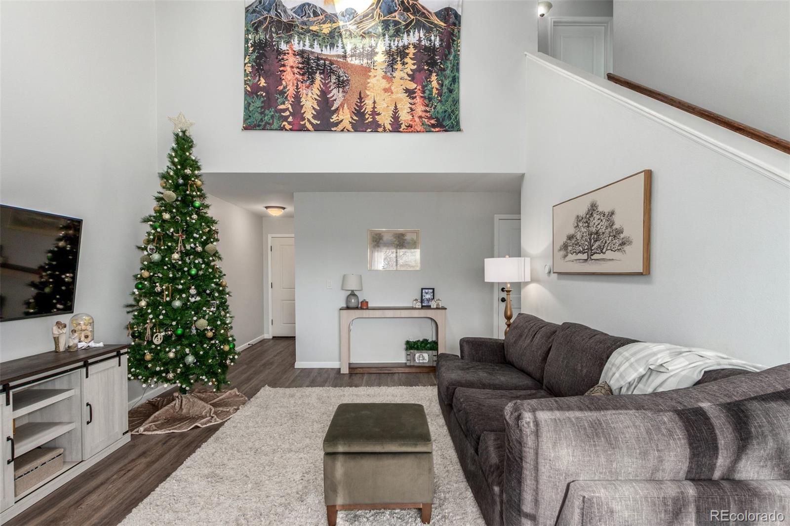 Welcome to th is beautifully updated and move-in ready townhome in one of Thornton's most desirable and conveniently located communities. This light-filled home blends comfort, style, and everyday convenience from the moment you step inside. The main level features durable LVP flooring, vaulted ceilings, and a cozy gas fireplace in the great room, perfect for relaxing evenings or hosting friends. Skylights in both the great room & primary bathroom fill the home with natural light, creating an airy, inviting atmosphere throughout. The kitchen has been thoughtfully updated with quartz countertops, stainless steel appliances, a gas range w/hood, and a microwave. Enjoy the large primary bedroom with its own vaulted ceiling, oversized layout, and plenty of room for a king-size bed & additional furniture. The finished basement offers even more flexible living space ideal for a home office, gym, or media room. Major upgrades add incredible value and peace of mind, including brand-new Pella windows installed in 2025 (dual-pane, low-E w/solar-reflective coating), HOA-approved new siding replacement, HOA-approved roof repairs, a newer 2022 water heater and LED lights in garage. The access road was refinished in 2025 as well, ensuring the neighborhood feels fresh and well-maintained. Another standout feature is the private, fenced-in yard with its own access gate leading directly to the Eastlake Heritage Trail, connecting you to a neighborhood playground, Eastlake Reservoir #3, and the popular Trail Winds Rec Center all just steps from your back door. You’ll also love the unbeatable proximity to everyday essentials & popular amenities: King Soopers, Costco, Denver Premium Outlets, restaurants, and Thornton’s entertainment hotspots like Top Golf, Main Event, and Chicken ’N Pickle. If you’ve been looking for an affordable, updated, and well-located townhome in Thornton, this one checks every box. Don’t miss your chance to make this your next home!