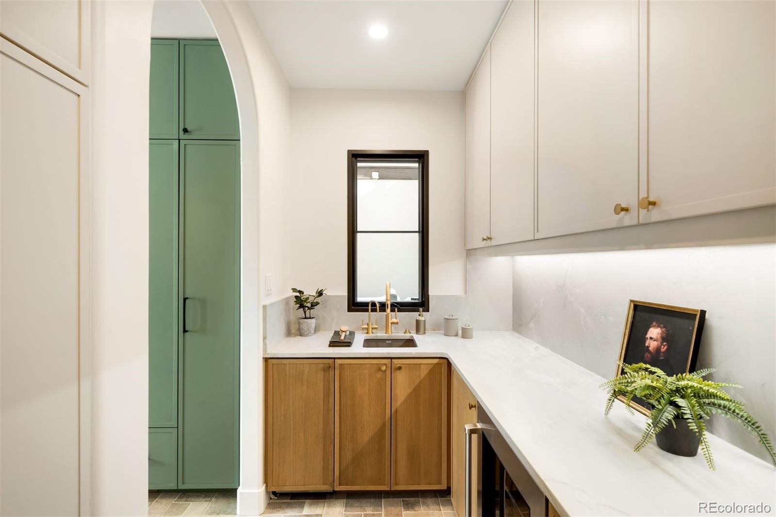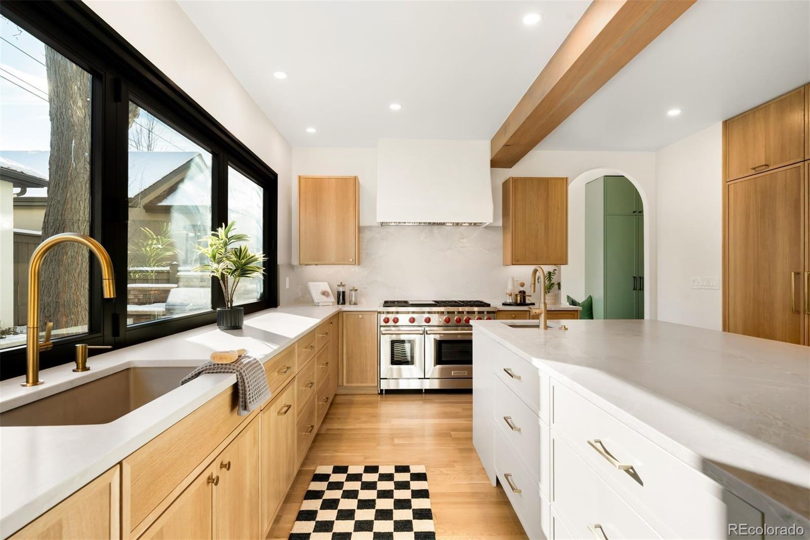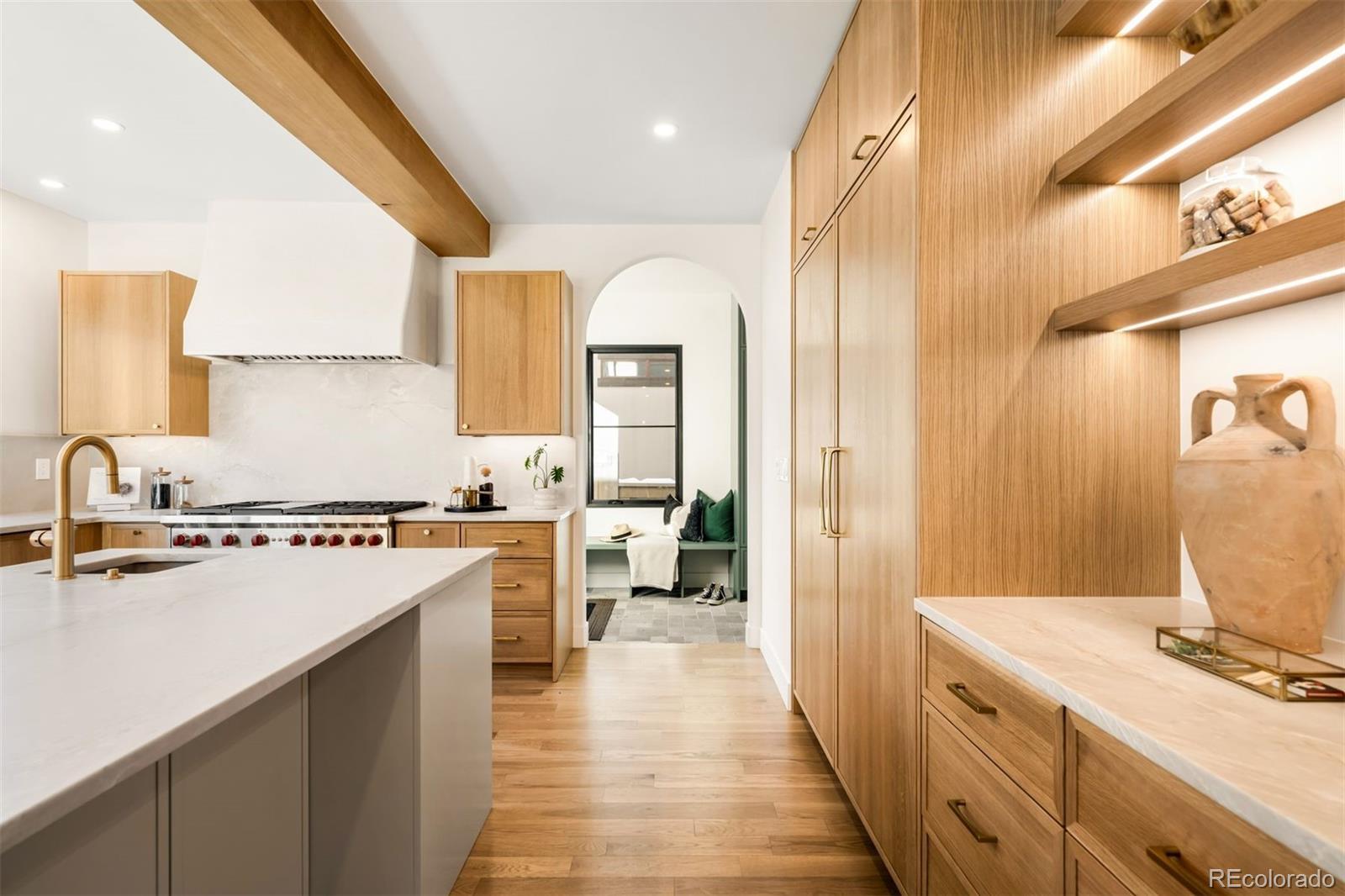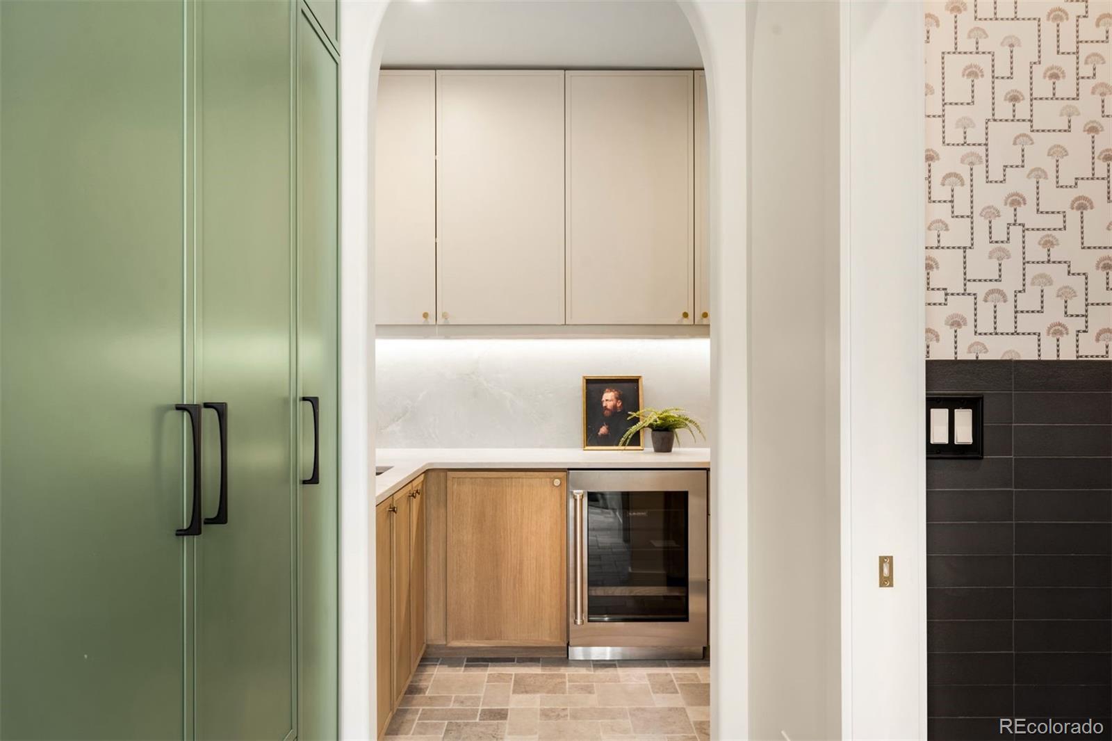 Light and mood define this west-facing Cory Merrill residence, fully reimagined in 2025 through a designer-led renovation with the intention of being a forever home. Set on a tree-lined street, it balances classic Denver charm with nearly $1M in high-impact updates, including brand new major mechanicals. White oak hardwood floors now run throughout the main and upper levels, replacing all carpet, and all bathrooms feature new fixtures. A formal dining room and private office open through French doors to outdoor spaces, creating seamless indoor-outdoor flow. The main floor was fully renovated with a stylish powder bath, a mudroom with radiant heated floors, and a butler’s kitchen featuring reverse osmosis water system, built-in ice machine, prep sink, beverage fridge, and 5-in-1 oven. A moody media room leads to the main living area, where arched windows, gas fireplace, and winding staircase add architectural presence. The new kitchen anchors daily living: a large eat-in island faces accordion-style windows to the backyard, with Sub-Zero refrigeration, Wolf double oven range, custom plaster hood, quartzite countertops and backsplash, and generous storage. The primary suite is a private retreat with gas fireplace, French doors to a secluded deck, renovated bath with dual vanities, soaking tub, steam shower, radiant heated floors, and custom walk-in closet. Three additional bedrooms complete a rare four-bed-up layout, including one en suite and two sharing a dual-vanity bath, plus a convenient laundry. The lower level expands livability with new carpet, a refreshed wet bar, two bedrooms-plus oversized gym-a full bath, and ample storage. Outdoors, fully fenced front and back yards feature tiered landscaping, stamped concrete, built-in gas fire pit, grill area, water feature, and seating, perfect for entertaining. Thoughtfully designed for comfort, function, and enduring style, this home was only left by its owners due to a job relocation.