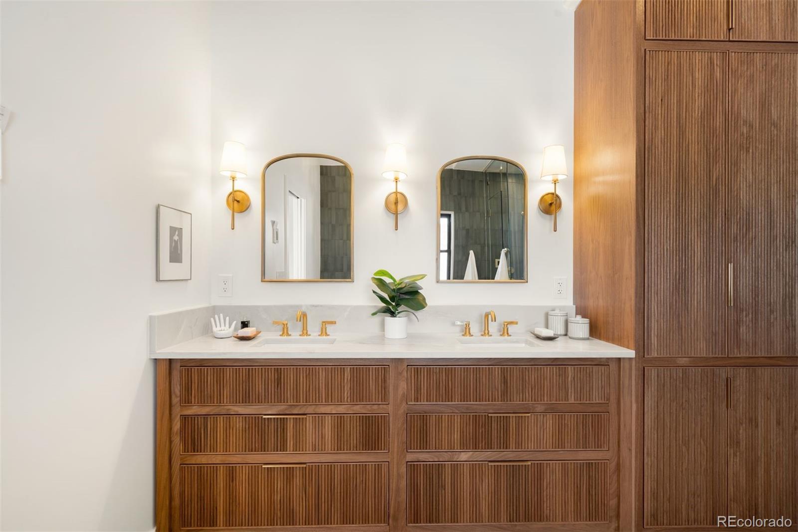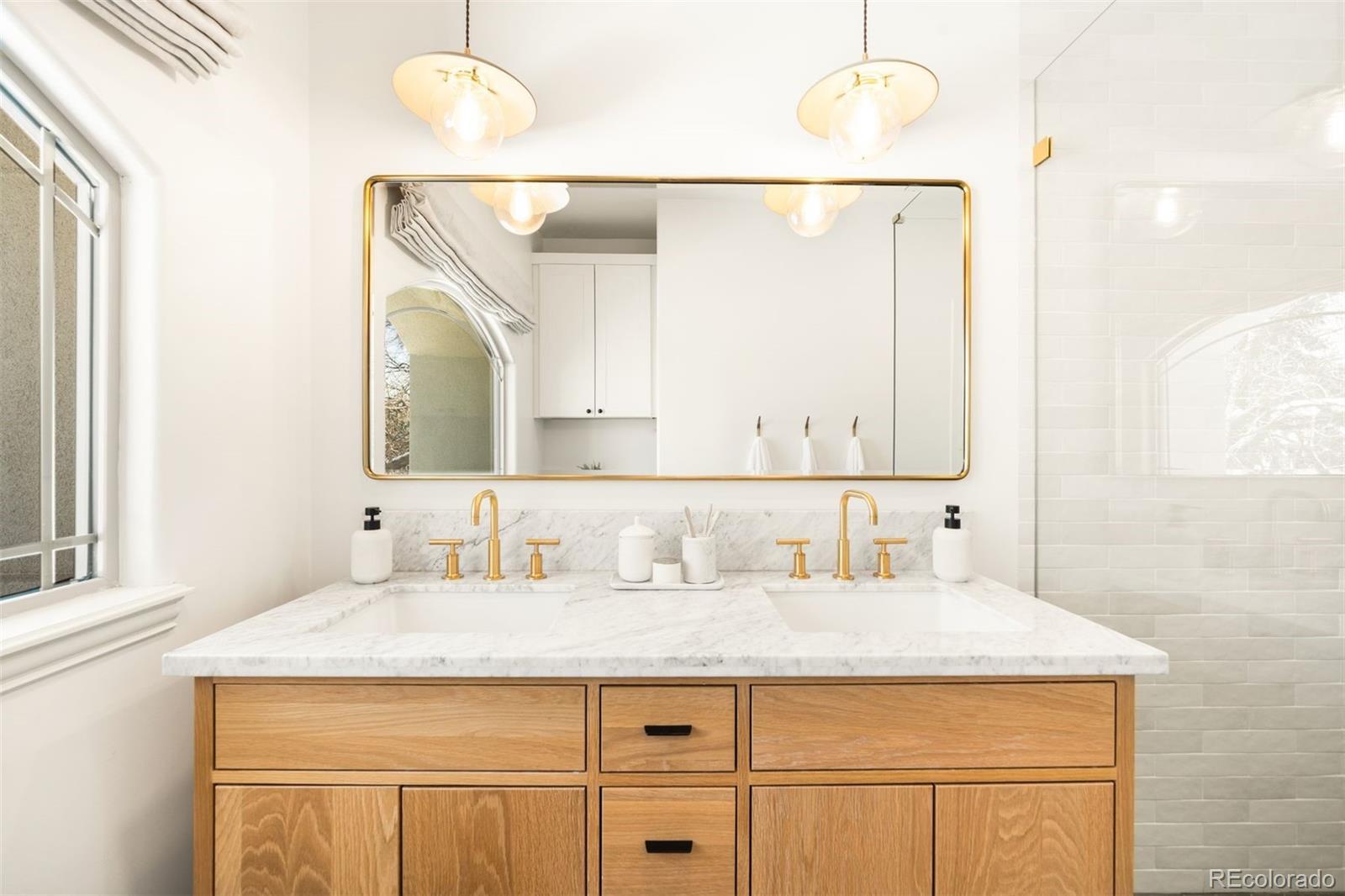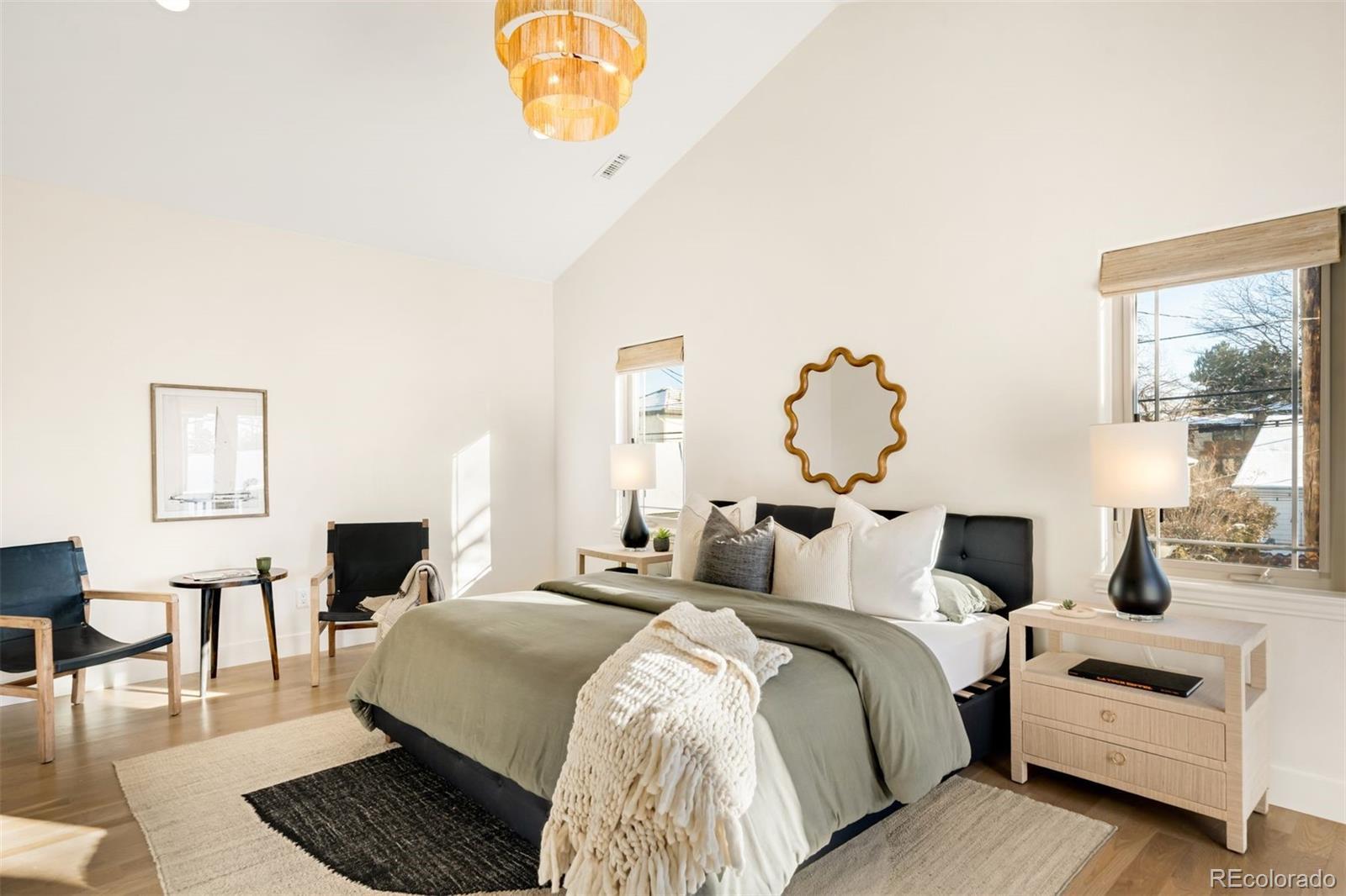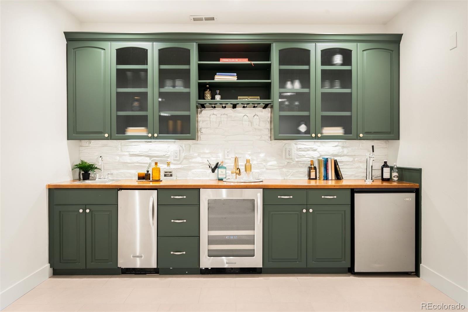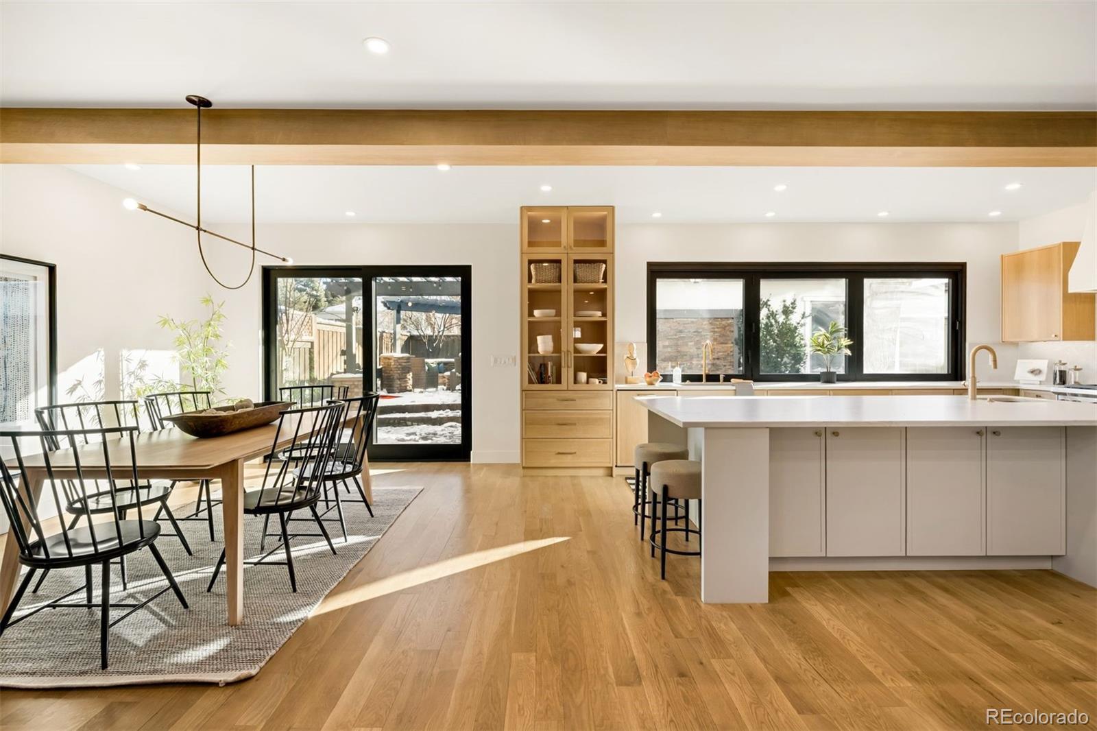 Light and mood define this west-facing Cory Merrill residence, fully reimagined in 2025 through a designer-led renovation with the intention of being a forever home. Set on a tree-lined street, it balances classic Denver charm with nearly $1M in high-impact updates, including brand new major mechanicals. White oak hardwood floors now run throughout the main and upper levels, replacing all carpet, and all bathrooms feature new fixtures. A formal dining room and private office open through French doors to outdoor spaces, creating seamless indoor-outdoor flow. The main floor was fully renovated with a stylish powder bath, a mudroom with radiant heated floors, and a butler’s kitchen featuring reverse osmosis water system, built-in ice machine, prep sink, beverage fridge, and 5-in-1 oven. A moody media room leads to the main living area, where arched windows, gas fireplace, and winding staircase add architectural presence. The new kitchen anchors daily living: a large eat-in island faces accordion-style windows to the backyard, with Sub-Zero refrigeration, Wolf double oven range, custom plaster hood, quartzite countertops and backsplash, and generous storage. The primary suite is a private retreat with gas fireplace, French doors to a secluded deck, renovated bath with dual vanities, soaking tub, steam shower, radiant heated floors, and custom walk-in closet. Three additional bedrooms complete a rare four-bed-up layout, including one en suite and two sharing a dual-vanity bath, plus a convenient laundry. The lower level expands livability with new carpet, a refreshed wet bar, two bedrooms-plus oversized gym-a full bath, and ample storage. Outdoors, fully fenced front and back yards feature tiered landscaping, stamped concrete, built-in gas fire pit, grill area, water feature, and seating, perfect for entertaining. Thoughtfully designed for comfort, function, and enduring style, this home was only left by its owners due to a job relocation.