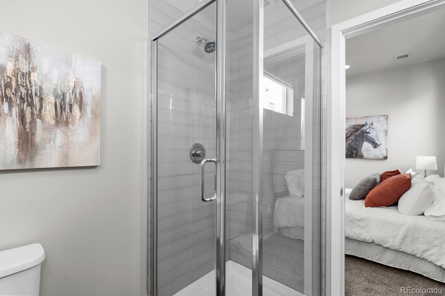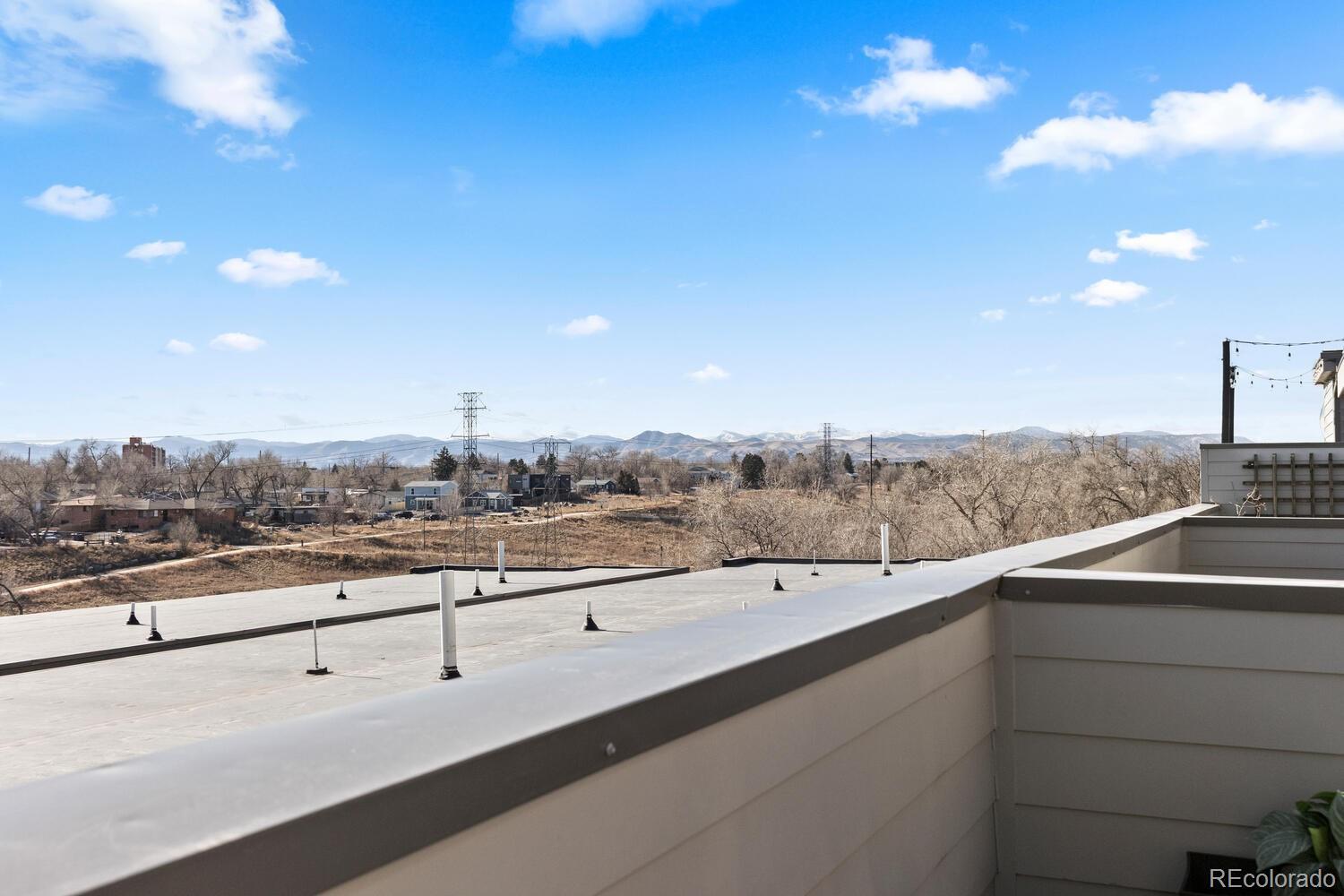 HUGE PRICE DROP = INSTANT EQUITY- Appraised @ $625K. Modern End-Unit Townhome w/ HUGE Rooftop Deck & Unobstructed Mountain & City Views, Designer Finishes, & 1-car attached garage near Sloans Lake. Refined, multi-level living in an exceptional location- low-traffic cul-de-sac just 1/2 block from Dry Gulch Trail & light rail. Attached garage provides space for exercise equipment, etc, & addl standing-height storage space for gear & essentials. Ground floor entry provides garage access as well as a convenient 1/2 bath. Main living floor dazzles w/ a dramatic great room featuring a wall of windows flooding the space w/ natural light, 9’ ceilings, & sleek gas fireplace. Faux wood LVP flooring & troweled wall texture create a seamless, contemporary backdrop, while top-down/bottom-up tension shades ($2,860 upgrade) diffuse sunlight for the perfect ambiance any time of day. A versatile nook provides flexible space for dining or work-from-home lifestyle, enhanced by sleek recessed lighting and striking modern metal stair railing. Gourmet kitchen w/ European flat-door cabinets, floating shelving, classic subway tile backsplash, quartz countertops, large eat-in peninsula, & KitchenAid stainless-steel appliance suite, includes: 5-burner gas range w/ warming zone & warming drawer; vented hood; and large, single-basin undermount sink all beautifully illuminated by two elevated windows. Upstairs, the primary bedroom, complete w/ ensuite bath boasts large, glass-enclosed shower, modern floating vanity, solid surface countertops, & undermount sink. Spacious 2nd bedroom includes its own ensuite for flexible living options. Full-sized in-unit laundry (W/D included). Private rooftop deck, w/panoramic mountain & city views. Upgraded, lockable privacy fence & gated alley entrance. Addl highlights: Quiet, end-unit location for max privacy; Upgraded window blinds throughout; Rare proximity to trails, parks, & light rail; Easy access to major Denver attractions, shops, restaurants, & more.