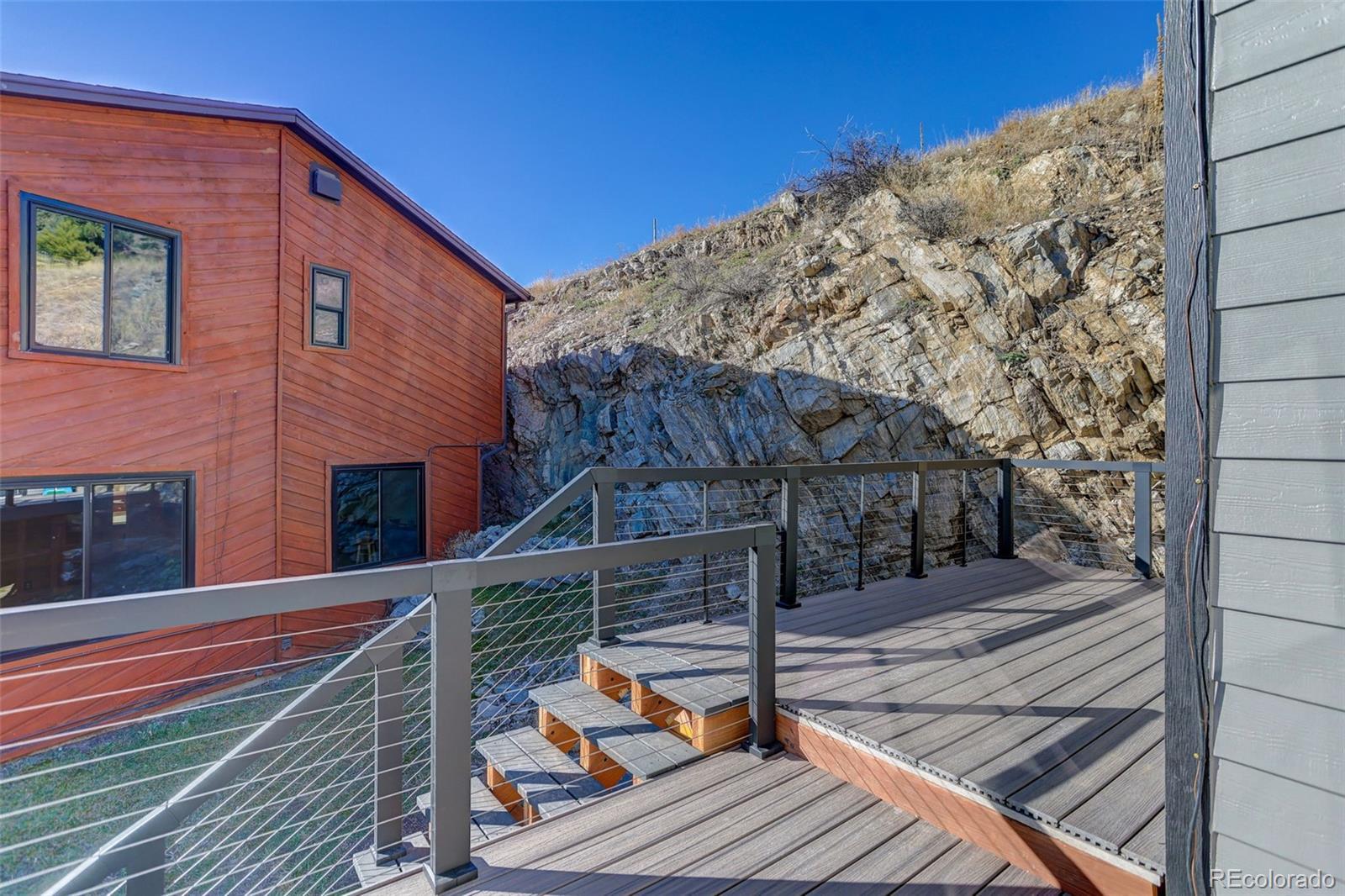 Beautifully updated and thoughtfully designed, this mountain contemporary home in the heart of North Evergreen offers the perfect blend of style, function, and location. Highlights include travertine tile throughout, artistic live-edge finishes, built in appliances and thoughtful amenities, adding timeless warmth and sophistication. The chef-inspired kitchen is a centerpiece, featuring concrete countertops, soft-close drawers, and a custom dog feeding and storage station. The spacious dining room offers plenty of room for large gatherings and features a folding glass door that leads to a beautiful composite deck with stylish wire railings. The great room is anchored by a modern electric fireplace set against a brick accent wall, complemented by natural light and views of the valley. A tranquil primary suite offers a peaceful retreat, providing plenty of rest and rejuvenation. Fitness enthusiasts will appreciate the dedicated home gym with professional flooring, wall mirrors, and space for fitness or dance. The sleek basement office with acoustic panels and wood detailing is perfectly suited for remote work, podcasting, or creative pursuits. The oversized two-car garage provides ample space for vehicles, equipment, and adventure-ready storage and new James Hardie siding enhances curb appeal with durability and modern design. Outdoor living is equally impressive, with a private turf dog run, a custom henhouse and a shed for tools, gear and mountain toys. Close to shopping, dining, hiking, golf, downtown Evergreen, and Evergreen Lake. Just minutes to I-70, providing an easy commute to Denver or world-class ski resorts.