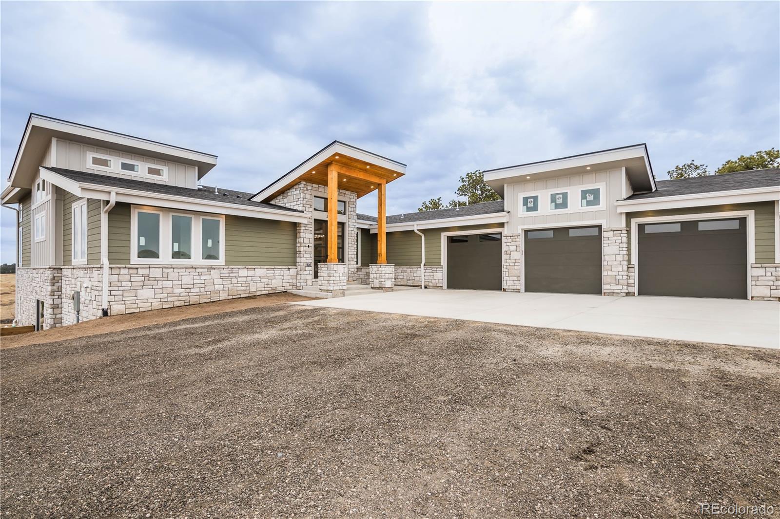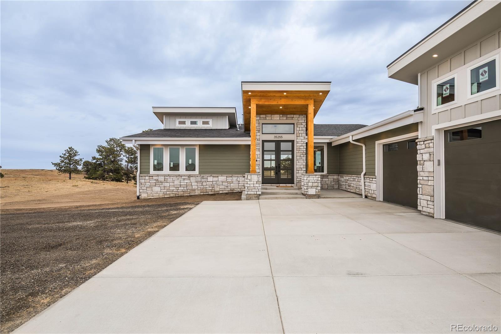 Welcome to a brand new Colorado retreat where wide-open land, quiet surroundings, and modern design come together in perfect harmony. Perfectly positioned on 35 acres of rolling plains and whispering pines, this stunning estate offers panoramic mountain views and the peace and privacy you've been craving, all just a short drive to downtown Kiowa, the elementary school, and not much further to Elizabeth and Super Walmart. Step inside and be greeted by soaring ceilings, sunlit rooms, and a thoughtfully designed open floor plan that’s built for both everyday comfort and unforgettable entertaining. The great room, anchored by a cozy fireplace, flows seamlessly into a chef-inspired kitchen boasting a 60" side-by-side fridge/freezer, a generous island, and picturesque views through numerous large windows that overlook the mature trees and expansive open space, all opening to a large deck perfect for hosting gatherings and enjoying Colorado’s wide-open skies. The luxurious primary suite is a private sanctuary, complete with a beautiful bedroom fireplace, a spa-like bath, freestanding tub, and his-and-hers walk-in closets. Need a quiet workspace or a private guest retreat? The main-level office or optional bedroom with en-suite bath delivers flexibility with style. Downstairs, the finished walkout basement features 10-foot ceilings, a large family room with a bar area, three spacious bedrooms, and space for your dream movie room, gym, or both—plus direct access to a concrete patio that adds even more outdoor entertaining space or a quiet sitting area. With high-end finishes, a smart layout, and nature just outside your windows, this home is where modern luxury meets Colorado serenity. Ease and convenience with all the perks of living on land—your future starts here!