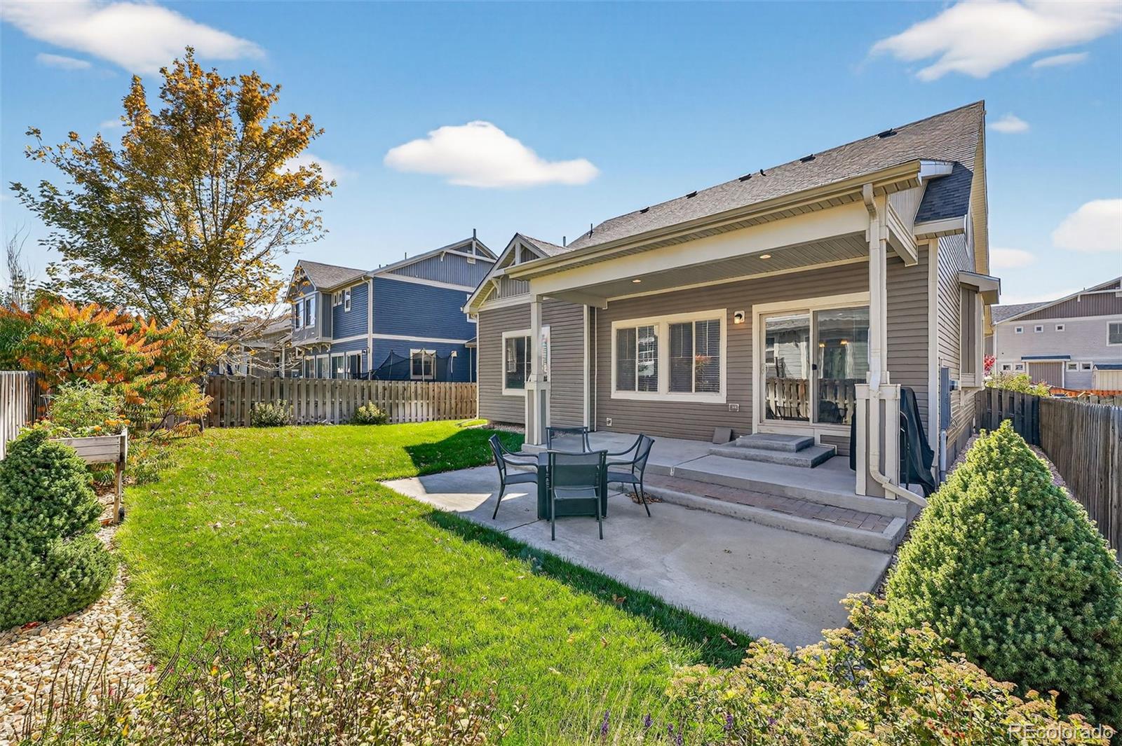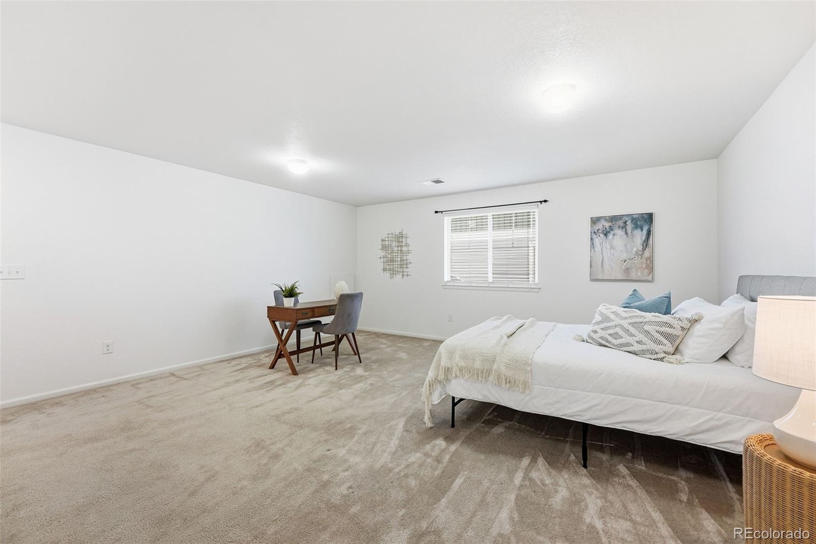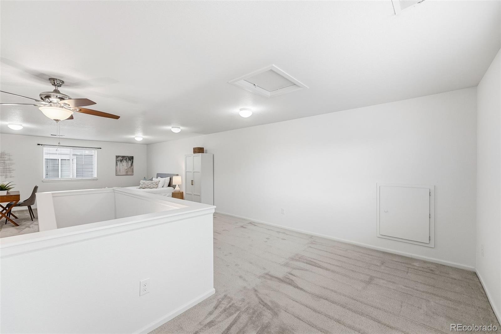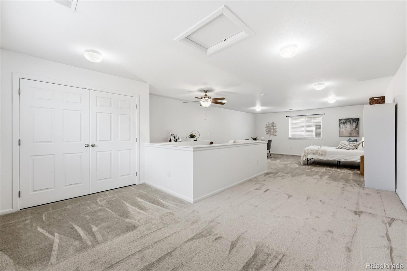 Welcome to this beautifully upgraded home offering thoughtful design, flexible living spaces, and a 3-car garage with an extended bay, allowing for the full use of all three parking spots. Step inside to a spacious main living area featuring real hardwood floors, an open floor plan perfect for entertaining, and a stunning kitchen with upgraded granite countertops, a large pantry, and modern finishes throughout. The expansive primary suite offers a peaceful retreat with an en-suite bathroom showcasing dual vanities with upgraded countertops, a large walk-in shower with upgraded tile, and a generous walk-in closet. A spacious secondary bedroom and full bathroom provide comfort for guests or family. The dedicated main level laundry room includes extra storage for added convenience.**** Upstairs, the versatile loft offers endless possibilities: easily transformed into a large additional bedroom with space to add a bathroom, or used as a second living room, playroom, or home office to fit your lifestyle.**** The unfinished basement provides even more opportunity to expand your living space, featuring a 9-foot ceiling, an egress window ideal for a future bedroom, and rough-ins for a future bathroom—ready for your personal design and finishing touches.**** Enjoy Colorado evenings in the private backyard with a covered patio complete with lighting, a well-maintained lawn, and a sprinkler system for easy upkeep.****