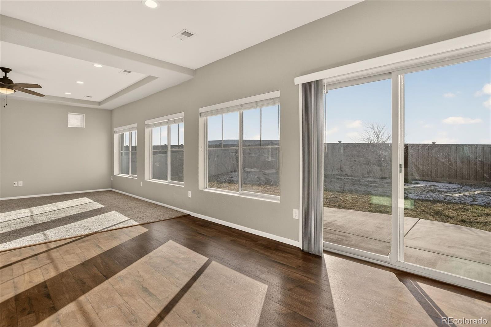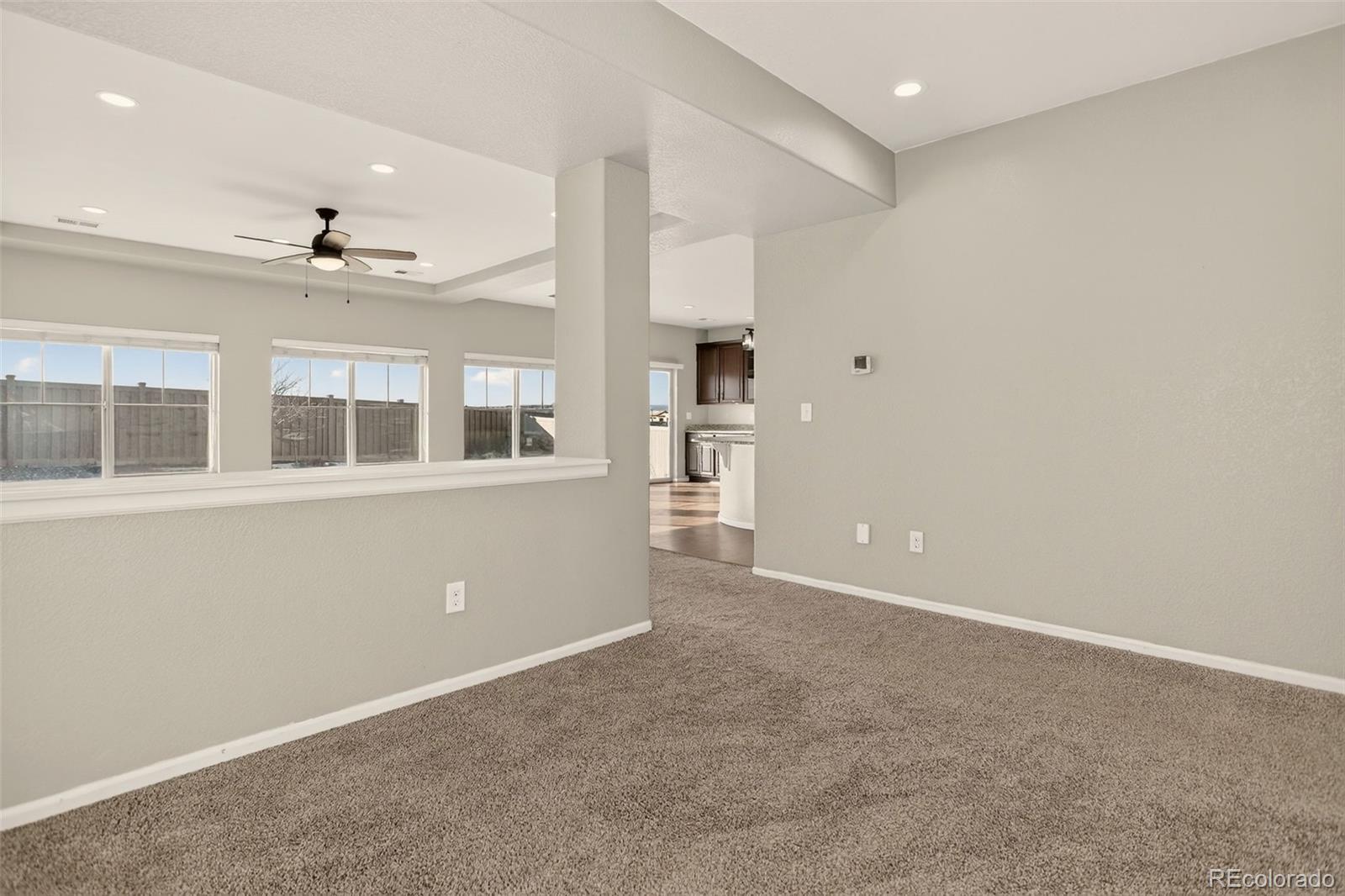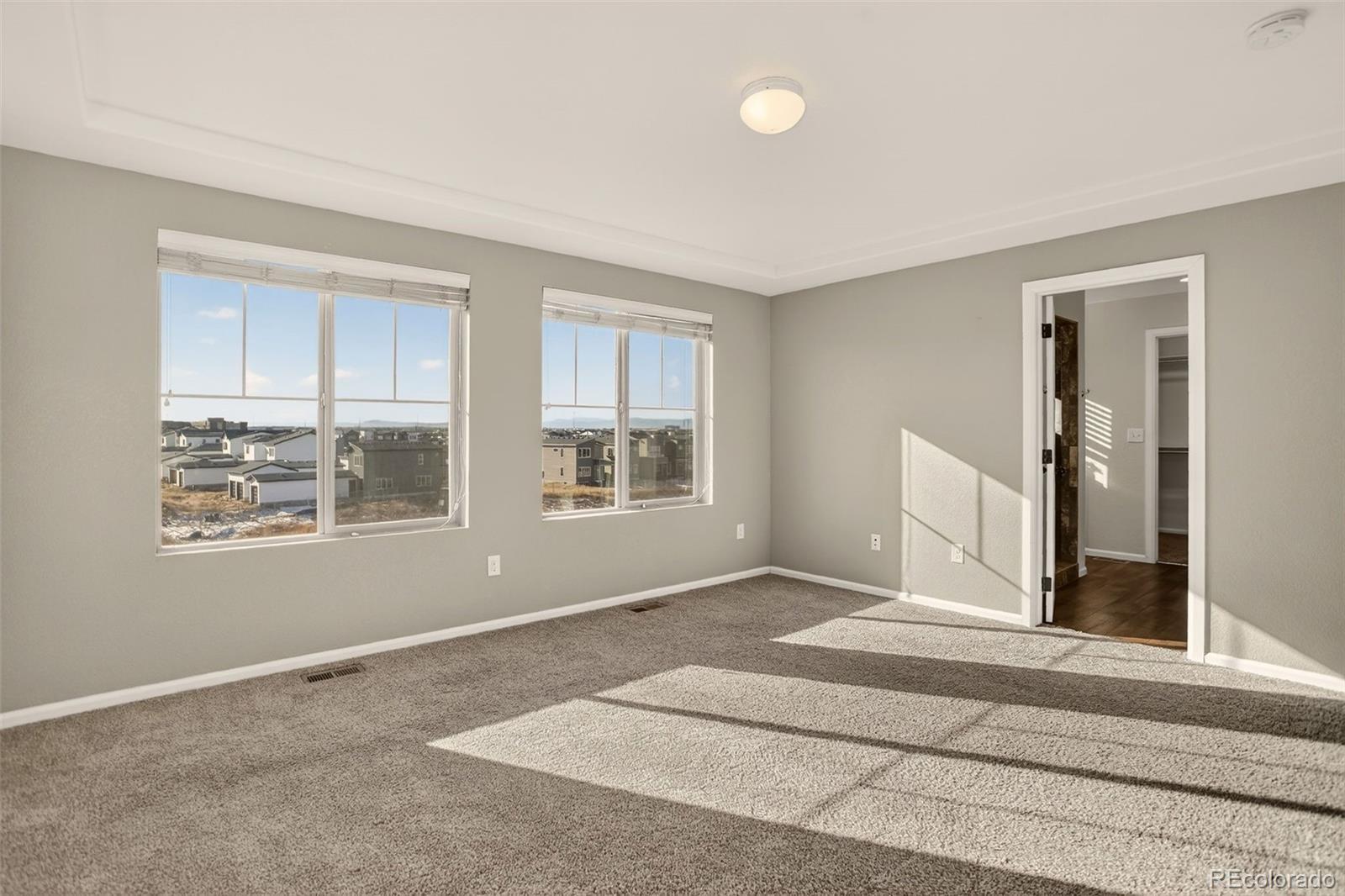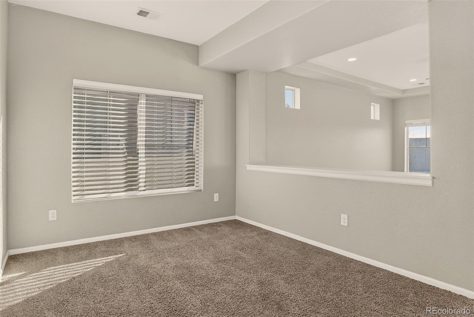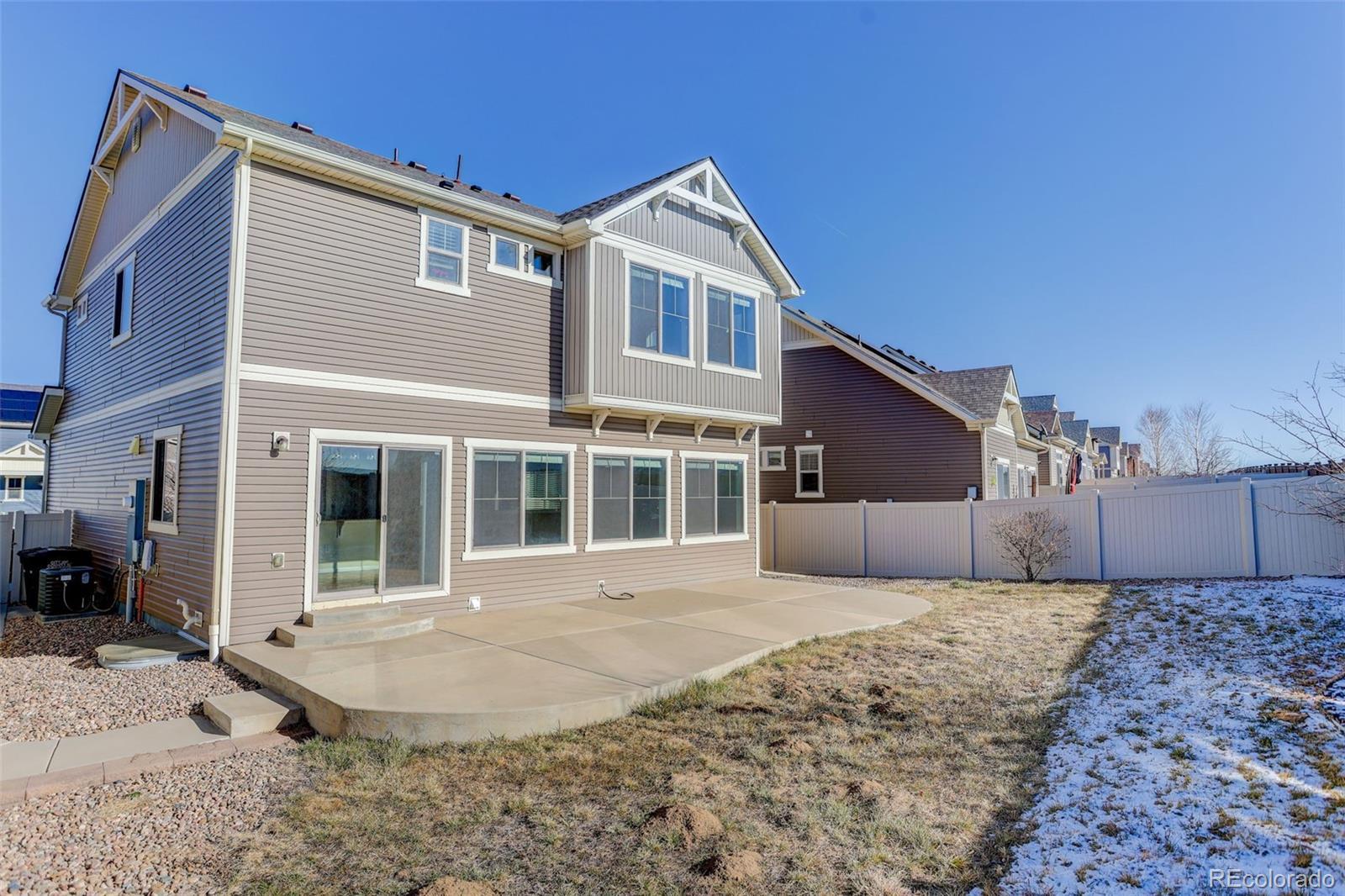 Gorgeous mountain views and private backyard. This home backs up to the High line Canal, a historical site and walking trail where you know your view will be here to stay. Come check out this large 3 bed 3 1/2 bath home with a finished basement. Granite countertops in kitchen and all bathrooms. Large main floor has a flex space great for entertaining or home office. This home is wired for data in all rooms for fast internet connectivity. Whole home vacuum hookup. Large additional storage space in the basement with egress that can be finished into a 4th bedroom. Basement has 9' ceilings, full bath with storage great for mother-in-law suite, game room or rec room. New impact-resistant roof installed Jan 2025. New Denver park under a construction and KIPP K-8 just a few blocks away. Close to shopping like Costco, Target, grocery stores and restaurants.