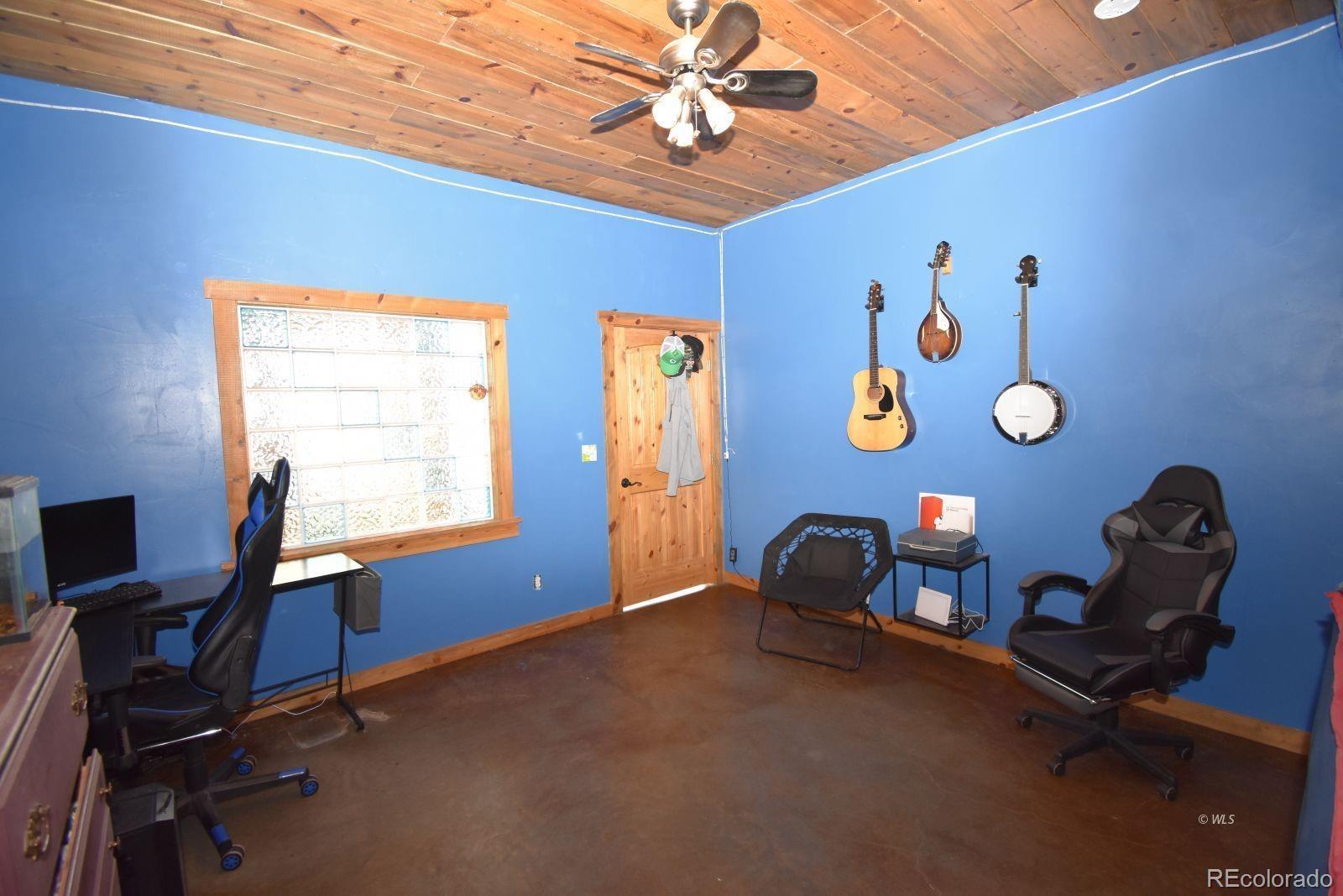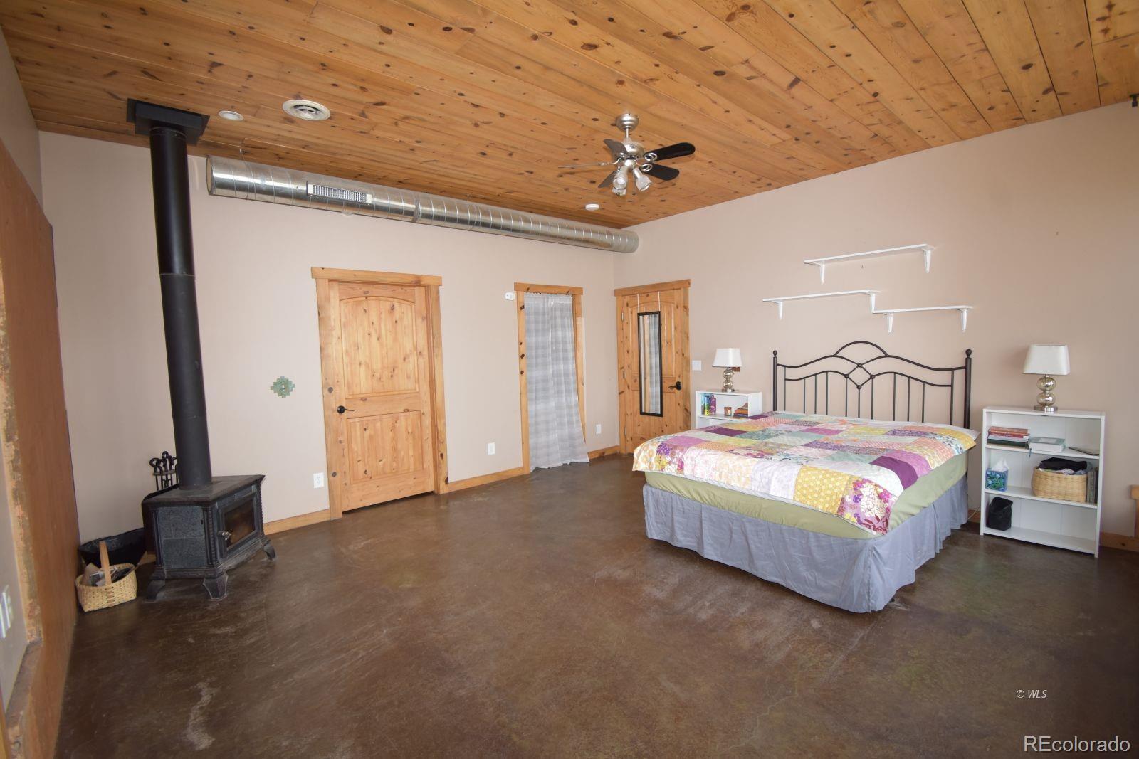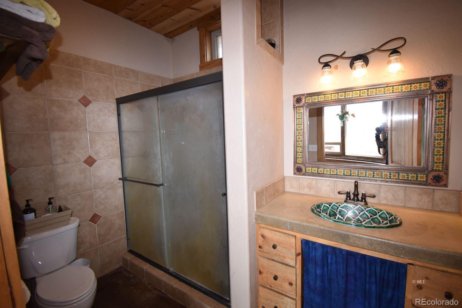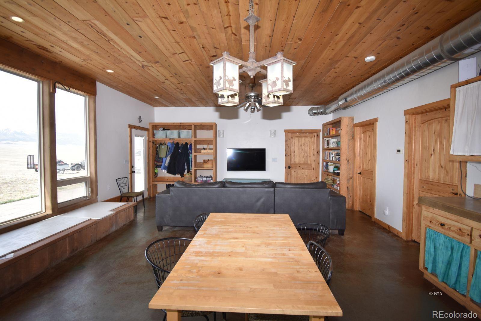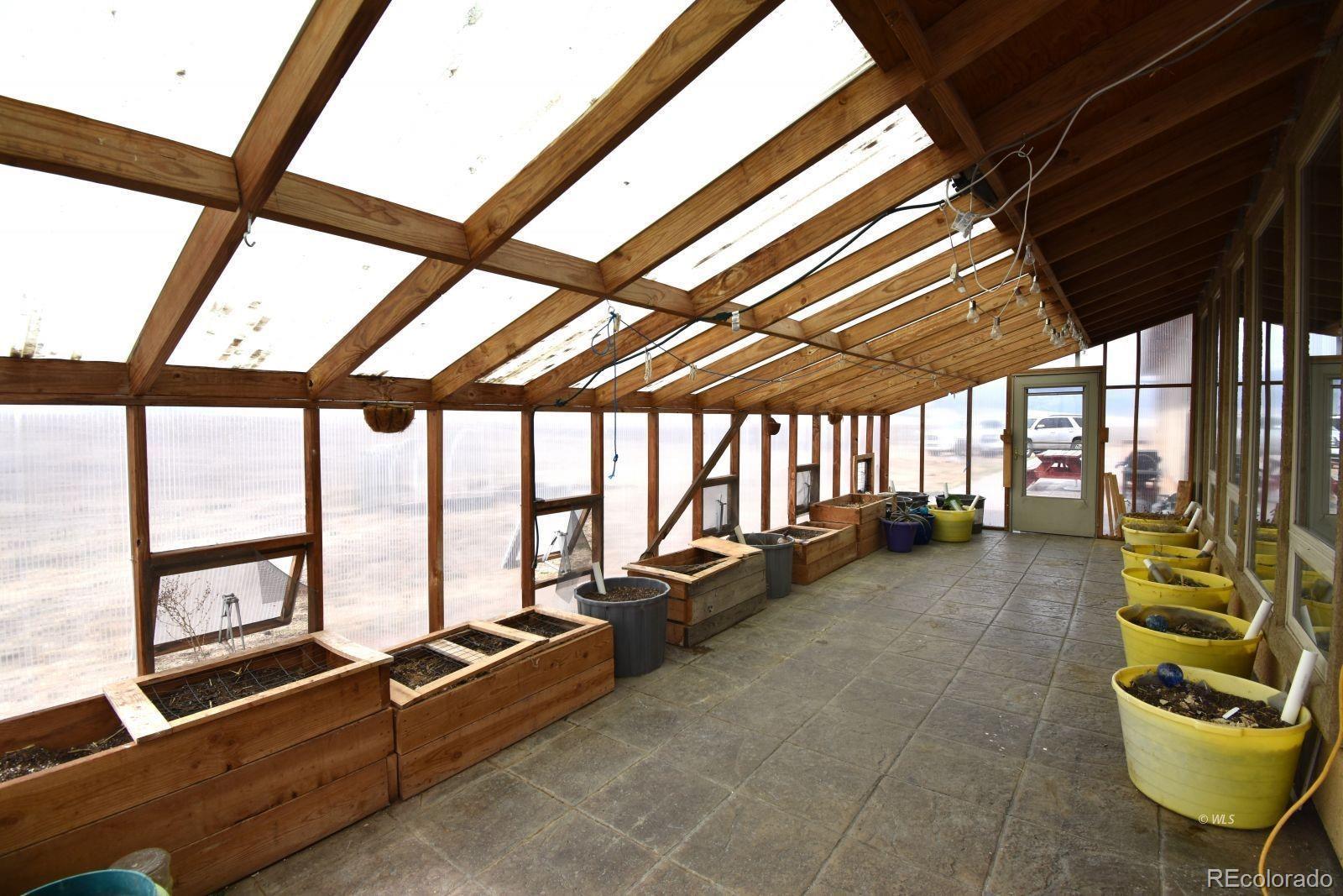 This welcoming one-story stucco home on 35 acres offers stunning, panoramic mountain views and the ultimate off-grid living experience. With 3 bedrooms, 3 baths, and 1,976 square feet, this Energy Star V2 certified home is designed for eco-friendly living. The home features bright windows for generous solar passive heat and forced air heat, an ample solar power system and automatic Generac backup generator. A highlight is the attached 500 sq ft greenhouse and built-in planters with a 2,400-gallon roof rainwater catchment system, gravity-fed to nourish your plants. The spacious greenhouse provides ample room for year-round growing. Additional out buildings include a studio/solar barn perfect for hobbies or a creative workspace, and a large garage/workshop with 14-foot ceilings, double 12x12 overhead doors, and rough-in plumbing for a future bathroom and kitchen. This property offers off-grid living at its best, with everything you need for sustainable homesteading. Located just 1.5 miles off the highway and 12 miles from the charming town of Westcliffe, it combines seclusion with easy access to amenities. Don't miss this rare opportunity!