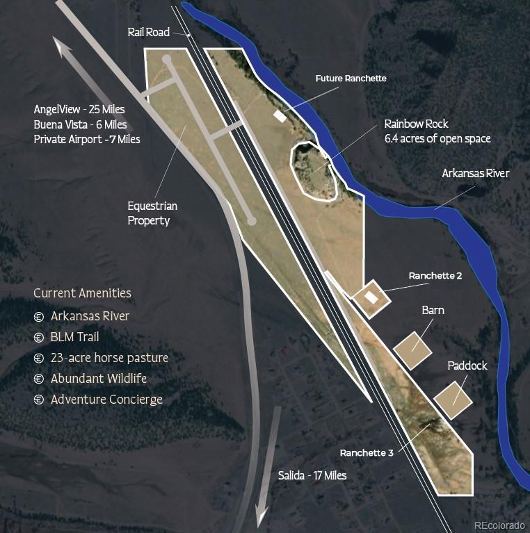 Ranchette 2- Founders opportunity at E Bar Ranch backing to the Arkansas river and Rainbow rock. Brand new Construction is breaking ground now and its your chance to get in on this incredible founders opportunity for a custom ranch home on the river! This is a true legacy niche river development coming just outside of Buena Vista, Colorado, a true outdoor paradise. Where the Arkansas River winds through breathtaking views and rugged beauty, E Bar Ranch invites you to escape to your own riverfront paradise. Fly-fish the world’s most sought-after waters, hike BLM trails, or explore by kayak—then end the day under star-filled skies as the river lulls you to sleep. With easy access either by car via Denver or arrive by your own plane with the private airstrip just two miles away—home to the longest runway in Colorado—and take in sweeping views of Mount Princeton and Browns Canyon. Whether you’re seeking adventure, serenity, or both, E Bar Ranch delivers a rare blend of luxury and wilderness. Claim your part of the Arkansas river now! Contact us for more information and to walk this amazing land.