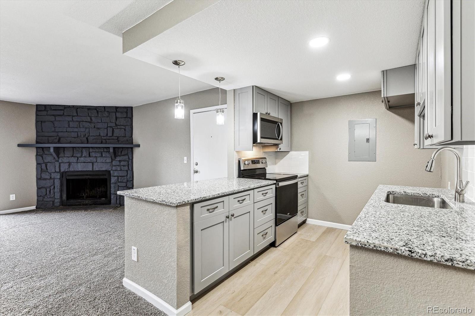 Beautifully remodeled and updated condo in the sought-after Robinwood neighborhood! Featuring designer interior colors, fresh paint, new carpet, and stylish laminate flooring throughout, this move-in ready home offers a modern kitchen with sleek gray shaker cabinets, granite countertops, a stainless undermount sink, tile backsplash, and stainless steel appliances. Both bathrooms are fully renovated with white shaker cabinetry and floor-to-ceiling wall tile in the shower/tub for a touch of luxury. Enjoy satin nickel fixtures and hardware, new trim and casing, elegant 6-panel doors, and a convenient washer/dryer closet. Relax on the spacious covered patio with a dedicated storage room and take advantage of two reserved parking spaces—almost everything is brand new, making this a must-see property.