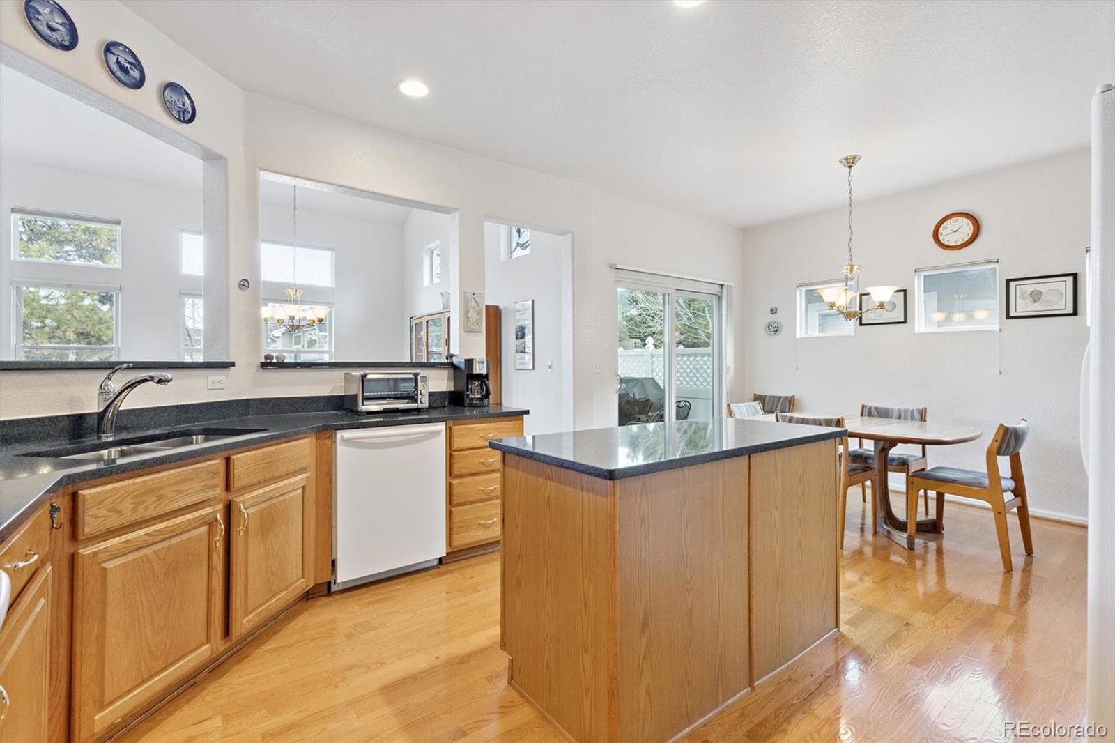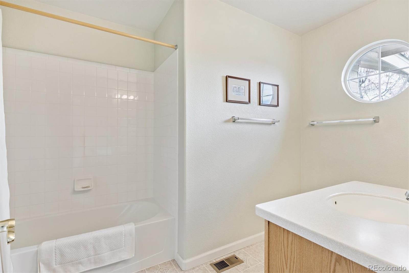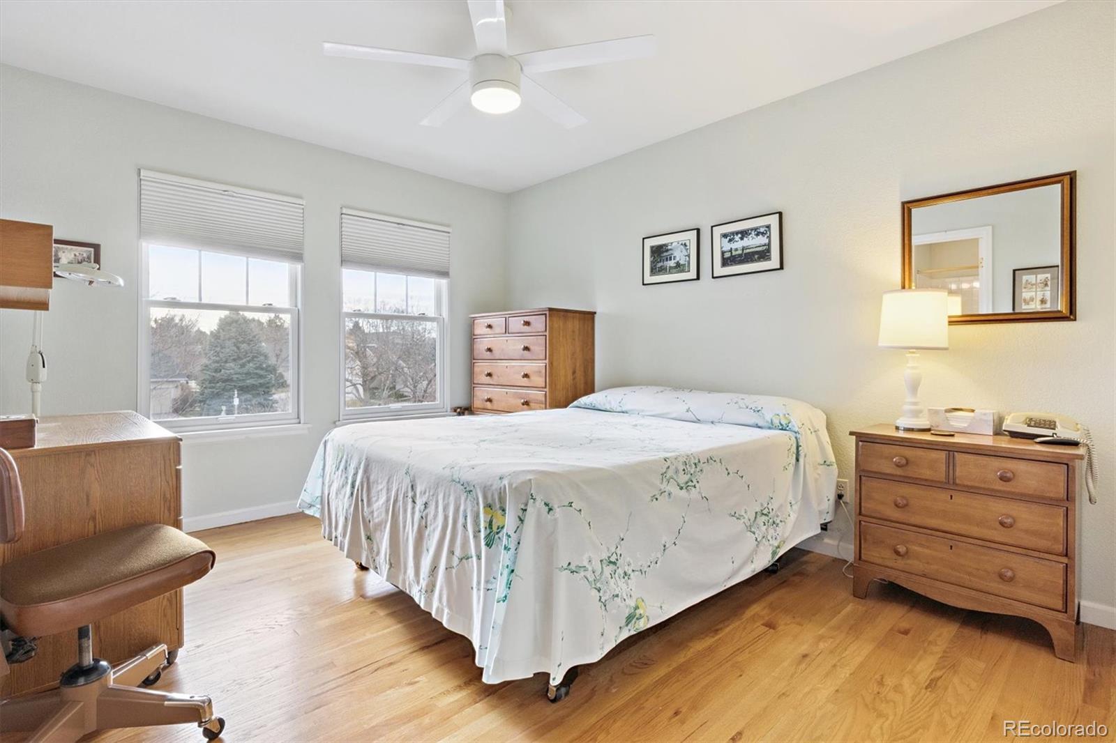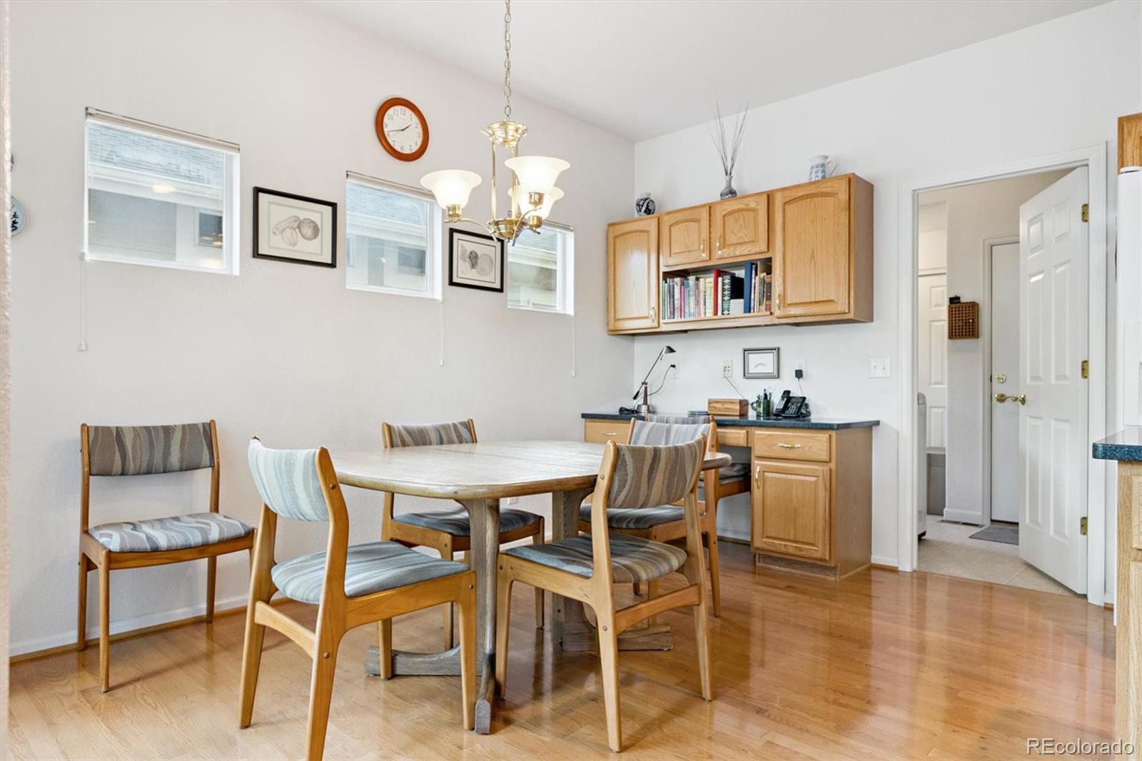 First time on the market since the original owners bought it back in 2000. Extremely well cared for and maintained over the years. Don't miss out on this wonderful two-story patio home in Danbury Park nestled on a prime lot backing to the greenbelt. Maintenance free living at its best! The HOA covers it all on the exterior - including snow removal to your front door. As you walk through the front door, you will be impressed with the beautiful hardwood floors, the openness and the flood of natural light. The main floor features a study/library, ½ bathroom, an open eat-in kitchen with a center island and a small desk/workstation. The kitchen features solid quartz counter tops, ample cabinets and an abundance of counter space. The kitchen seamlessly flows into the dining room and large living room which is highlighted with soaring vaulted ceilings, floor to ceiling windows to enjoy the greenbelt views and a gas fireplace to enjoy at your leisure. Off the backside of the kitchen is the mudroom/laundry room with a utility sink, closet and access to the oversized garage. The upstairs features the large primary bedroom with a private 5-piece bathroom, vaulted ceilings and a huge 8.3 x 7.2 walk-in closet. The secondary bedroom is a private ensuite with a spacious full bathroom - great for guest, roommates or family members. The finish basement lends itself to multiple uses - could be a private 3rd bedroom or second family room equipped with a 3/4-bathroom, closet and a storage room. Off the eat-in kitchen you can also access your private fenced in trex deck patio with a shade awning & access to the greenbelt. Newer top-quality windows throughout! The HOA in 2023 replaced the roofs and did exterior painting. The community offers a great clubhouse, beautiful pool and walking trails throughout. This is a great location and even better house. Centrally located and easy access to shopping, DIA & DTC. Security entrance off of Iliff for Danbury Park residence only.