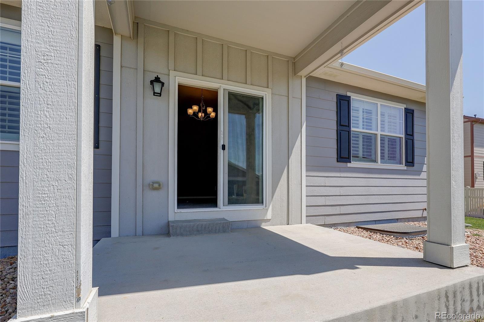 Situated in the desirable Saddleback community, this beautiful single-family home offers main-floor living, a 3-car attached garage, and exceptional curb appeal. A covered front porch and manicured landscaping create an inviting first impression, while the fenced backyard with a covered patio provides the perfect space for relaxing or entertaining. Upon entry, you’ll find two carpeted bedrooms, each with a ceiling fan, alongside a full bathroom. Continuing down the hallway, discover the third bedroom, the laundry room, and convenient interior access to the garage. The home’s main living area opens up to a bright and spacious kitchen, dining, and living room combination. The updated kitchen boasts stainless steel appliances, a whole house vacuum, an LG refrigerator with InstaView® window, granite countertops, a large walk-in pantry, pull-out cabinet drawers, and a generous kitchen island. The living area features sliding glass doors to the backyard and a cozy gas fireplace. The primary suite includes a ceiling fan and an ensuite bathroom with a dual-sink vanity, NEWLY UPDATED SHOWER, a private water closet, and two walk-in closets. Additional features include shutters throughout the home and an unfinished basement offering potential for future expansion and/or storage. This well-maintained home combines comfort & functionality. Just minutes from the golf course, neighborhood trails, and more, this property is ready to welcome you home.