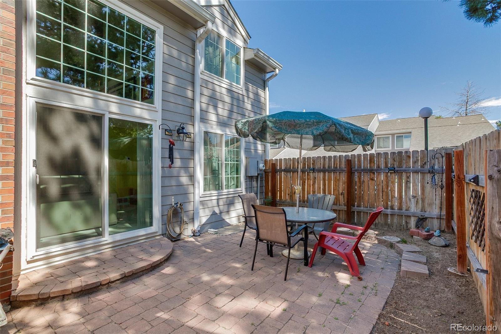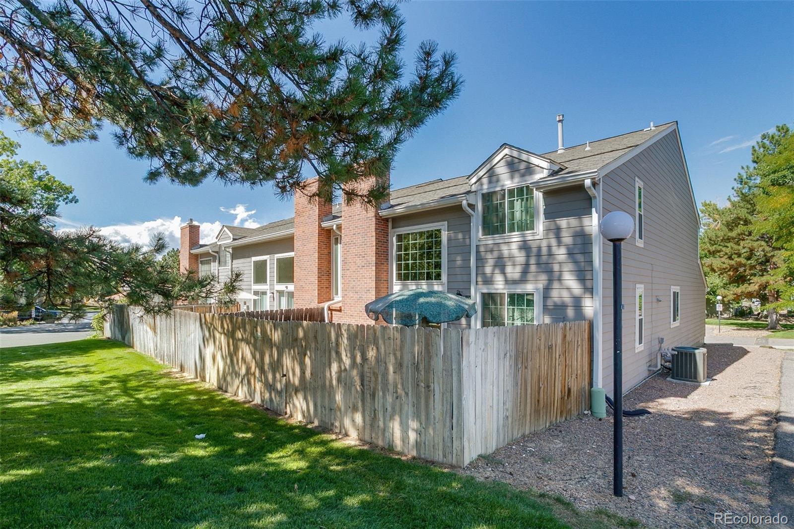 Welcome to this well-maintained townhome featuring vaulted ceilings and an open, inviting layout. The upper level offers 2 bedrooms plus a spacious loft, ideal for a home office or den. The main floor boasts a cozy living room with fireplace, a dining area, and a kitchen with eating space, complete with hardwood floors in the kitchen and entry. The partially finished basement provides a versatile family room or potential 3rd bedroom. Enjoy outdoor living in the fenced yard with patio, and take advantage of the 2-car attached finished garage. Recent upgrades include brand-new windows and a new HVAC system, offering comfort and peace of mind. Situated on a corner lot with easy access to I-225 and Parker Road, this home is just 10 minutes from DTC, Costco, and Park Meadows Shopping Mall, giving you unbeatable convenience.