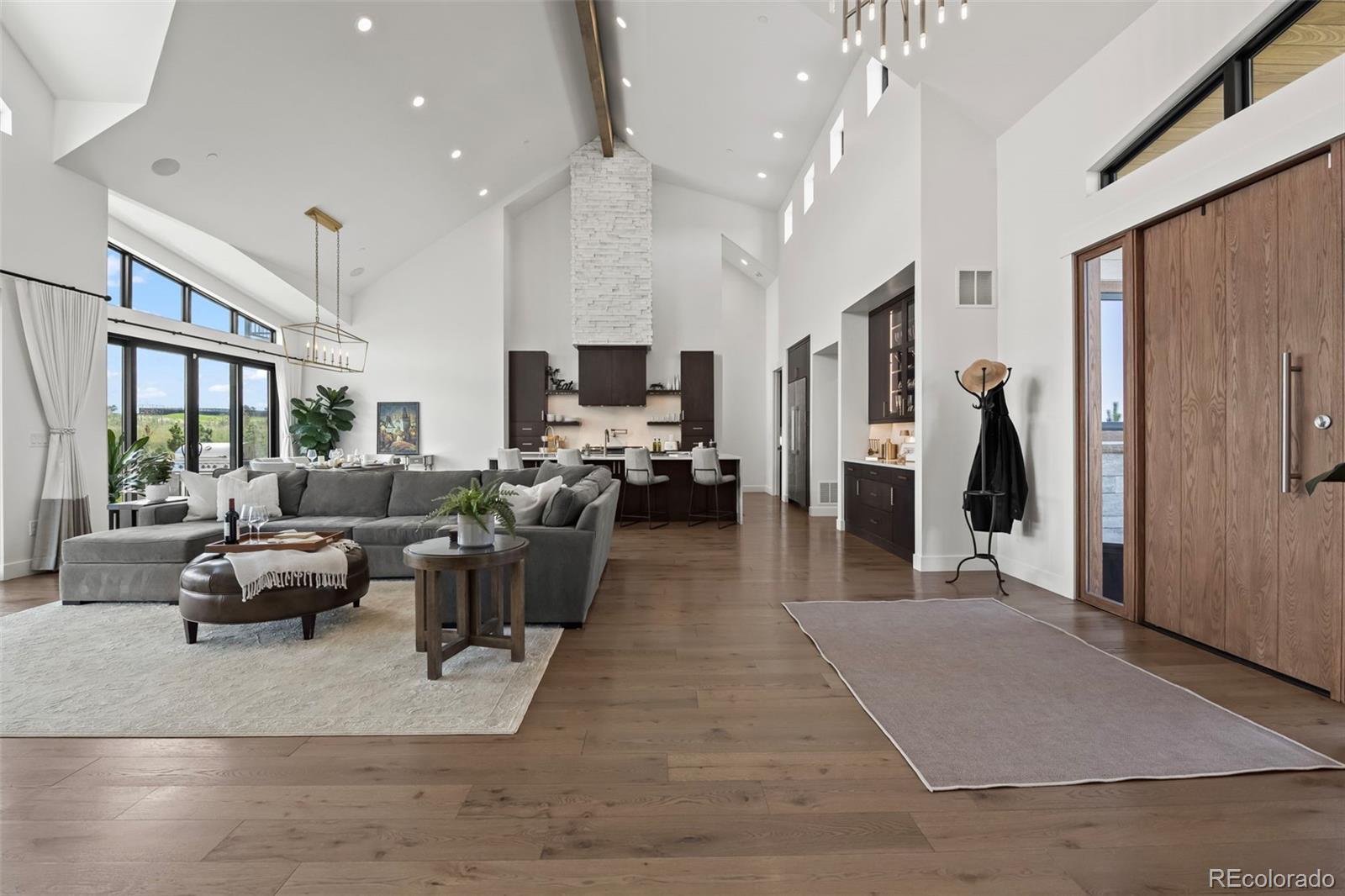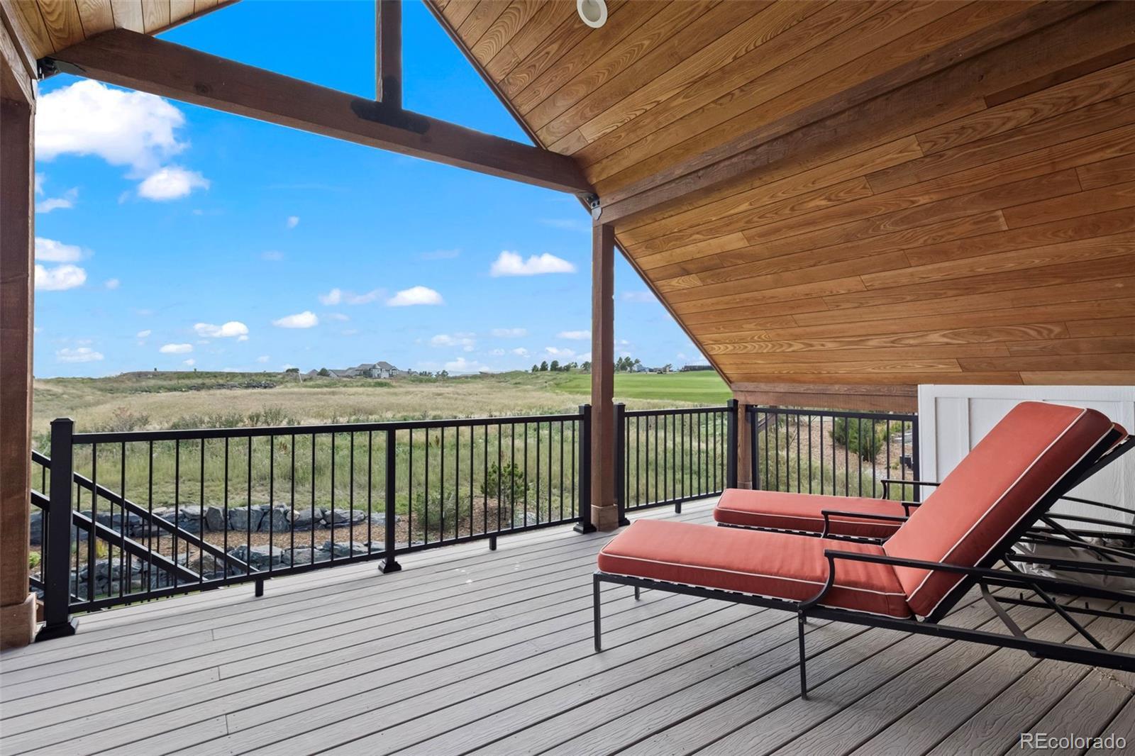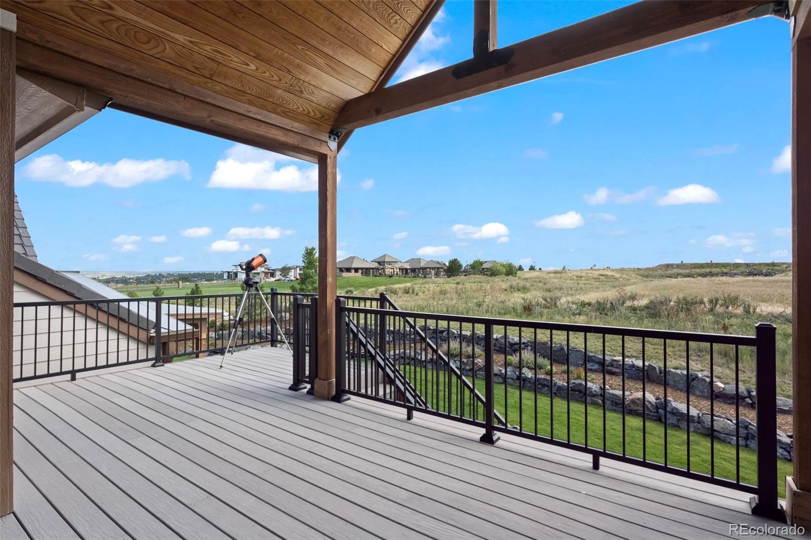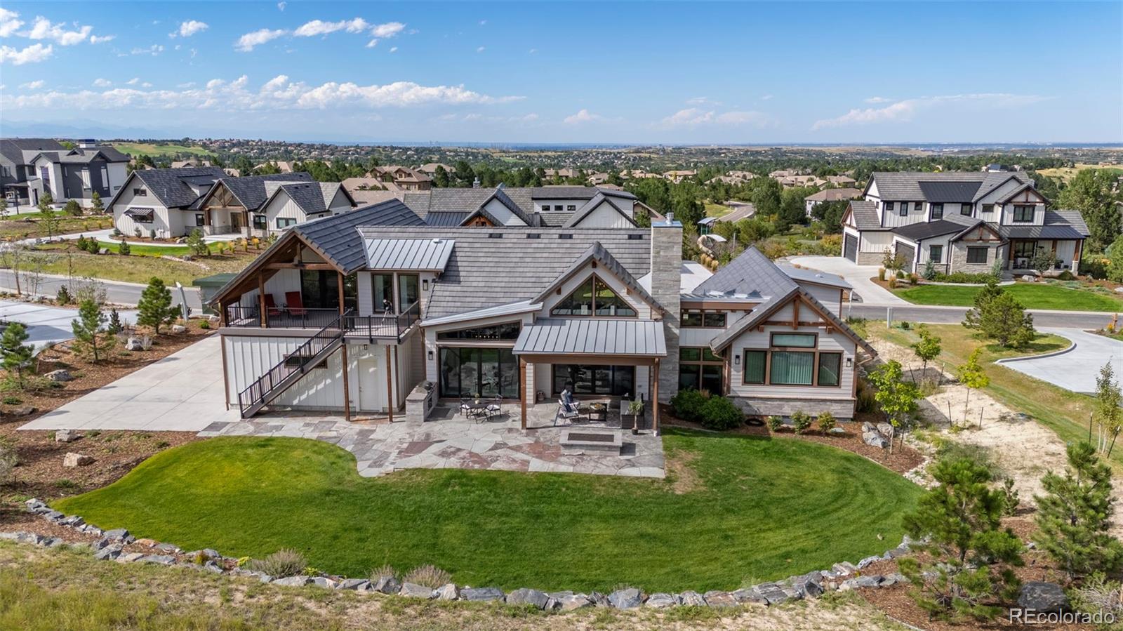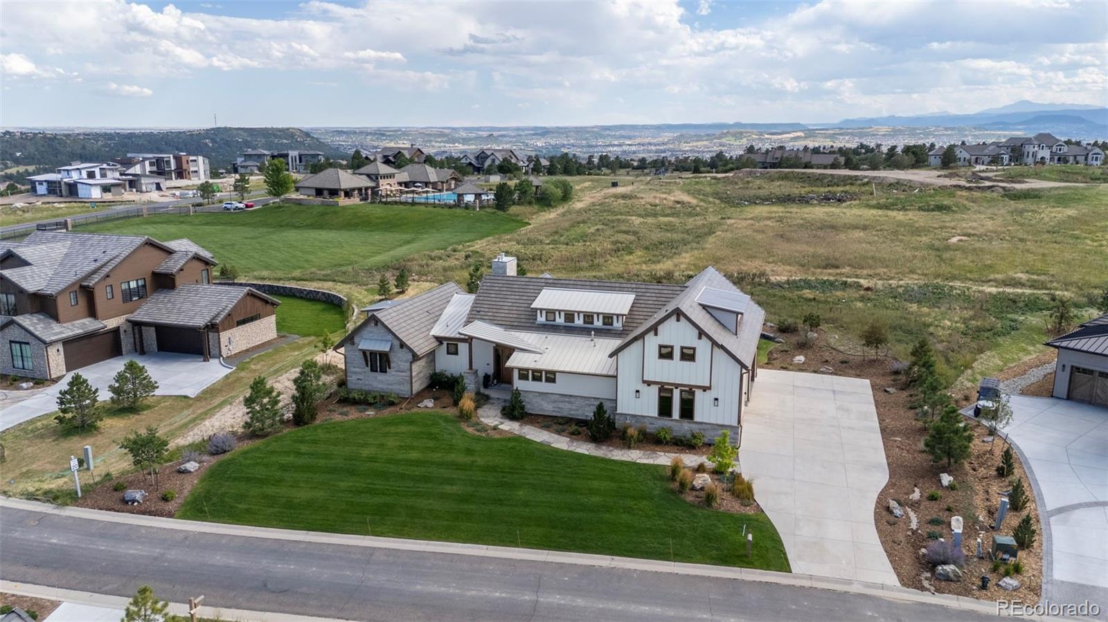 Step into a world of elegance and sophistication with this stunning 5,000 sq. ft. ranch-style residence, where modern design meets timeless luxury. Perfectly positioned on a quiet cul-de-sac in the exclusive Village at Castle Pines, this meticulously crafted home offers a unique lifestyle experience—complete with Front Range views and the peace of mind of a gated community. Featuring 4 bedrooms and 3.5 baths, this home provides flexible living spaces to fit your needs. Upon entry, soaring ceilings and abundant natural light create an immediate sense of grandeur. The main floor showcases a spacious great room that seamlessly connects a grand living area, chef-quality kitchen, and inviting dining space. A walk-in Butler’s pantry with a second refrigerator, sink, and ice machine makes entertaining effortless. The primary suite, conveniently located on the main level, boasts a luxurious 5-piece spa bath and an expansive custom walk-in closet. Upstairs, you’ll find a secondary bedroom with its own en suite bath, large walk-in closet, and private balcony with breathtaking views. The lower level offers two additional bedrooms with a shared bath, a generous living area with full wet bar and beverage refrigerator, and a fitness room—plus potential for a theater or flex space. Step outside to your serene patio, featuring a built-in gas grill and large fire pit overlooking mature landscaping and open space—perfect for gatherings or quiet evenings. The HOA pool is just a short stroll away for easy relaxation. An oversized 3-car garage with an activity storage closet completes the home. Blending luxury, lifestyle, and security, this home offers the best of Castle Pines living—a welcoming community for families, retirees, and travelers alike.