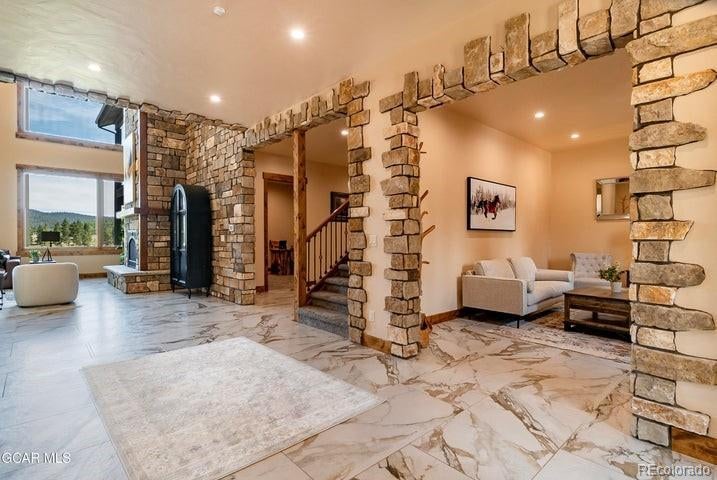 Perched high in the serene beauty of the mountains, this breathtaking 12,000-square-foot estate defines luxury living on a grand scale. Designed with meticulous craftsmanship, the home seamlessly blends rustic mountain charm with refined sophistication. Expansive stonework is showcased throughout the property — from dramatic stone walls and fireplaces to panoramic stone-filled vistas that surround the home — offering a timeless connection to the rugged landscape. Inside, soaring ceilings, exposed timber beams, and oversized windows flood the space with natural light and frame awe-inspiring views in every direction. High-end finishes, custom millwork, and premium materials create an atmosphere of unmatched quality and elegance. This estate features not one, but three distinct kitchen and entertaining areas ideal for hosting intimate gatherings or large celebrations. The main gourmet chef's kitchen anchors the heart of the home with top-of-the-line appliances, custom cabinetry, and a grand island for casual dining. A secondary catering kitchen provides additional prep space for events, while a third open-concept entertaining kitchen in the lower-level lounge is perfect for game nights, wine tastings, or relaxed evenings with guests. For the ultimate movie-night experience, the estate boasts a a home theater add tiered leather seating, professional-grade projection and you will have the coolest place in town. Additional amenities include multiple living areas, a spa-like master suite, private guest quarters, and expansive terraces that capture the stunning mountain views. Whether relaxing by one of the fireplaces or entertaining on a grand scale, this home is a true mountain sanctuary, private, peaceful, and built to impress.
