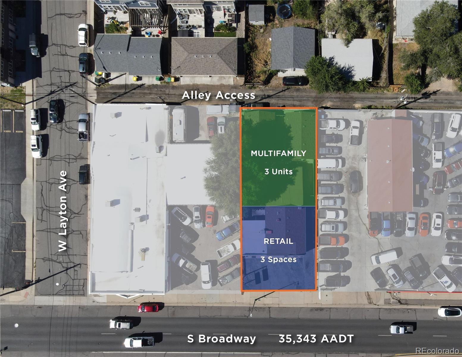 Solid investment opportunity in Englewood! Unique mixed-use property with three retail units facing Broadway and three residential units in the back. Fantastic location close to the shops, restaurants, hospitals and Light Rail! Minutes to SoBo! Fully occupied property with strong rental history and low maintenance costs! The property consists of four buildings: the commercial building with three smaller retail units, the attached 2bed/1bath apartment unit and two detached houses with 1bed/1bath each. The current ownership had done a lot of work on the property over the years. The updates include new roofs in 2018 for the entire property, newer flooring in most units, partial exterior and interior paint. One of the retail units has recently been completely remodeled. The attached residential unit has newer furnace and water heater as well as new trench drain and sump pump. Each residential unit has in-unit laundry (washer & dryer owned by the Seller and included in sale). All but one unit have window air conditioners. 5 off street parking spaces in the front parking lot and 2 (possibly 3) parking spaces in the alley. Additionally, there is free street parking on Broadway. The rents are slightly below market. Please call the listing agent with any questions.