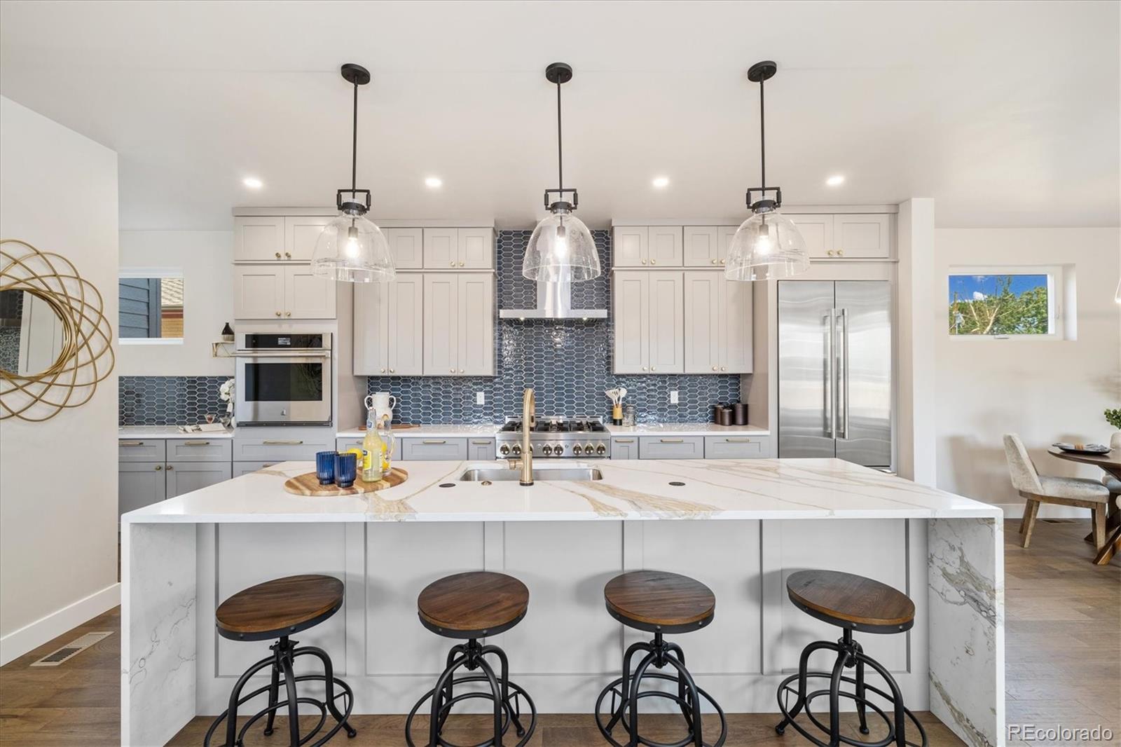 Modern luxury meets Denver’s most vibrant outdoor lifestyle in this newly constructed three-story residence, ideally positioned directly across from Hallack Park and just steps from Sloan’s Lake. Designed for elevated urban living, this contemporary home offers over 4,100 square feet of thoughtfully curated space, featuring four spacious bedrooms—each with a private ensuite bath and custom walk-in closet—providing exceptional privacy and flexibility for everyday living, guests, or work-from-home needs. At the heart of the home, the gourmet chef’s kitchen showcases sleek quartz countertops, premium appliances, a generous island, and a welcoming breakfast nook, seamlessly flowing into open-concept living and dining areas ideal for entertaining. Soaring ceilings and expansive windows flood the home with natural light, creating a refined yet comfortable atmosphere throughout. The primary suite serves as a true retreat, complete with a private fireplace, spa-inspired five-piece bath, dual custom closets, and serene park views. A third-level bonus space offers a versatile great room with an additional bedroom and bath—perfect for a media lounge, creative studio, or guest suite. Step outside to the rooftop deck, where mountain sunsets and city lights set the stage for unforgettable evenings. A large private yard, three-car oversized garage with EV charging, and U-TU-C zoning with ADU potential add both immediate comfort and long-term flexibility. Located in one of Denver’s most sought-after neighborhoods, this home delivers the rare combination of new construction, walkability, park frontage, and proximity to Sloan’s Lake, dining, and entertainment—offering a lifestyle as exceptional as the residence itself.