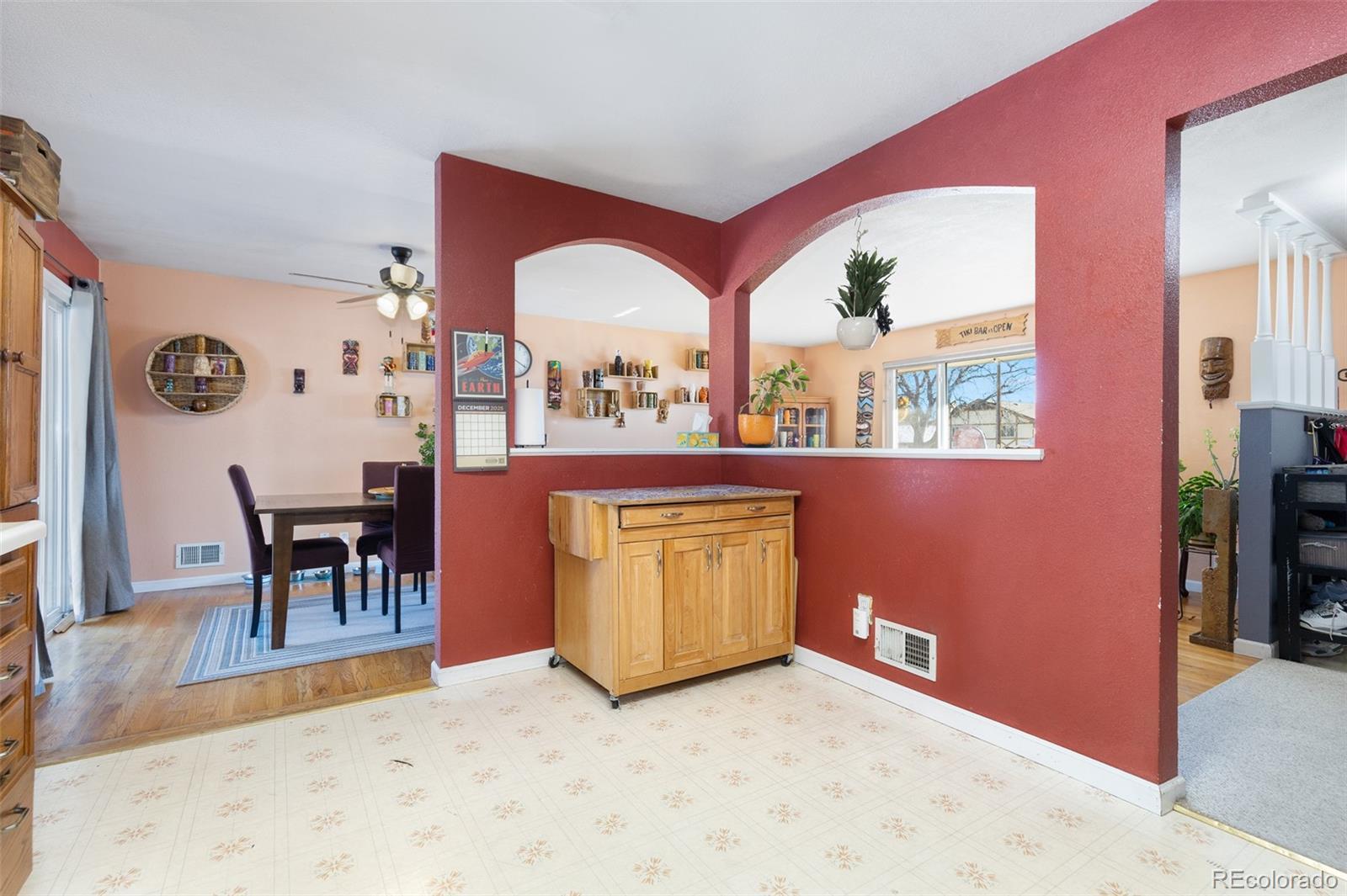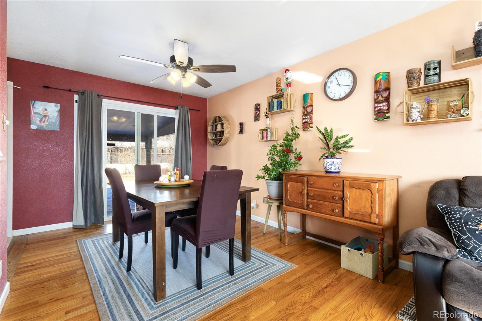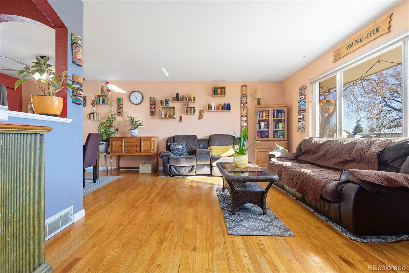 Welcome to this well-maintained 4-bedroom, 2-bath home on a spacious 10,000+ sq ft lot in a quiet Northglenn neighborhood. Recent improvements include a leased solar system (2023), new water heater (2025), roof (2019), and a newer furnace and A/C. Natural light and hardwood floors run throughout the main and upper levels, with hardwood hidden beneath the upstairs bedroom carpet. The open layout connects the living room, kitchen, and dining area, opening to a large covered patio ideal for year-round outdoor living. The upper level features three generous bedrooms with ample closets and a full bath. The lower level offers flexible living space with a fourth bedroom, 3/4 bath, and a family room with a cozy fireplace. Additional features include a laundry room with washer, dryer, utility sink, shelving, and abundant storage in the crawl space. The attached two-car garage leads to a fully fenced backyard with a storage shed. No HOA. Conveniently located west of I-25 in Northglenn, with easy access to Denver, Boulder, parks, shops, and dining.