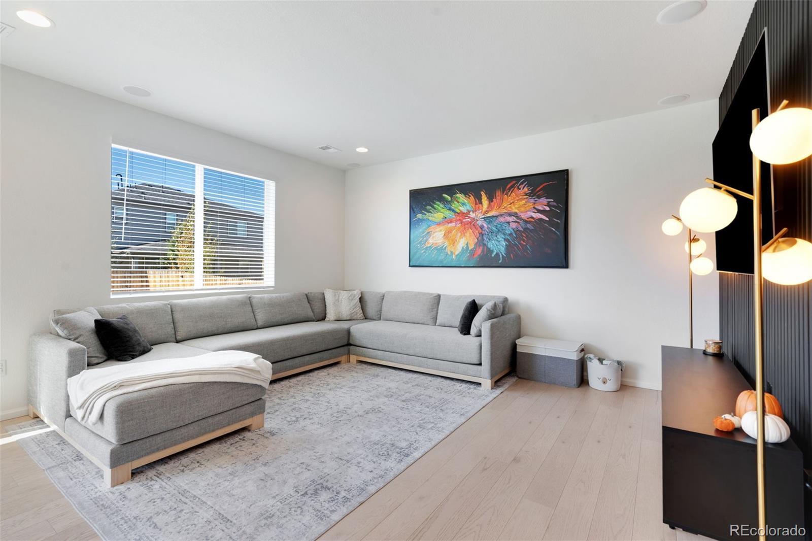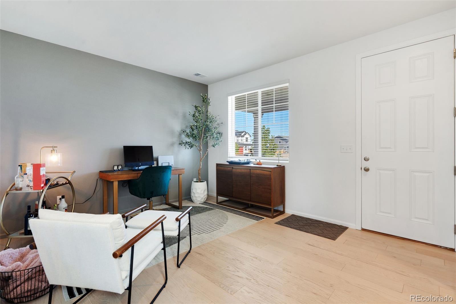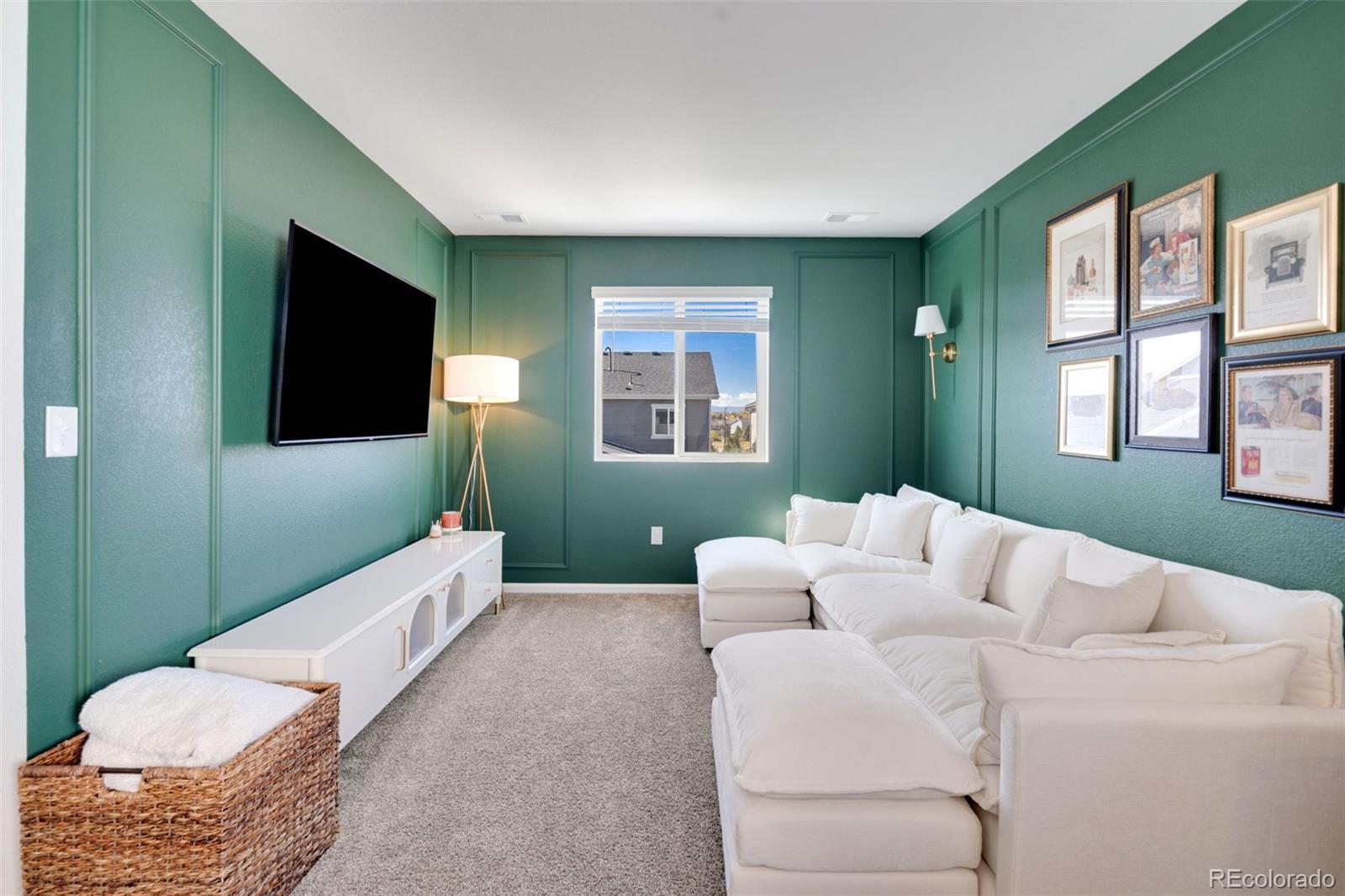 Welcome home to this 3 bedroom 2.5 bathroom home located in Founders Village in East Castle Rock! As you enter the home, you are greeted by a cozy bonus room with ton of natural light, and engineered wood floors throughout the main level. This home offers you open concept living, with generous space for the living and dining. The kitchen offers luxury living with a large island, stainless steel appliances and range hood, updated backsplash, quartz countertops, and a large pantry! As you make your way upstairs, you will enjoy a large loft, great for an office or an additional hang out space. Upstairs contains the laundry room, two spacious bedrooms, each containing walk in closets, guest bathroom and the primary bedroom with on-suite bath that contains a double vanity, quartz countertops, and updated flooring. Through the primary bathroom, you will enjoy a spacious walk in closet as well! Outside, you will find a custom designed backyard with curved patio, retaining wall, white landscaping rock, and landscaping turf for low maintenance upkeep! This home is perfectly located, is it just feet away from the neighborhood park and walking distance to Mitchell Gulch Park, Mesa Middle School and Flagstone Elementary School. You will be just minutes away from all the festivities and restaurants in Downtown Castle Rock, and are in close proximity to the Castle Rock Outlets as well. Don’t miss out on this home!