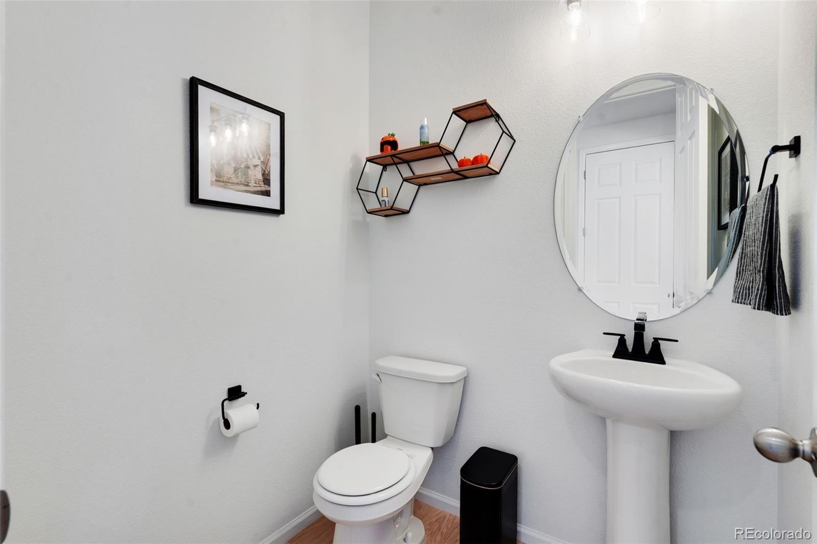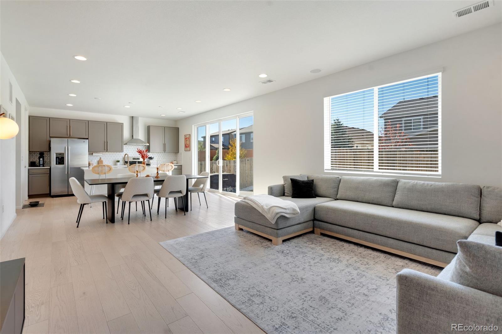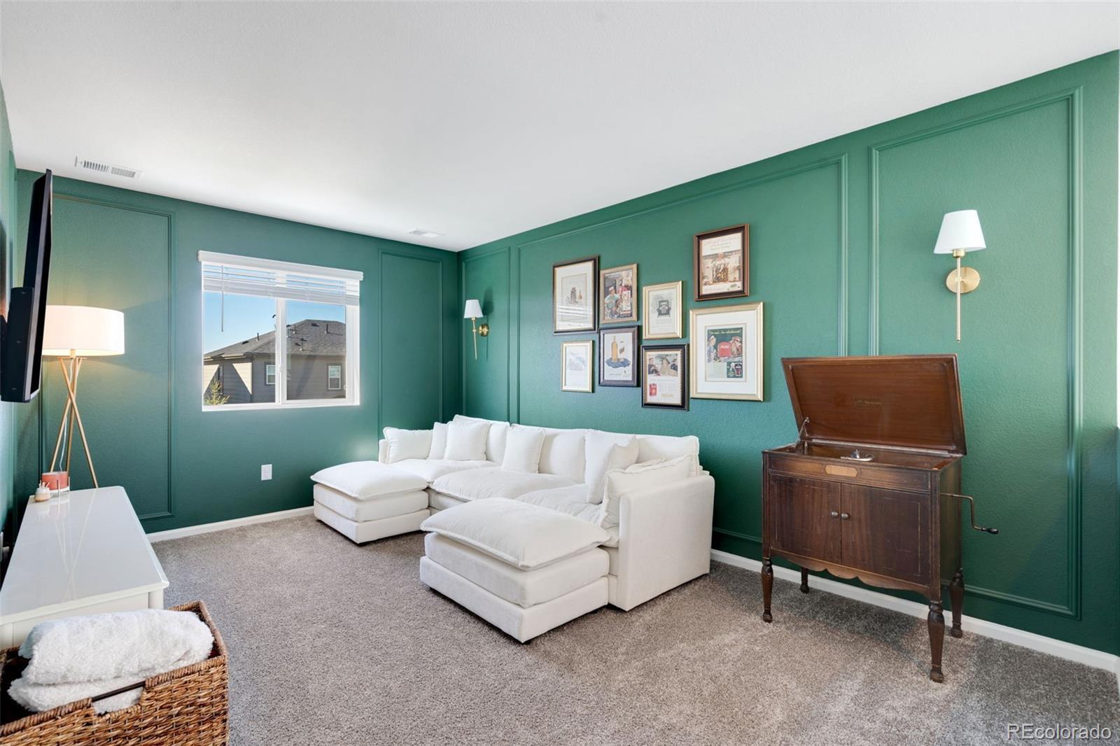 Welcome home to this 3 bedroom 2.5 bathroom home located in Founders Village in East Castle Rock! As you enter the home, you are greeted by a cozy bonus room with ton of natural light, and engineered wood floors throughout the main level. This home offers you open concept living, with generous space for the living and dining. The kitchen offers luxury living with a large island, stainless steel appliances and range hood, updated backsplash, quartz countertops, and a large pantry! As you make your way upstairs, you will enjoy a large loft, great for an office or an additional hang out space. Upstairs contains the laundry room, two spacious bedrooms, each containing walk in closets, guest bathroom and the primary bedroom with on-suite bath that contains a double vanity, quartz countertops, and updated flooring. Through the primary bathroom, you will enjoy a spacious walk in closet as well! Outside, you will find a custom designed backyard with curved patio, retaining wall, white landscaping rock, and landscaping turf for low maintenance upkeep! This home is perfectly located, is it just feet away from the neighborhood park and walking distance to Mitchell Gulch Park, Mesa Middle School and Flagstone Elementary School. You will be just minutes away from all the festivities and restaurants in Downtown Castle Rock, and are in close proximity to the Castle Rock Outlets as well. Don’t miss out on this home!