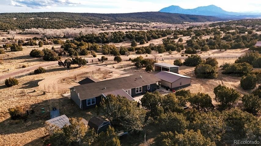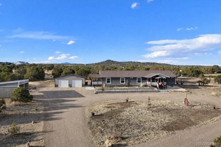 Welcome to 261 Orland Way in Walsenburg, Colorado, located in the beautiful gated community of Black Diamond. Conveniently located next to the Walsenburg Golf Course and Lathrop State Park. This newly built 2,280 sq ft home features 3 bedrooms and 2 baths, sitting on 2.96 fully fenced, breathtaking acres with stunning panoramic views featuring the Spanish Peak. Enjoy the views and serenity from the covered deck or the covered patio, which features a built-in outdoor kitchen. Bright, open living spaces are filled with natural light and mountain scenery. A detached garage, lean-to, and carport provide excellent storage for vehicles, tools, or recreational gear. Enjoy peaceful, private living just minutes from town, near the Spanish Peaks Regional Health Center, and just a short drive to the quaint town of La Veta. Experience luxury and seclusion while being close to amenities, acreage to roam, and unforgettable Colorado views in one exceptional property