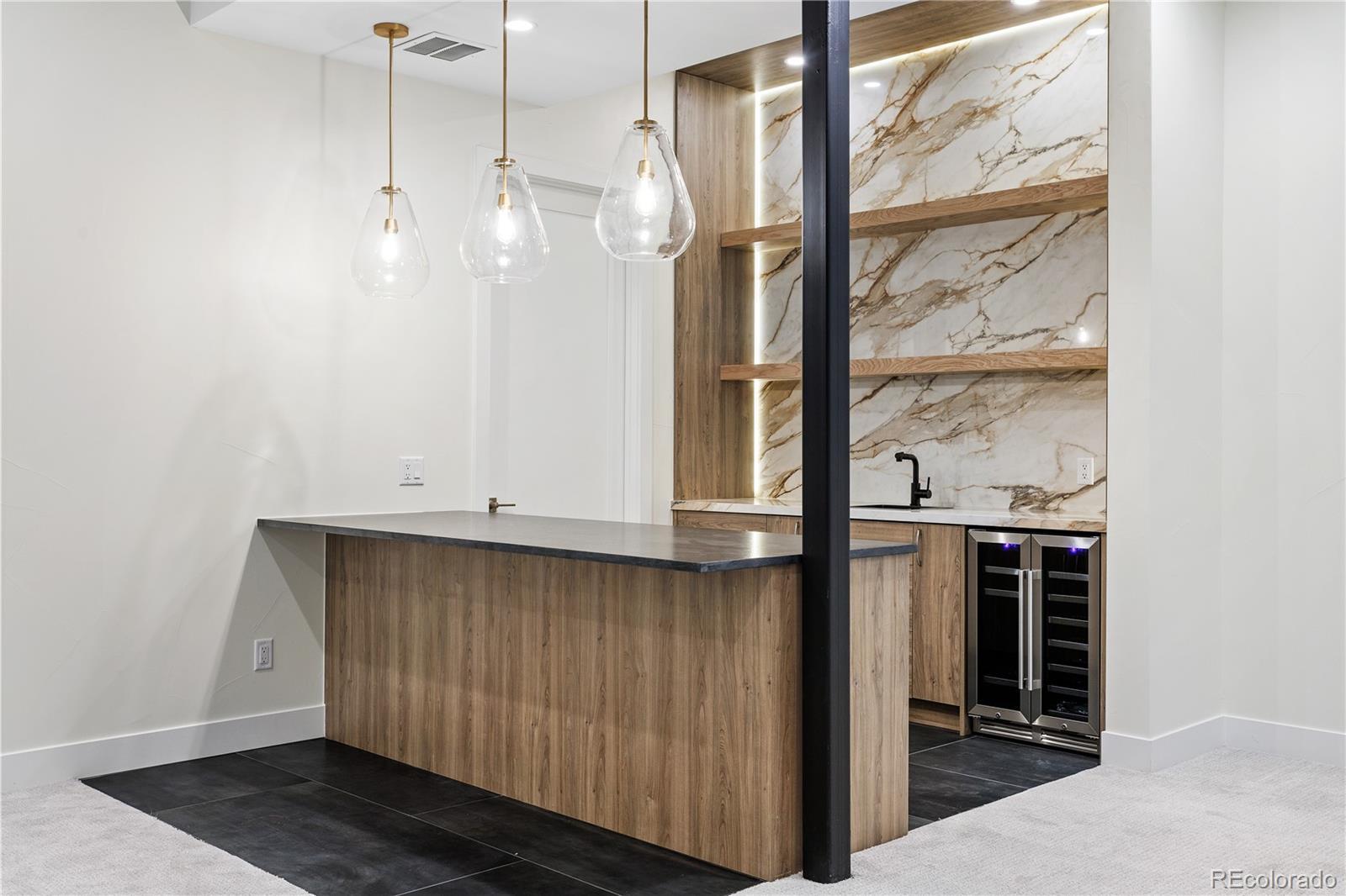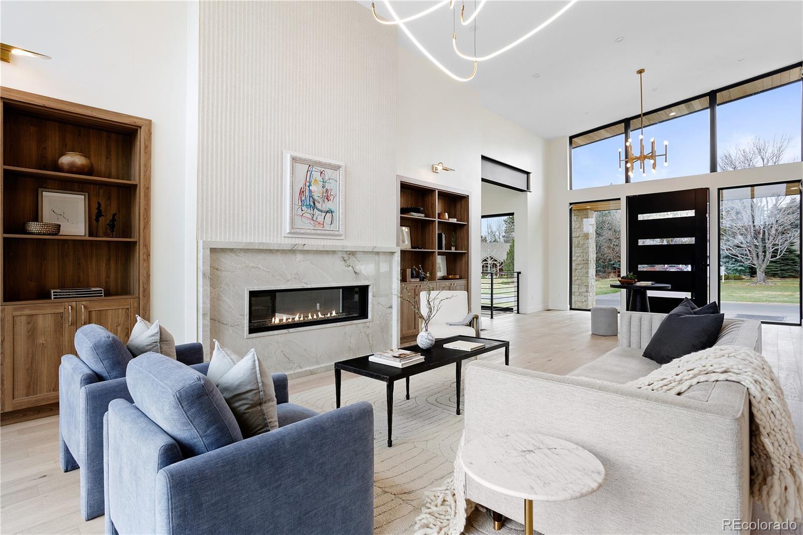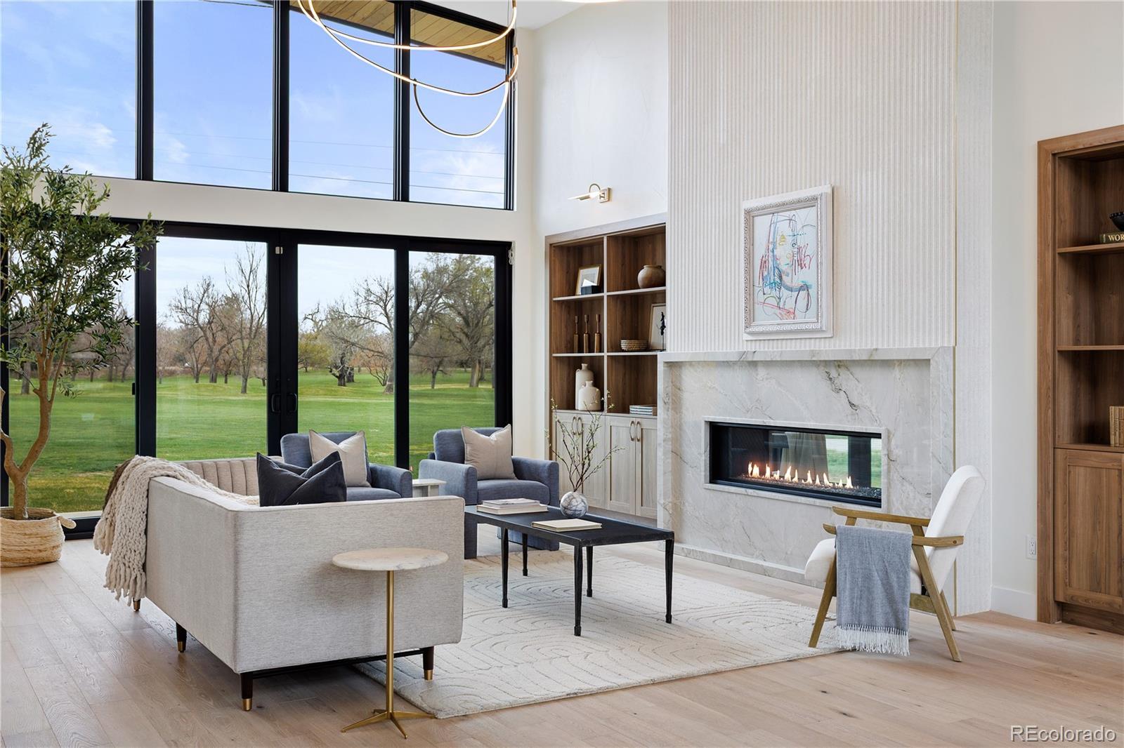 Experience unparalleled living in Cherry Hills Heights, as the sole new build on Wellshire Golf Course (one of Denvers few prized golf courses). This 4 bd, 6 bath transitional modern estate epitomizes luxury design, with expansive views of lush greens and mature trees from every room. Showcasing a sleek exterior with nickel gap siding contrasted by bold natural stone elements. Pivot-style metal front door opens to a dramatic open-concept living space. Inside soaring ceilings and floor-to-ceiling top-line Anderson Architectural wood windows flood the white oak hardwood floors with natural light. The living room features a double-sided fireplace with Keystone countertop face and floor-to-ceiling Porcelanosa tile, separating an office lined with custom bookshelves. Chef’s kitchen boasts an 11-ft waterfall island, top-tier Wolff/Sub-Zero appliances, walk-in-pantry, and custom American-made floor-to-ceiling cabinetry. The primary suite overlooks the 5th hole and includes a sitting room with gas fireplace, two walk-out patios, and a walk-in closet with custom cabinetry. The 5-piece primary bathroom features handmade Moroccan tile in the shower and spa-like tile and slabs throughout the bathroom.Custom metal staircase—set above a functioning garden—to a perfect entertainment space with porcelain backsplash wet bar. Basement includes two bedrooms, a gym, 3 baths, space for a movie theater, and space for a reach-in wine room. Builder has designs for finishing spaces. The backyard is perfect for gatherings, low maintenance, and flows seamlessly into the golf course. Two-car garage includes heater, EV charger, dog wash, and golf cart space with direct course access. Located in the prestigious Cherry Hills district and surrounded by Denver’s #1-ranked Wellshire neighborhood (5280 Magazine), with top-rated A+ Slavens K-8 school. HOA. No golf membershiprequired. PBG provides industry leading 2-year builder’s warranty and an 8-year structural warranty for added peace of mind.