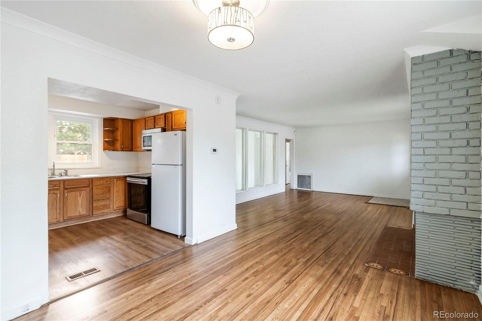 Charming 1947 Brick Ranch in East Colfax - Welcome to this inviting single-story brick home in the vibrant East Colfax neighborhood. Built in 1947, this well-maintained residence features three bedrooms and one updated bathroom, with refinished hardwood floors that bring warmth and character throughout. The kitchen has been thoughtfully updated, and the home includes a convenient main floor laundry room for added ease. Situated on a generous 8,150 square foot lot, the property offers ample off-street parking in both the front and back. The exterior has just been freshly painted, enhancing its curb appeal. Ideally located near public transportation, Central Park neighborhood, Fred Thomas Park, William H. Nichols Park, Greenway Off-Leash Dog Park, and a wide range of restaurants and retail options, this home offers comfort, convenience, and charm.