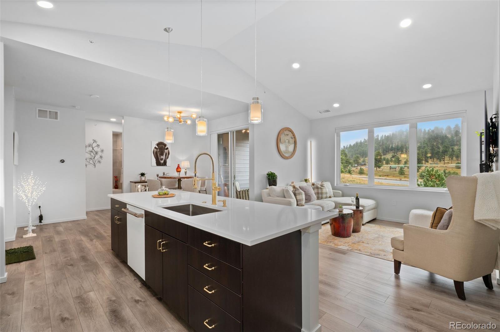 Feel like you're living on top of the world in this top floor, private end unit and enjoy single level living with new luxury upgrades AND ATTACHED OVERSIZED, HEATED GARAGE. Worry free lock and leave living with unbeatable PRIME LOCATION and convenience. UNOBSTRUCTED VIEWS, vaulted ceilings, recent luxury upgrades - flooring, appliances, instant hot water heater, window treatments, lighting, fixtures. Walk to shops, restaurants, entertainment and trails. Take the underpass to access the park across the street with picnic tables, views, trails. Walk to Filius Park, Bergen Park, Elk Meadow and more. Just 1 mile to I-70 or take Soda Creek and get way ahead of traffic. 45 minutes to ski resorts and major mountain towns to the west, 45 minutes to DIA to the east. INVESTORS -OUTSTANDING RENTAL POTENTIAL!