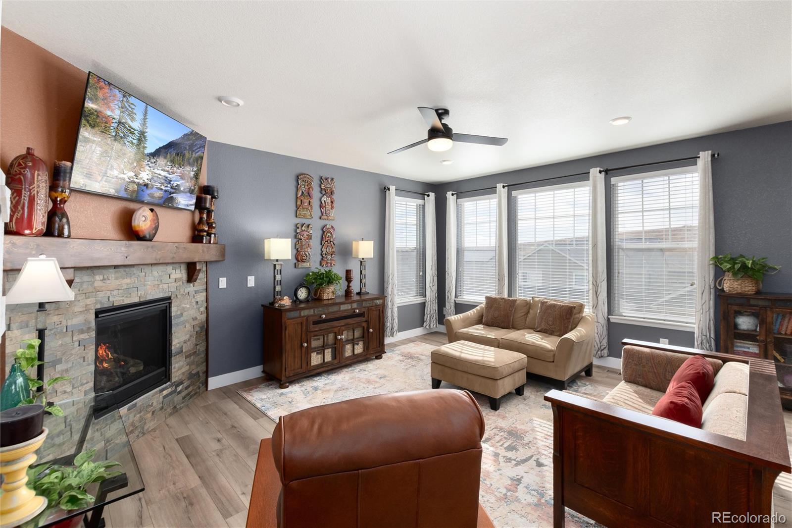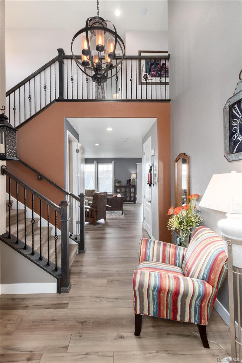 Beautiful move-in ready home in the desirable Leyden Rock community, a block from West Ridge Park, offers a well-designed open floor plan, soaring ceilings, many upgrades, and finished walk-out basement. Special features include new wide-plank flooring throughout the main level, a home office with French doors and fireplace just off the foyer, Chef’s kitchen with 42” espresso cabinets, walk-in pantry, stainless appliances, granite counter tops and large island. The open floor plan is perfect for comfortable living and entertaining, flowing from the living room to the dining area, kitchen, and covered deck. The deck offers views of the foothills & downtown Denver, includes sunshades, ceiling fans, and plenty of room to BBQ and relax. A large mud room with built-in benches & storage is located off the kitchen and 2 car garage (with EV charger). Upstairs is a spacious Primary Suite featuring a beautiful wood planked cove, matching barn door leading to the 5-piece primary bath and huge walk-in closet. Two additional bedrooms share a Jack & Jill Bath, and the Laundry Room is located nearby. The finished walk-out basement is the perfect retreat featuring a large family room with fireplace and a very cool custom Pub/Wet Bar with keg fridge and tap, glass washer and beverage cooler. The 4th bedroom is filled with light and the ¾ bath is stunning. A “Secret Bonus Room” is hidden behind the moving bookcase and can be whatever you want it to be, a TV room? Wine cellar? The family room opens to a covered patio with sunshades and deck with firepit to enjoy backyard fun. For recreation, Leyden Rock offers parks, trails, and the Leyden Rock Community Center with a pool and tons of activities for the kids, including a 4th of July Parade. P.S. There is a short-cut path by the mailboxes across the street to West Ridge Park. Lastly, this special area of Leyden Rock feeds into the acclaimed Three Creeks K-8 School. Don’t miss this special opportunity to live the Leyden Rock Life!